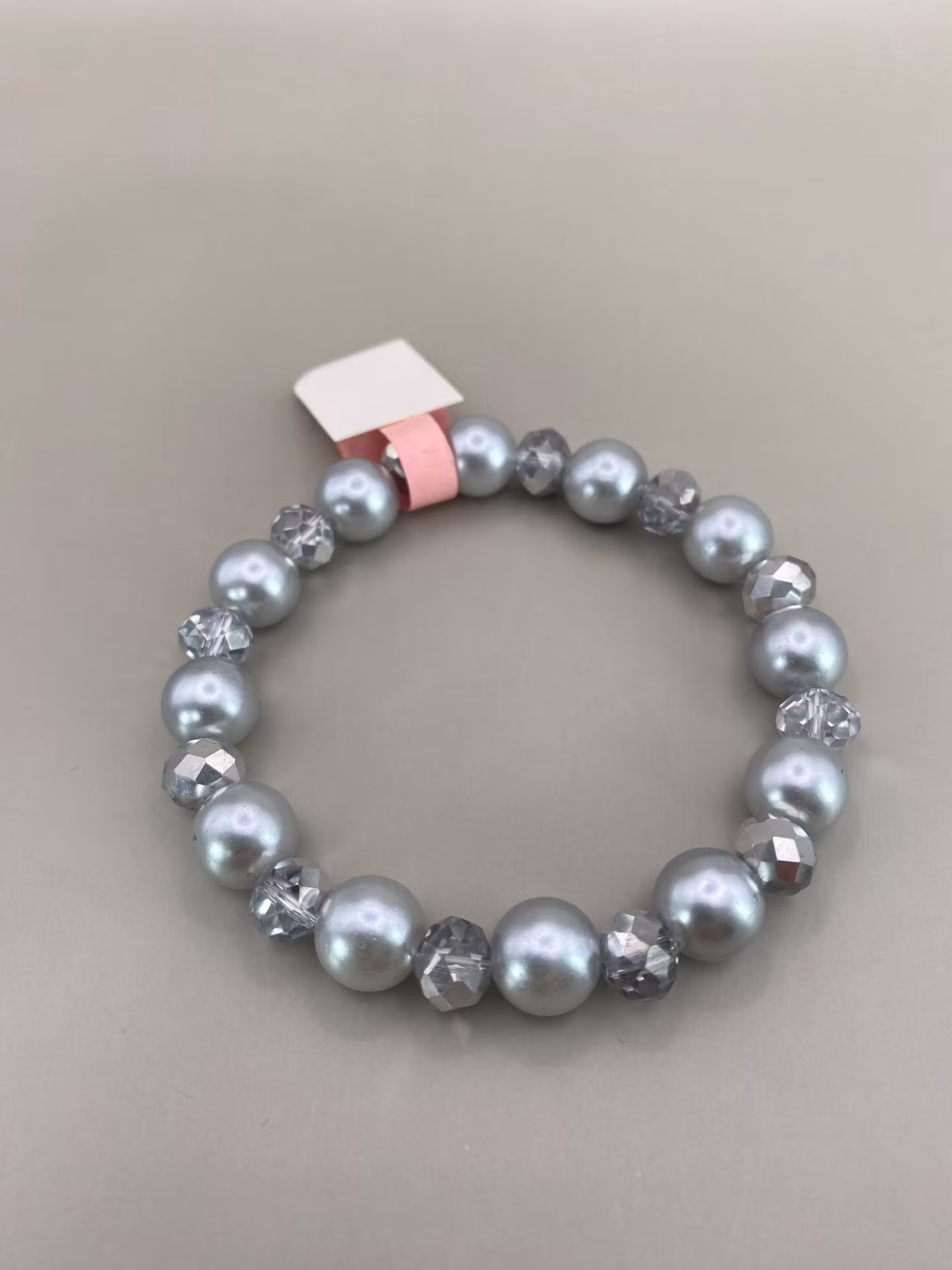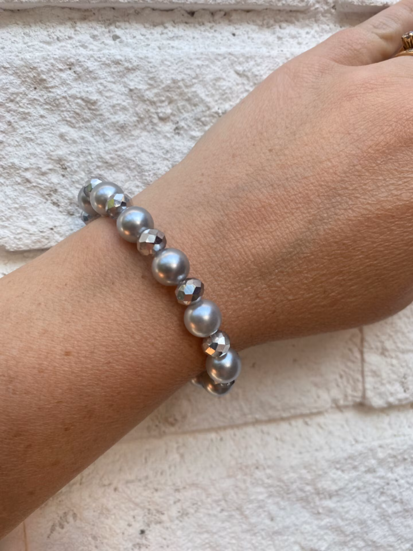 Armband i stora silvergrå pärlor varvat med silvergrå glaspärlor
