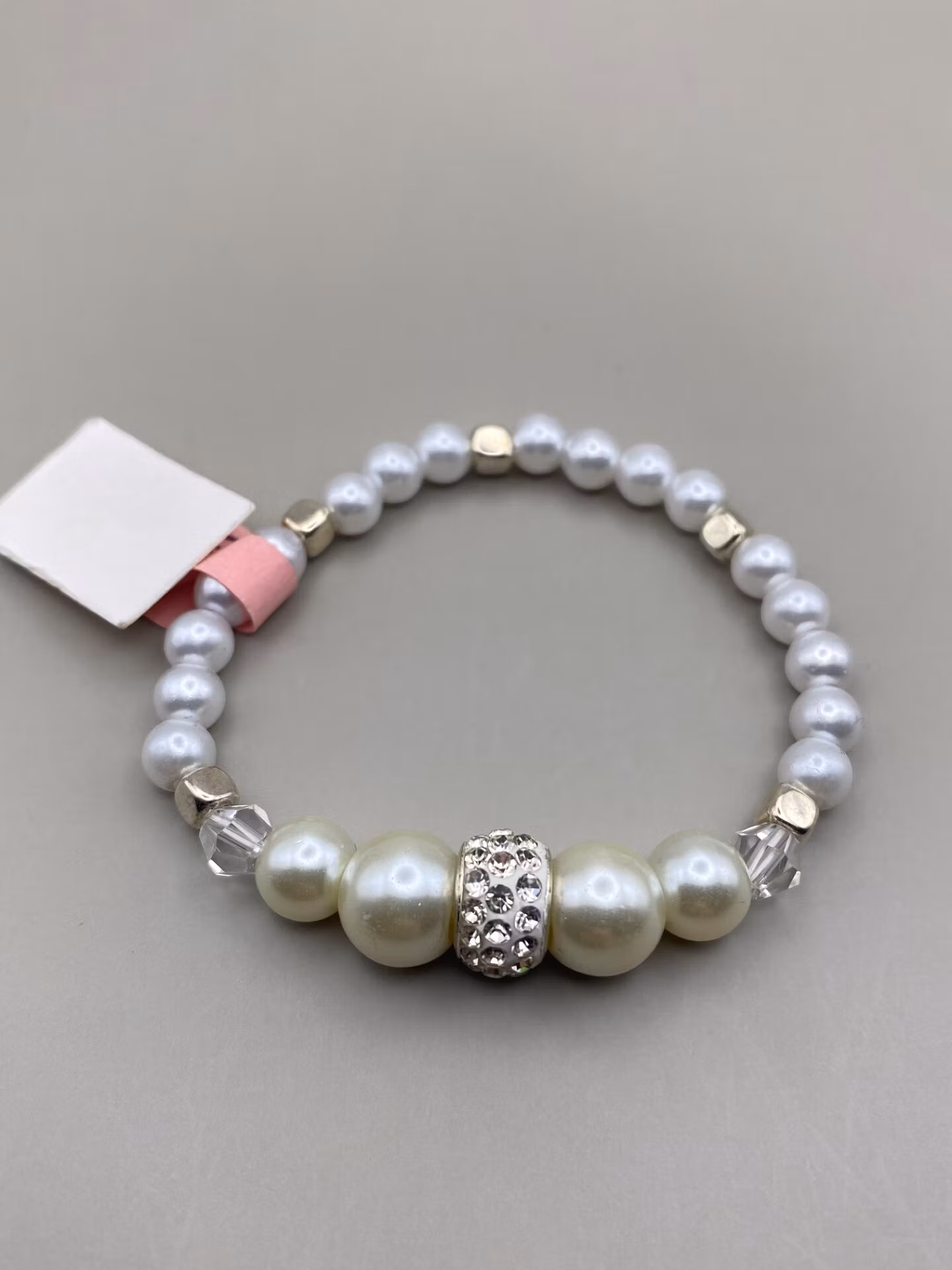 Vita pärlor, stor strass detalj och grå glaspärlorfinns även en ljus ljua rosa motsvarande. skriv i utcheckning vit eller rosa (se handledsbilder)