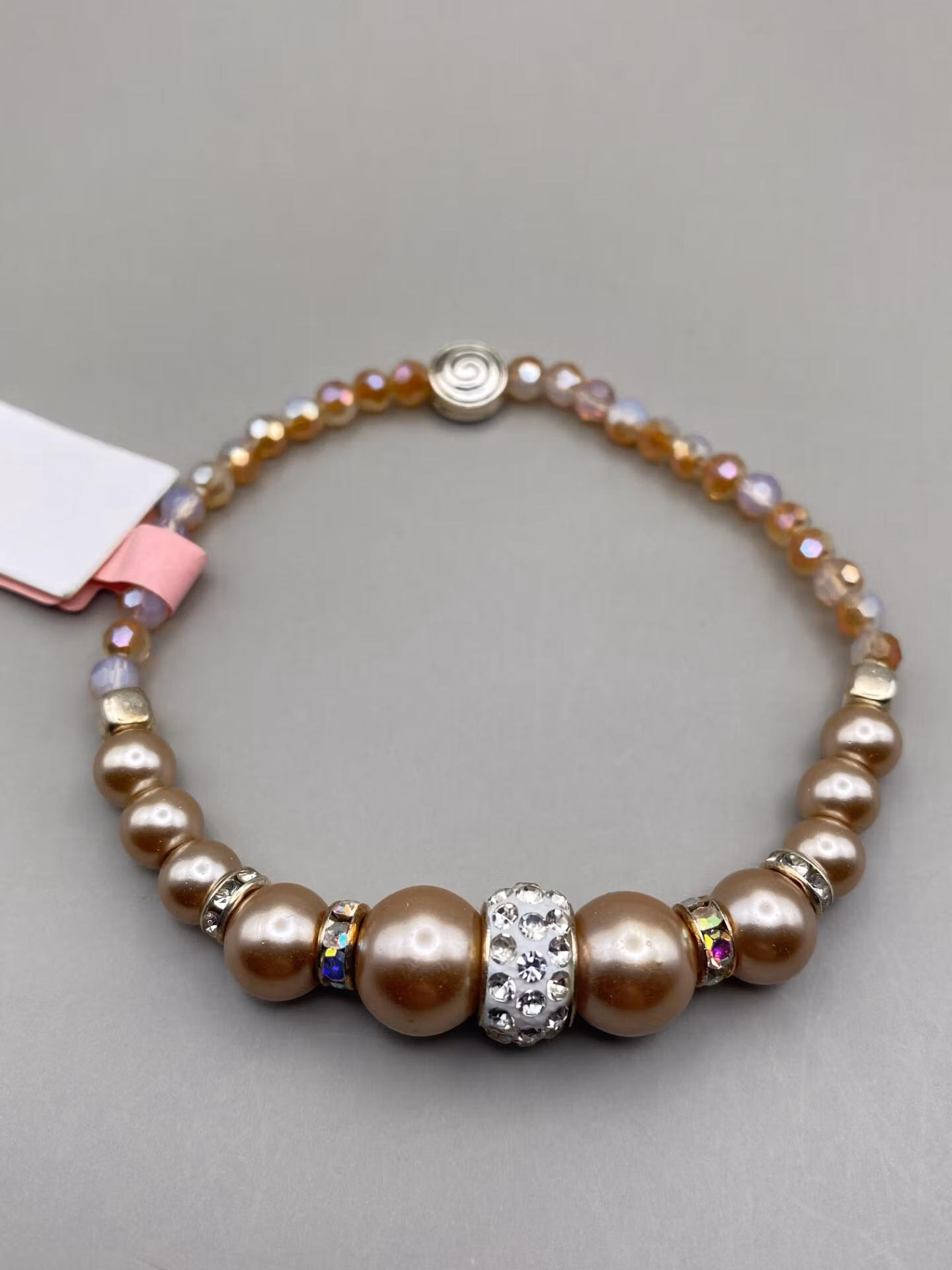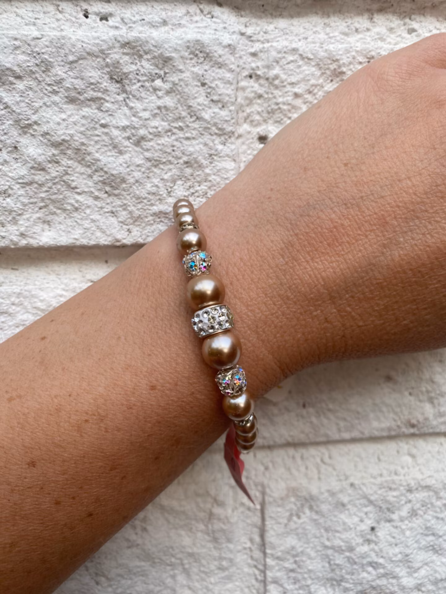 Armband i champagne med detaljer av strass och mellerade glaspärlorPärlor 4mm, 6mm, 8mm, 10mm