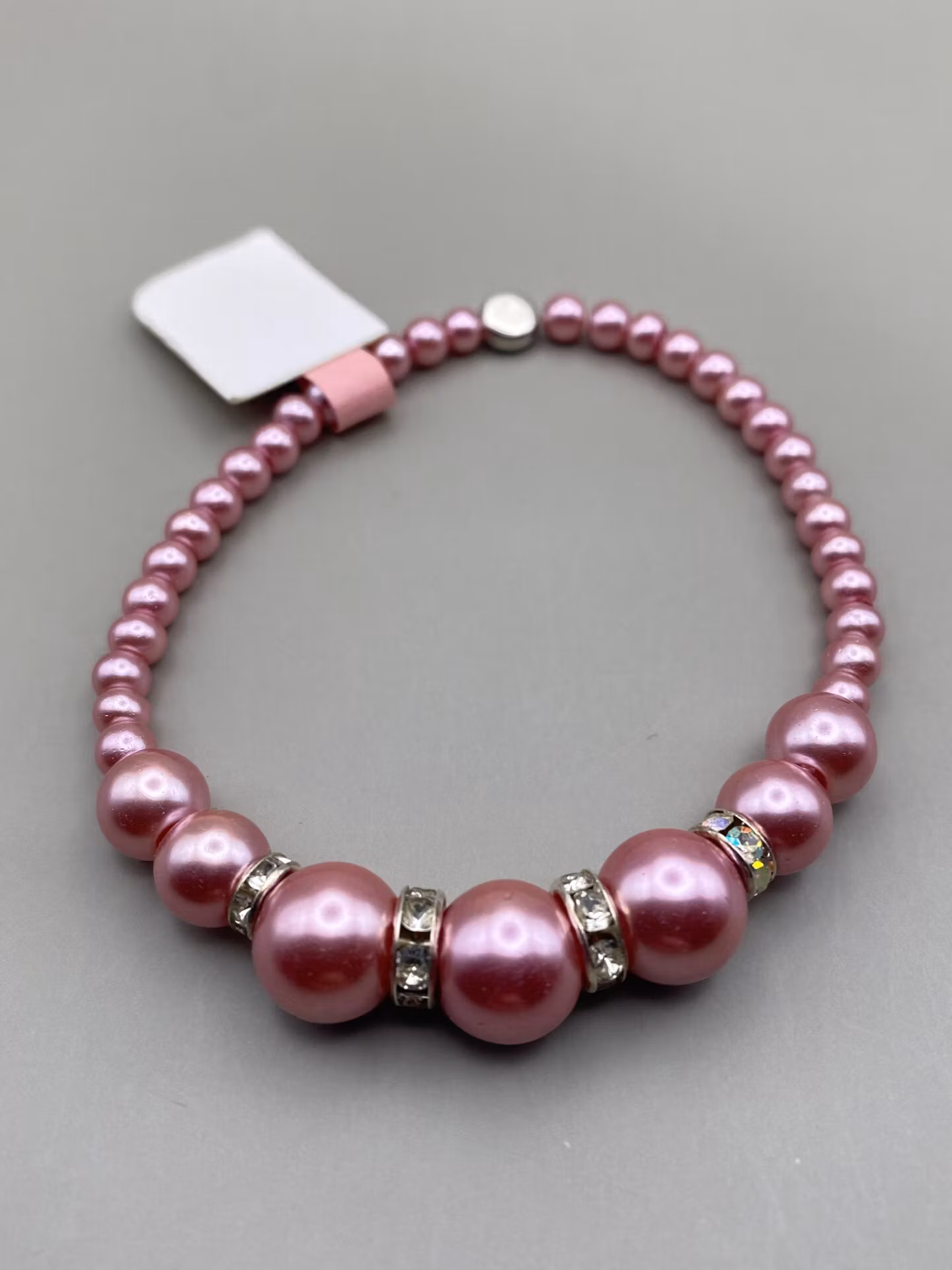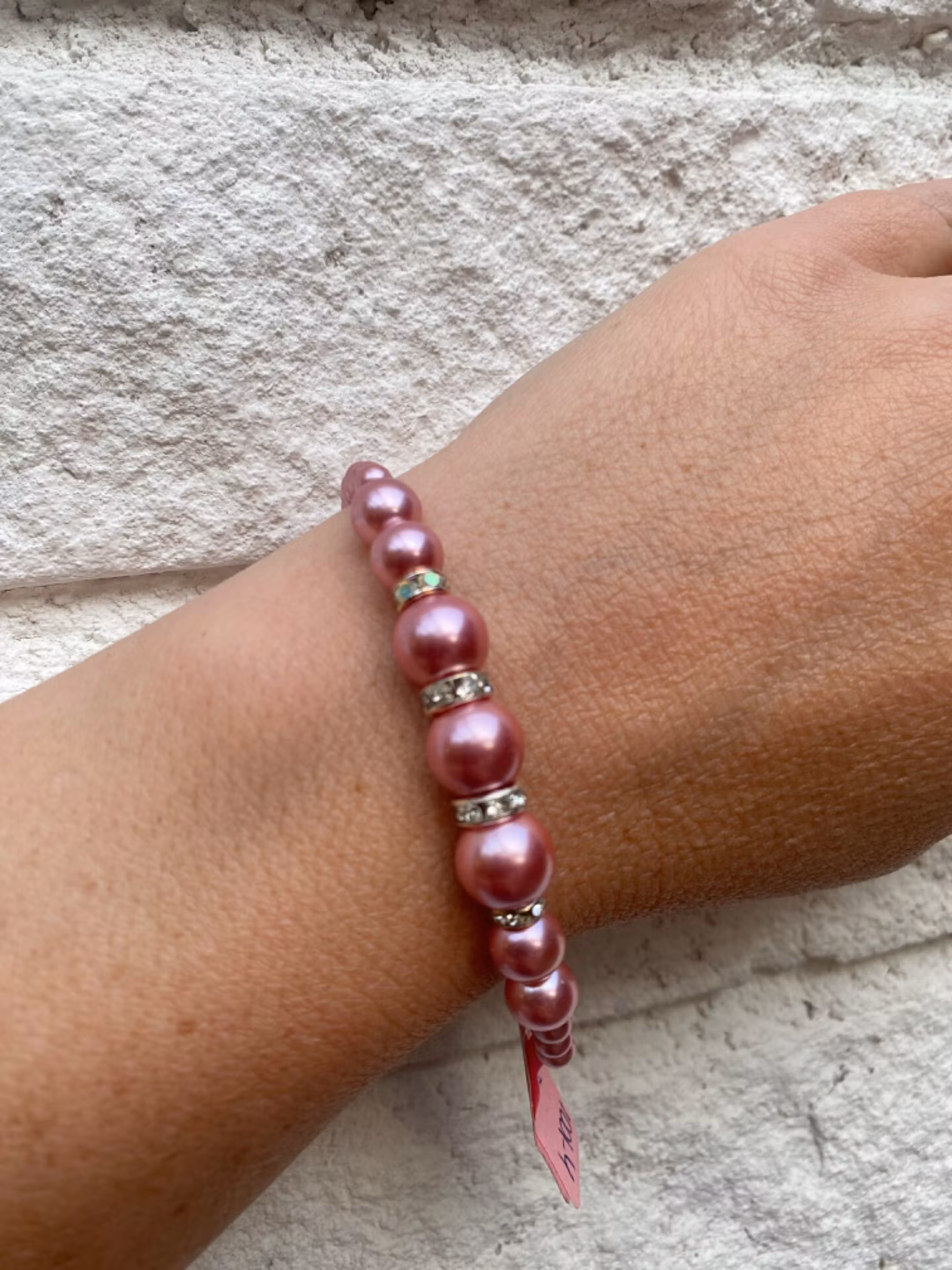 Armband med glansiga rosa pärlor och silverfärgade strassdetaljer som fångar blicken. En feminin touch med det lilla extra – perfekt som blickfånget i din look.