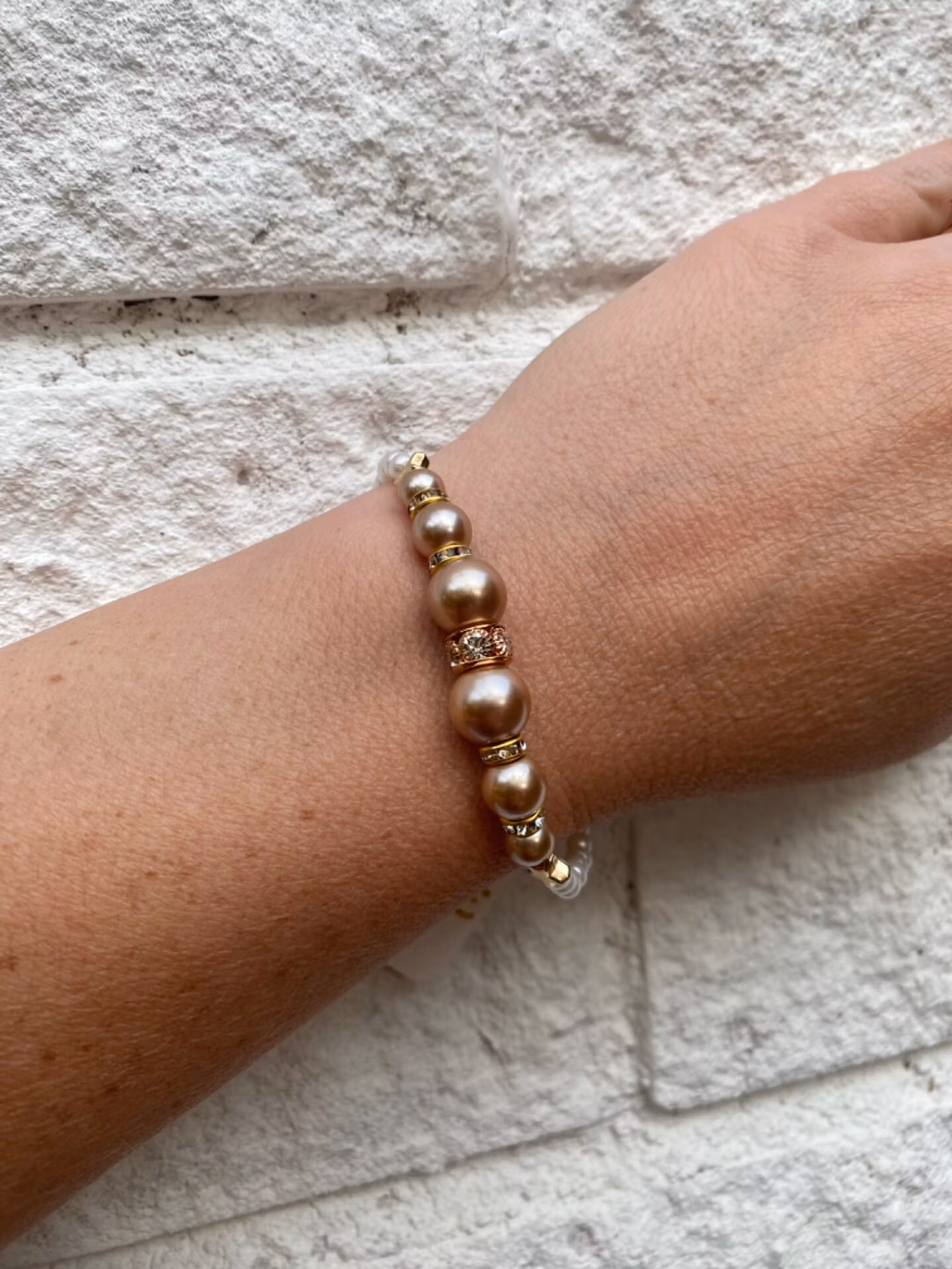 Armband med glansiga rosa pärlor och silverfärgade strassdetaljer som fångar blicken. En feminin touch med det lilla extra – perfekt som blickfånget i din look.