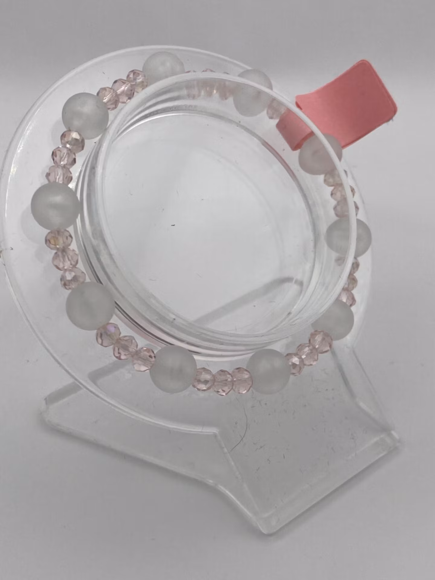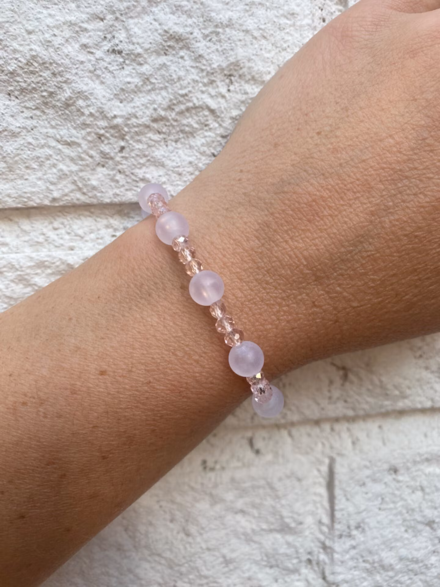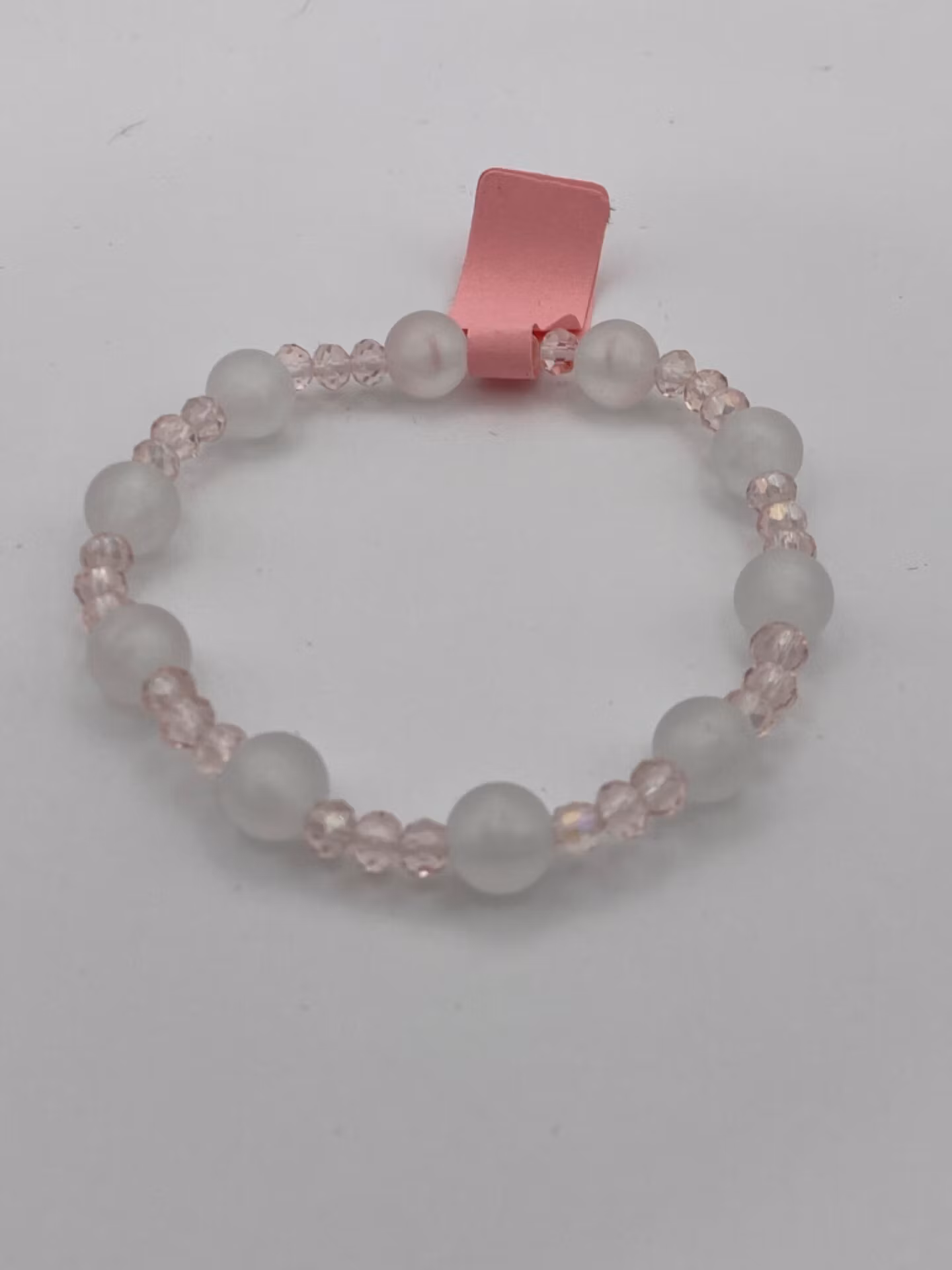 Armband i vit frotstade glaspärlor varvat med ljusrosa glaspärlorPärlor 8mm, 4mmVisas produkten "Tillfälligt slut" efter att du lagt den i din kundkorg, betyder