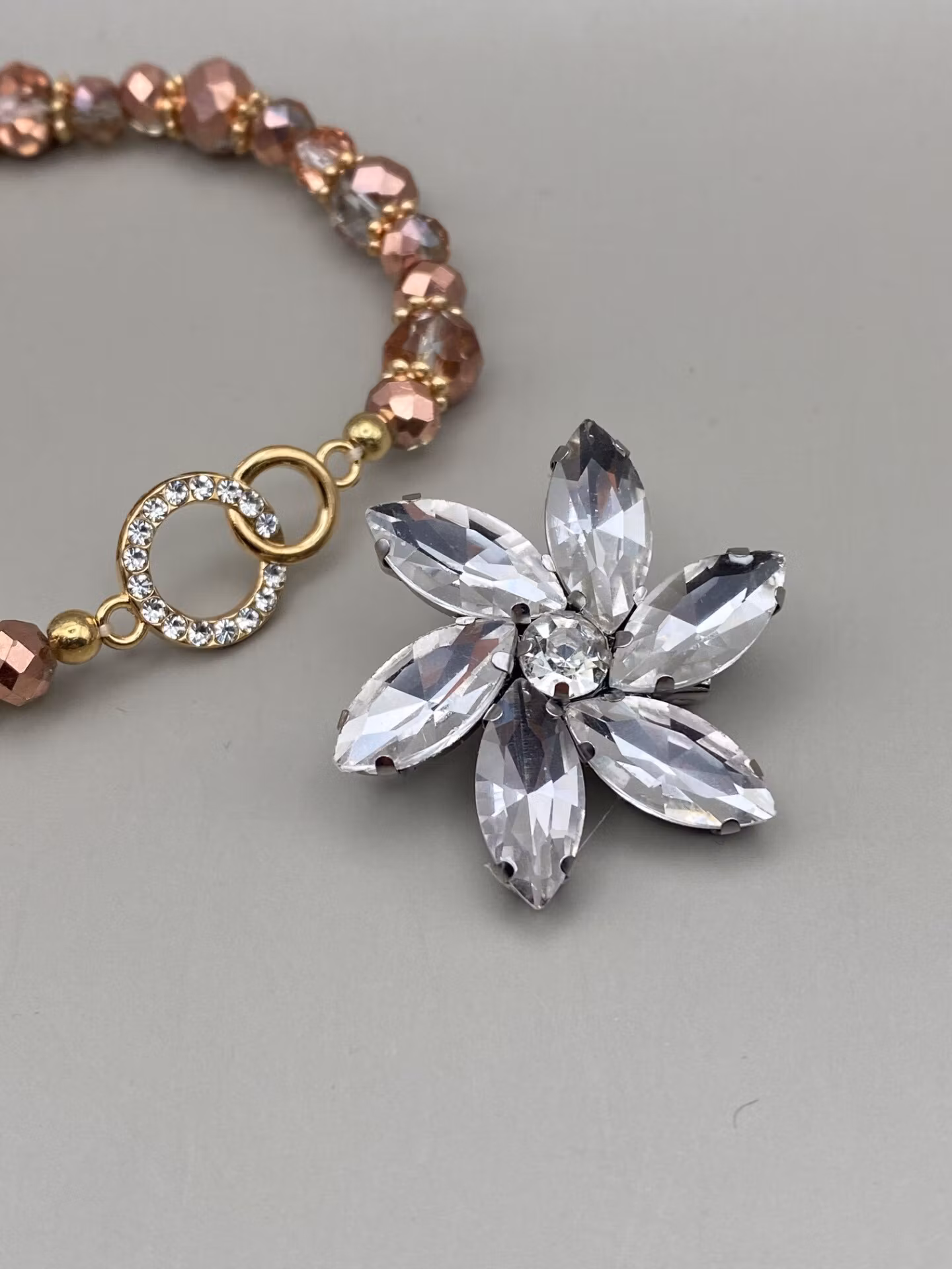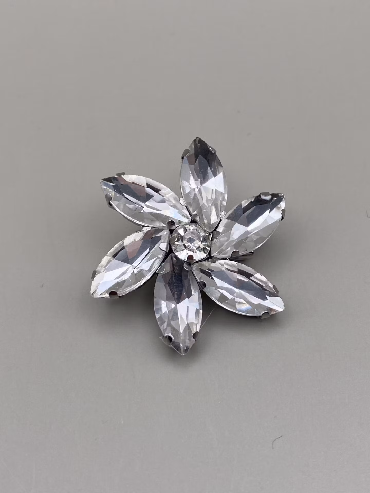 Brosch av strasstenar i form av en blomma, ca. 3cm bred.