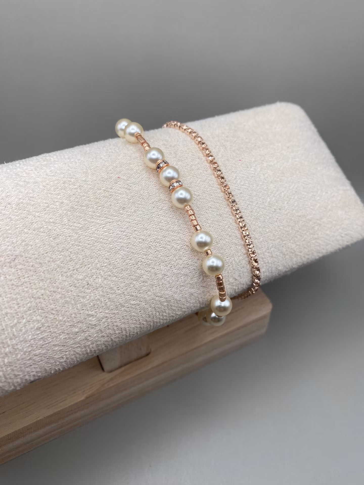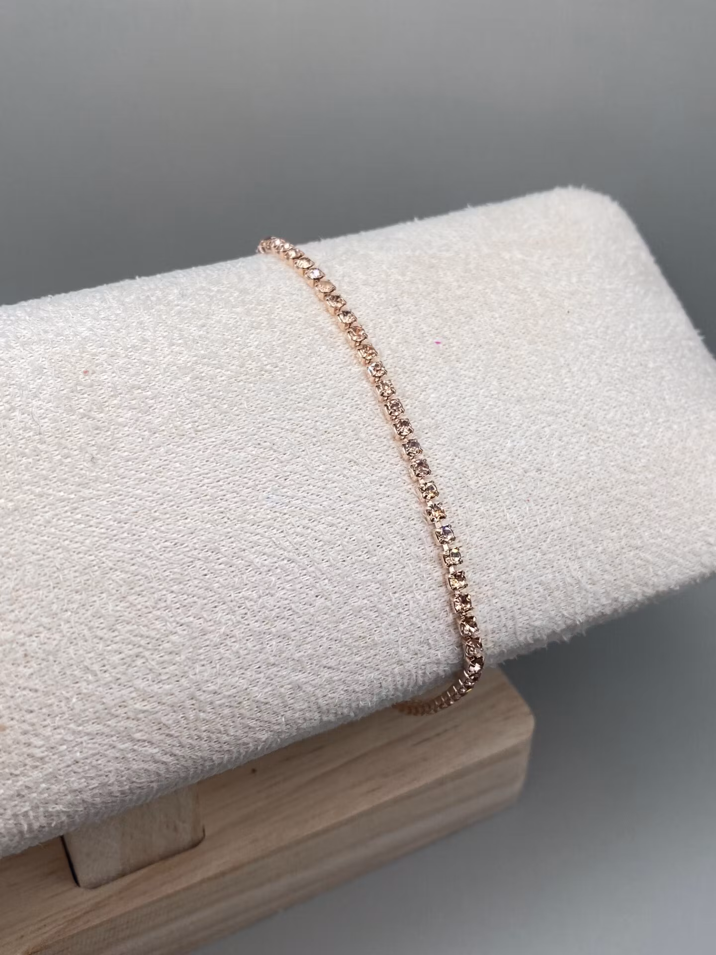 Tjustigt skimrande armband med roséfärgad strass.