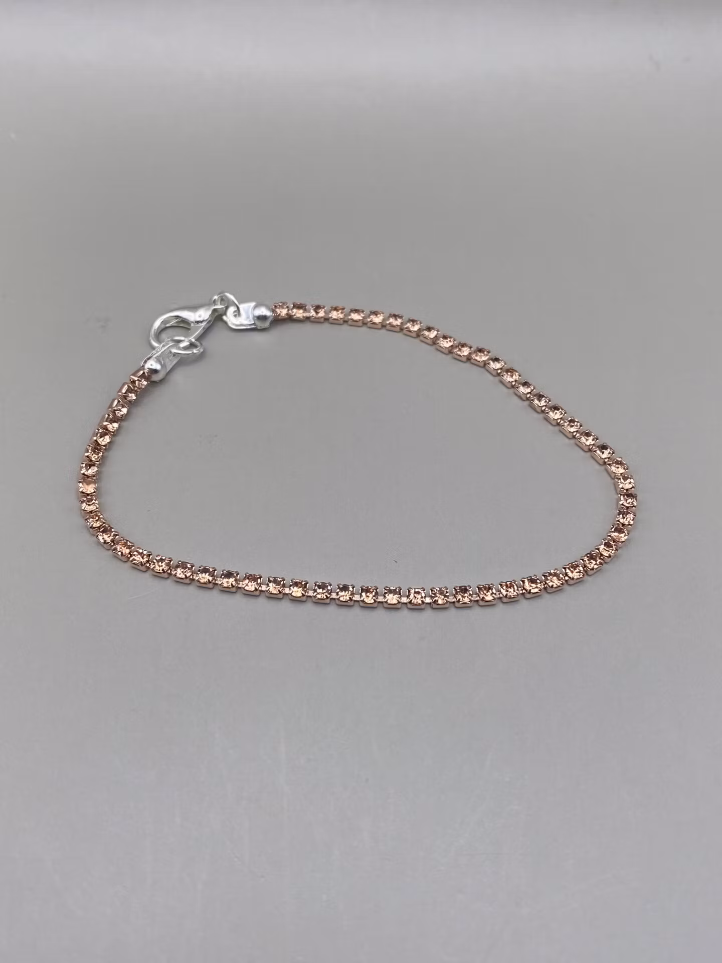 Tjustigt skimrande armband med roséfärgad strass. Armbandet är fast längd och med spänne.3mm bred strass.Visas produkten "Tillfälligt slut" efter att du la