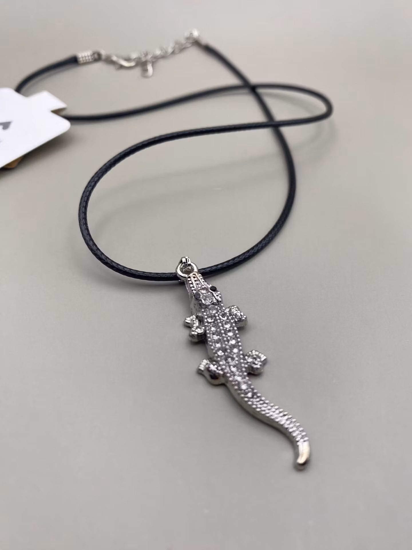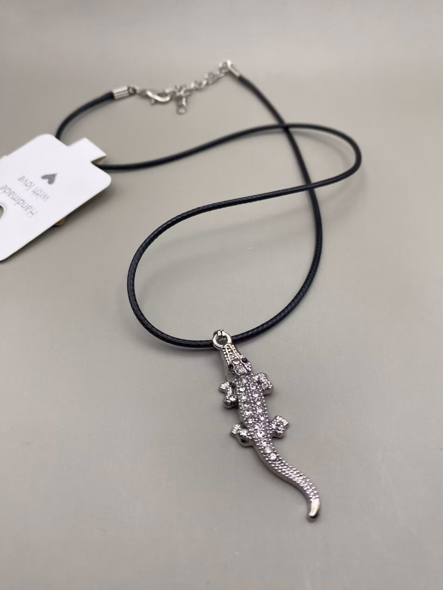 Handgjorda smycken i begränsad upplaga – armband, halsband, ringar & örhängen. Halsband med dekorativ krokodil som berlock