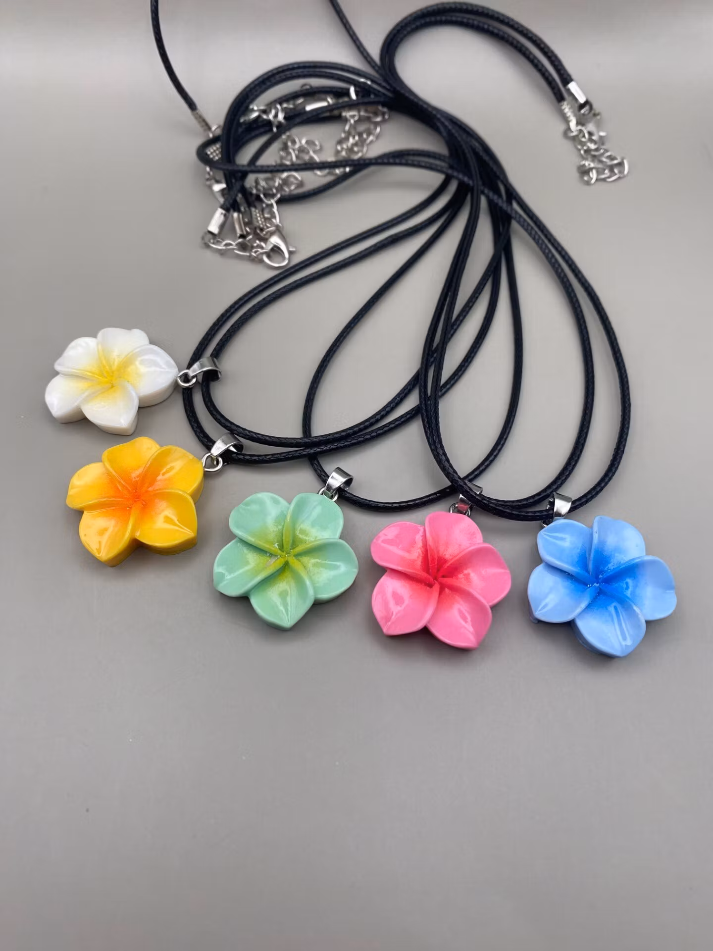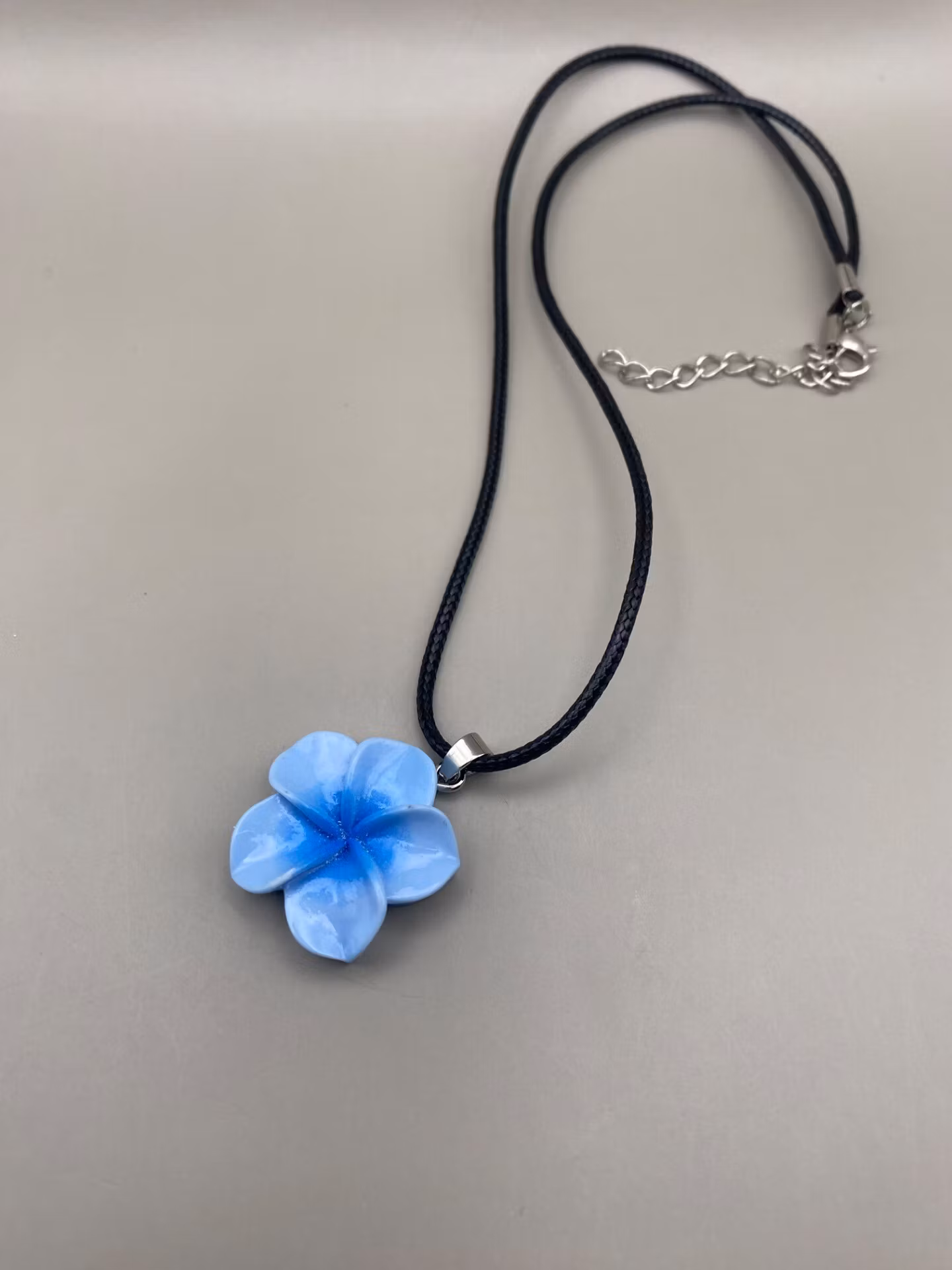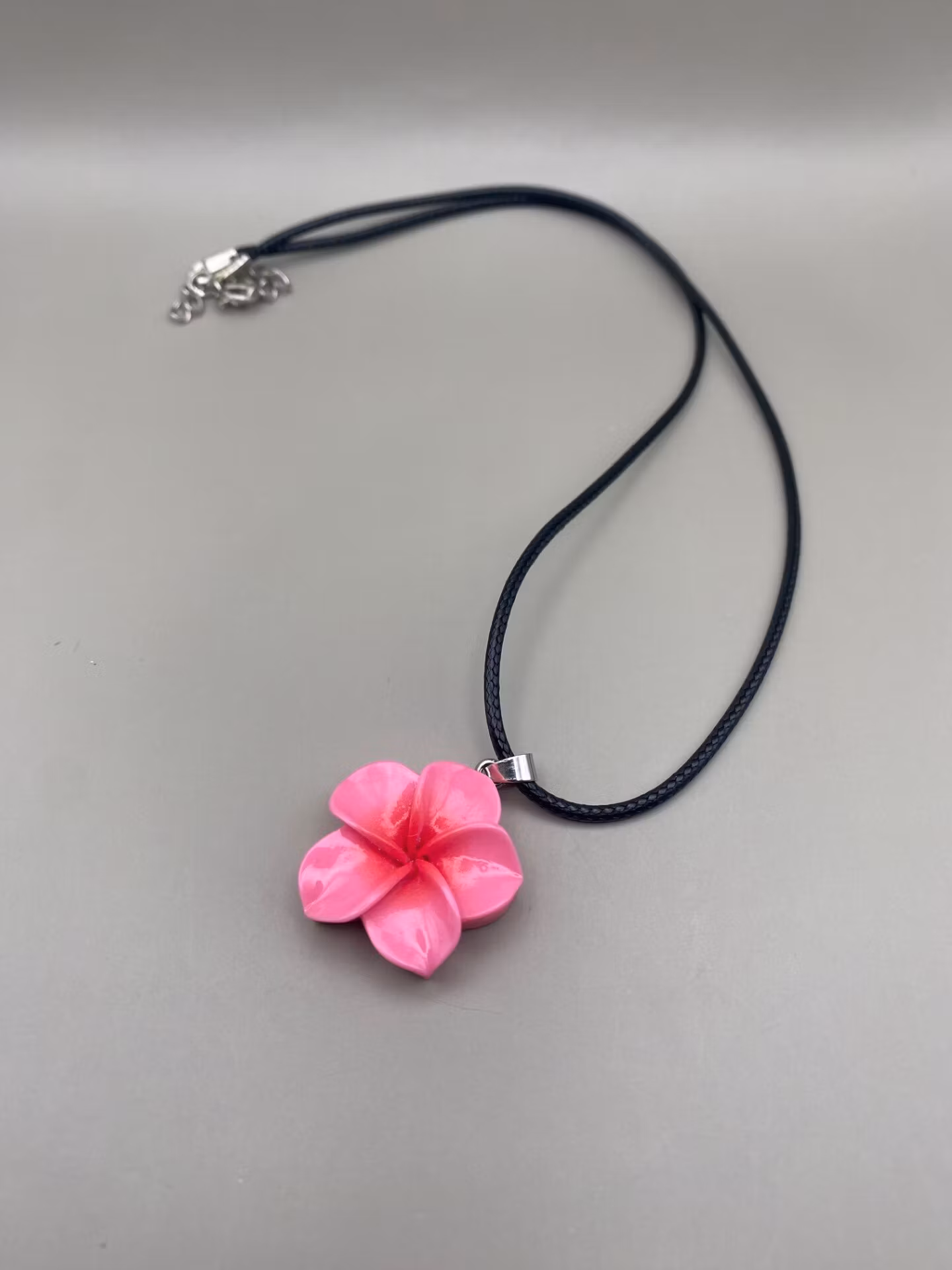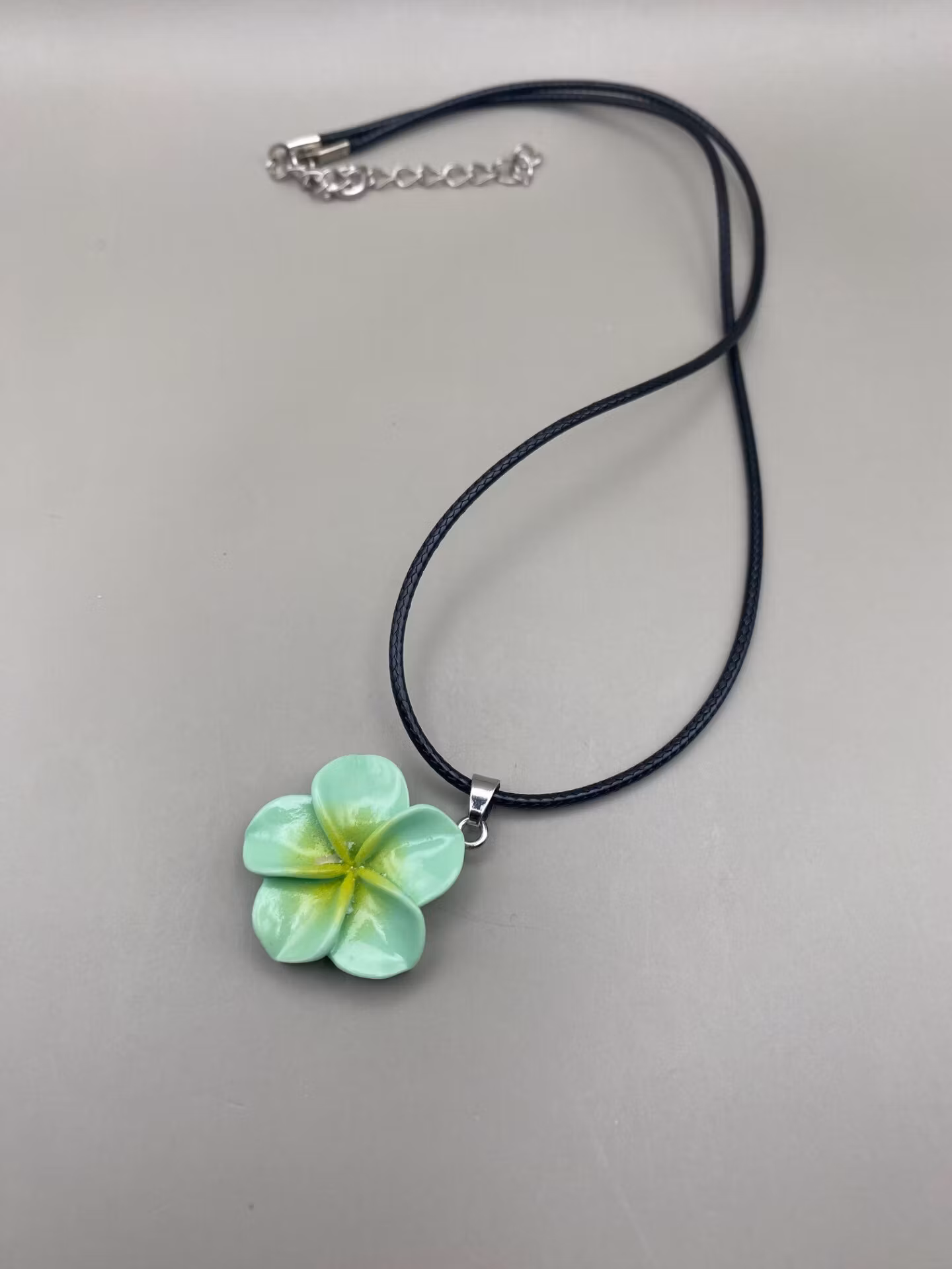 Halsband, svart tygkedja, läder-look-a-like med lekfull akrylblomma, finns i fem färger