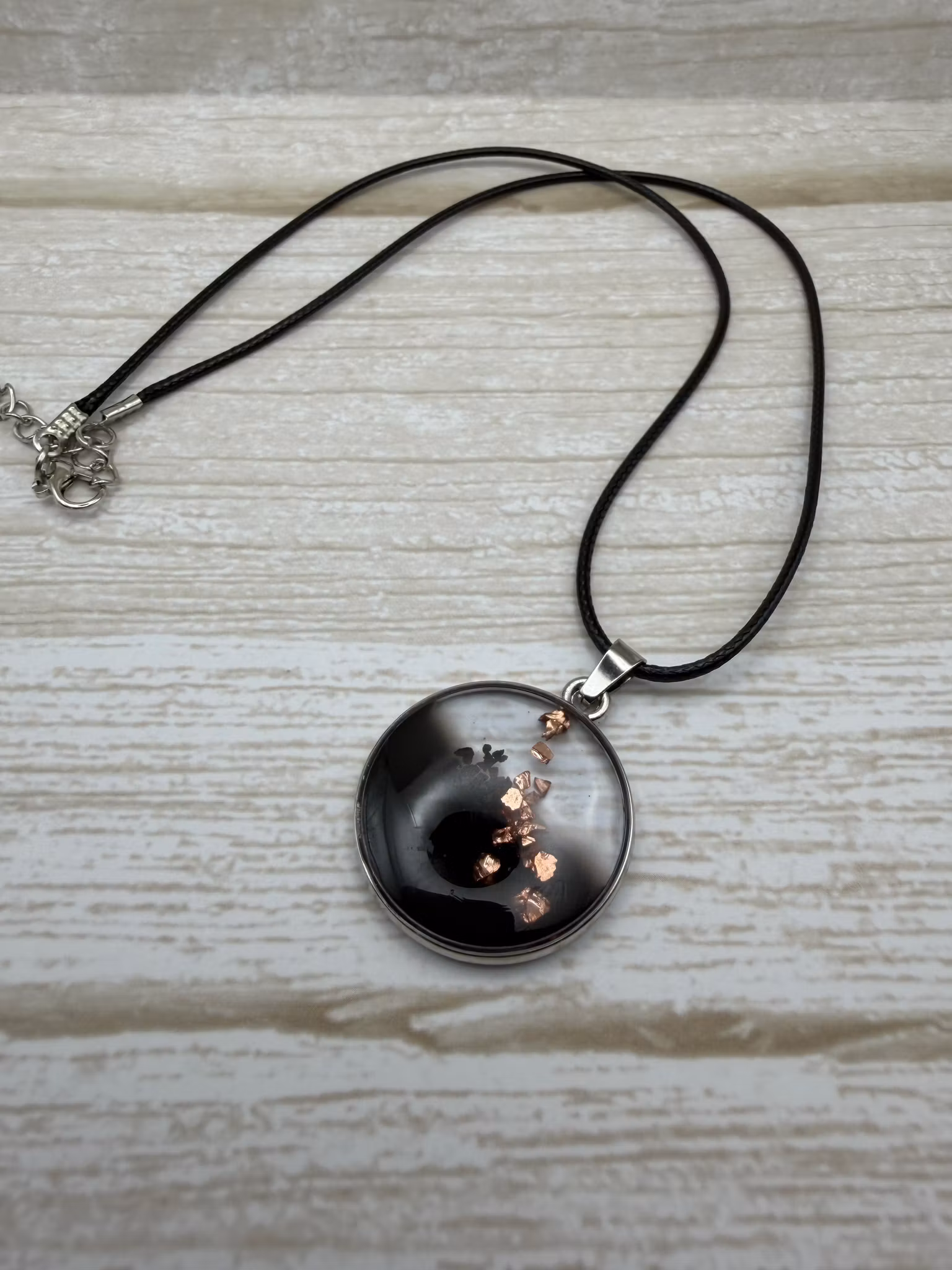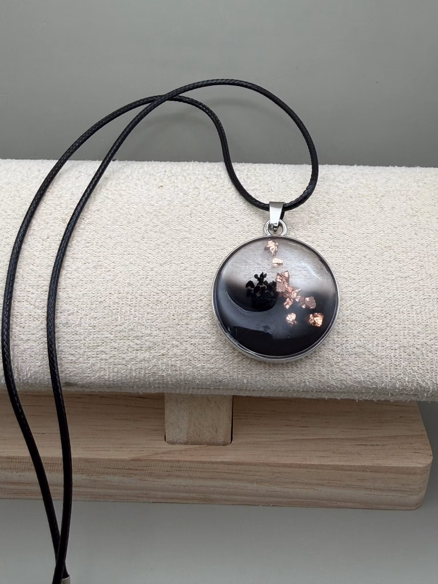 Varje smycke är unikt och skapat med omsorg – en liten detalj som gör stor skillnad. Halsbandet är gjort i läder, vilket ger en stilren och naturlig känsla som lyfter berlockens elegans.