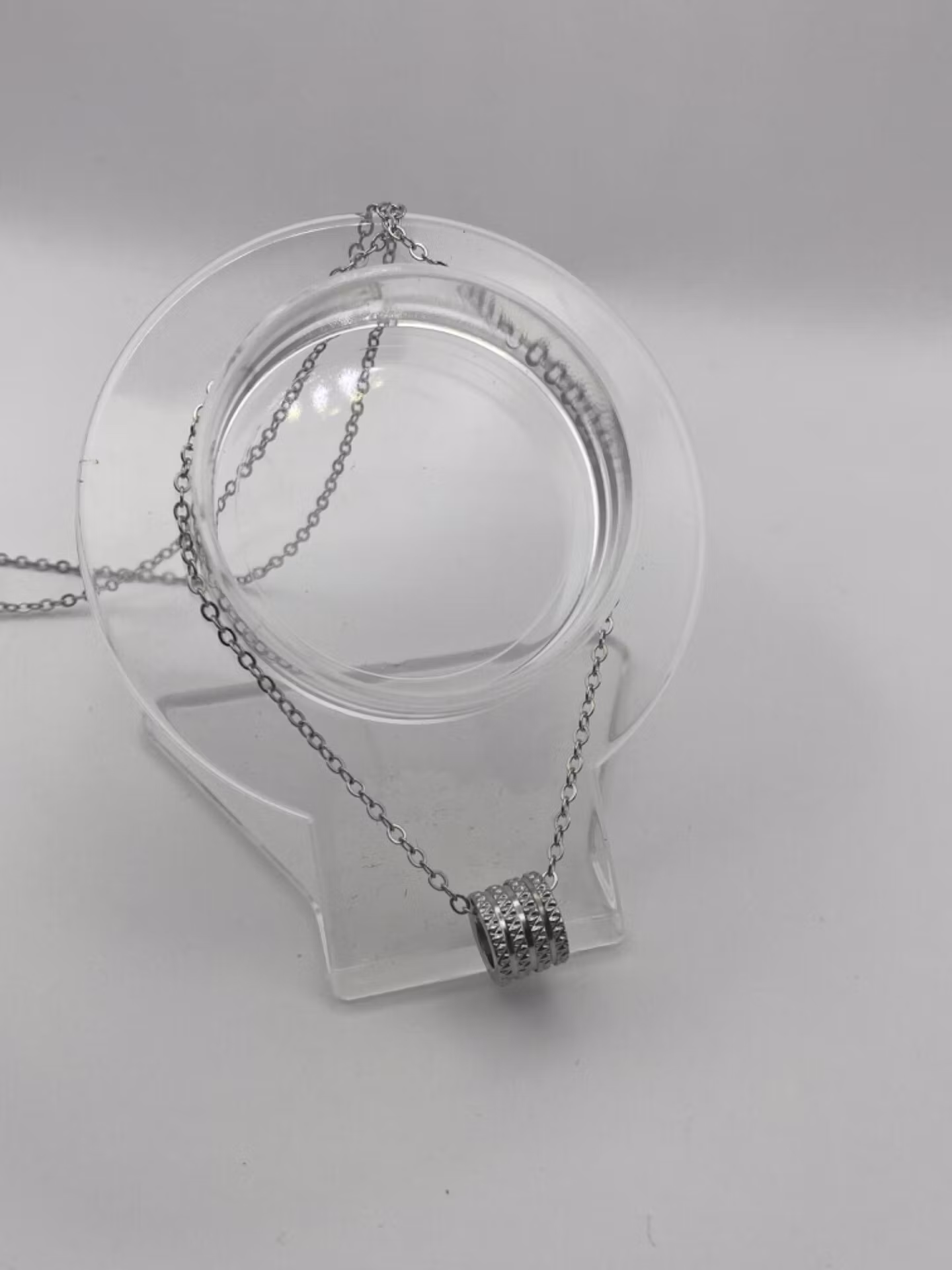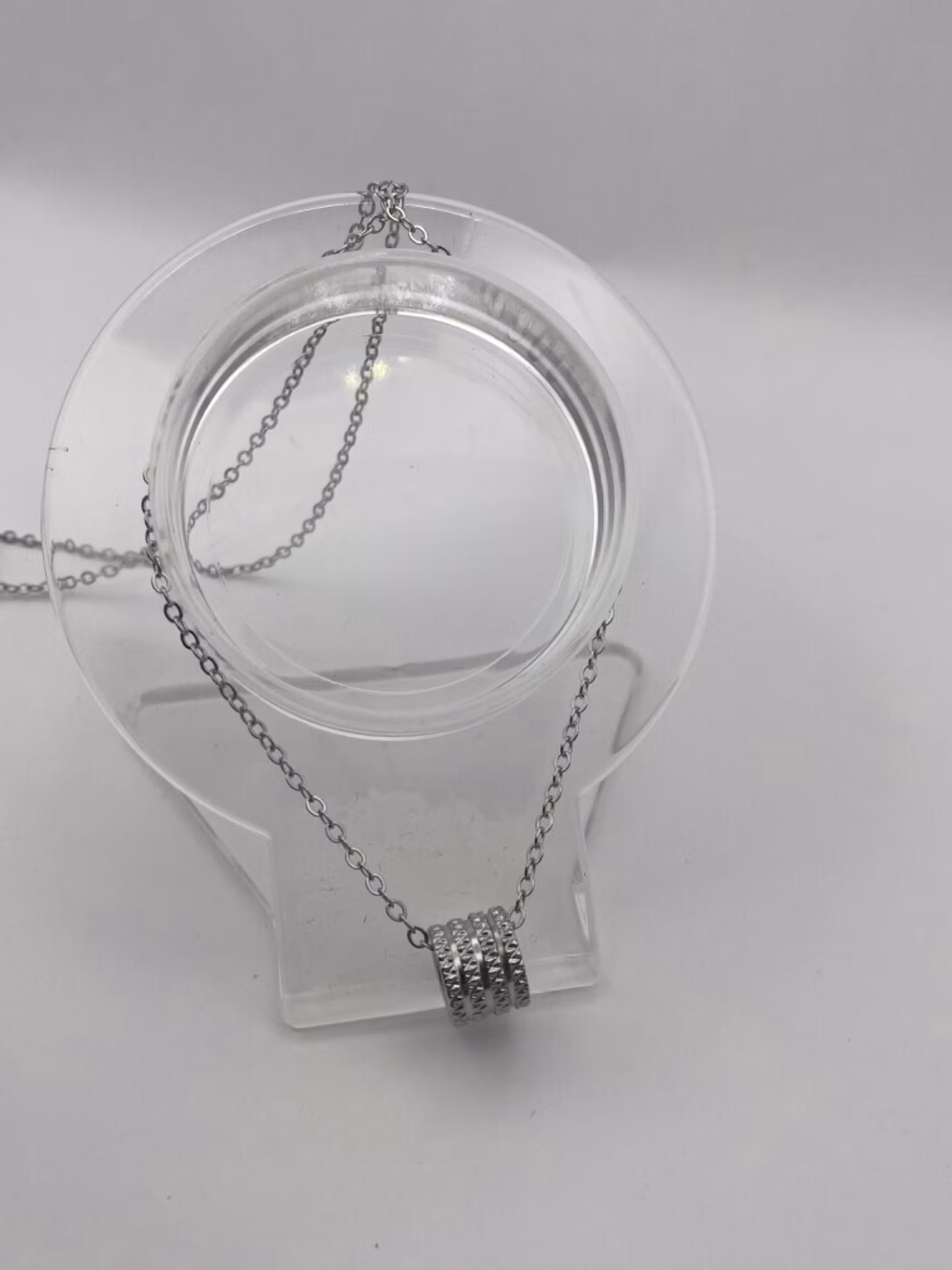 Silvergrå färgat halsband med ett tufft silvergrått hänge