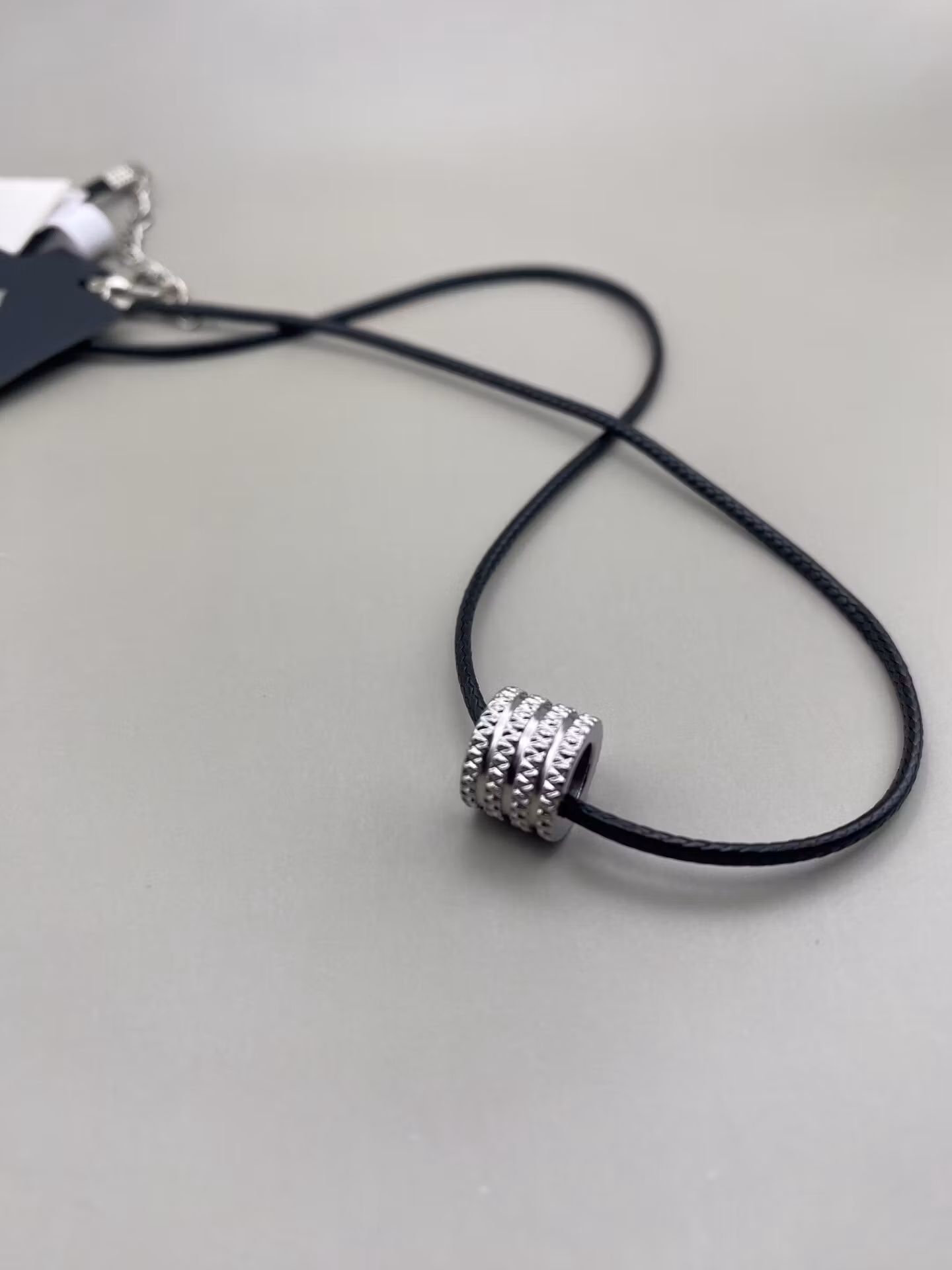 Svart läderhalsband med ett tufft silvergråfärgat hänge
