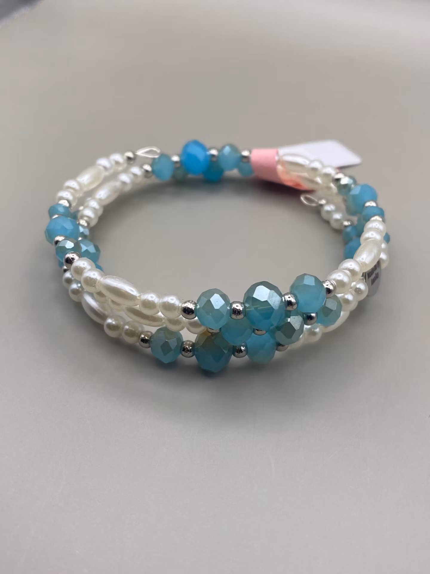 Handgjort Luxury-flex armband med pärlor i spiraldesign. Flexibelt, elegant och tidlöst smycke för alla tillfällen. Turkos pärlarmband