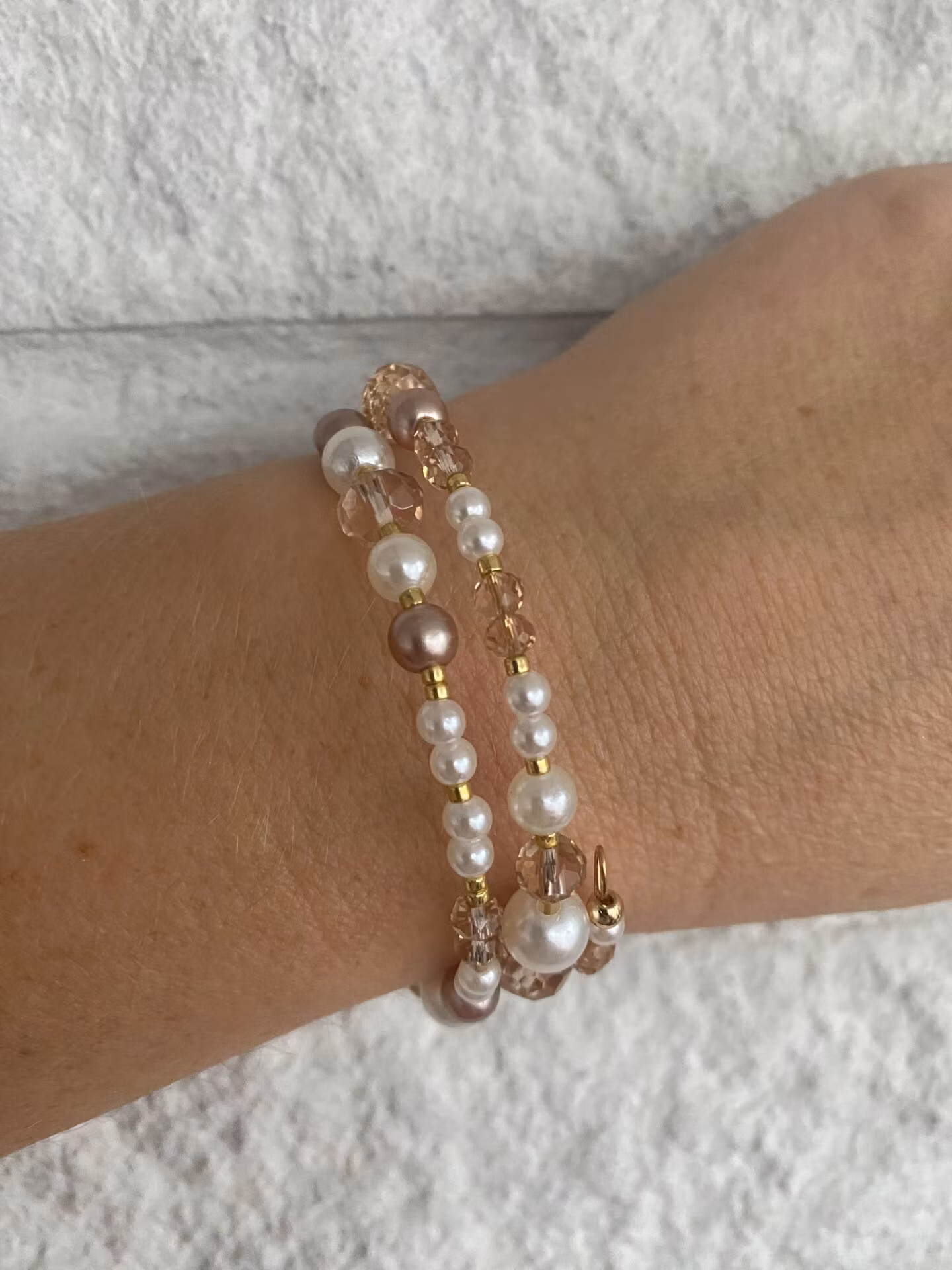 Handgjort Luxury-flex armband med pärlor i spiraldesign. Flexibelt, elegant och tidlöst smycke för alla tillfällen