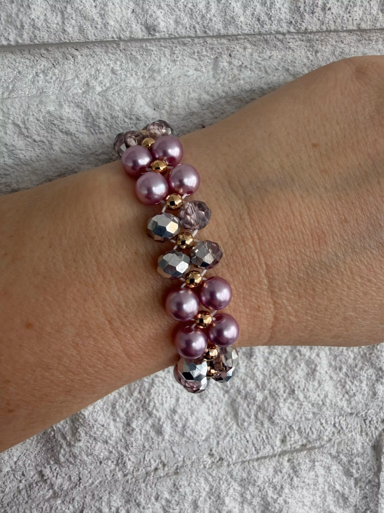 De elastiska armbanden jag skapar ska kännas bekväma, inte för tighta. Standardstorleken passar de flesta, men du kan välja en annan om du har smalare eller bredare handleder. Jag justerar då ditt armband genom att lägga till eller ta bort någon enstaka pärla. Viktigt för mig är att det känns rätt för dig.