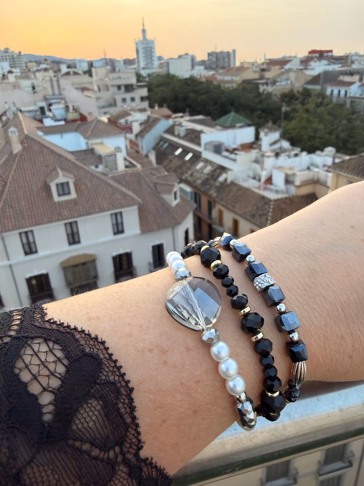 De elastiska armbanden jag skapar ska kännas bekväma, inte för tighta. Standardstorleken passar de flesta, men du kan välja en annan om du har smalare eller bredare handleder. Jag justerar då ditt armband genom att lägga till eller ta bort någon enstaka pärla. Viktigt för mig är att det känns rätt för dig.