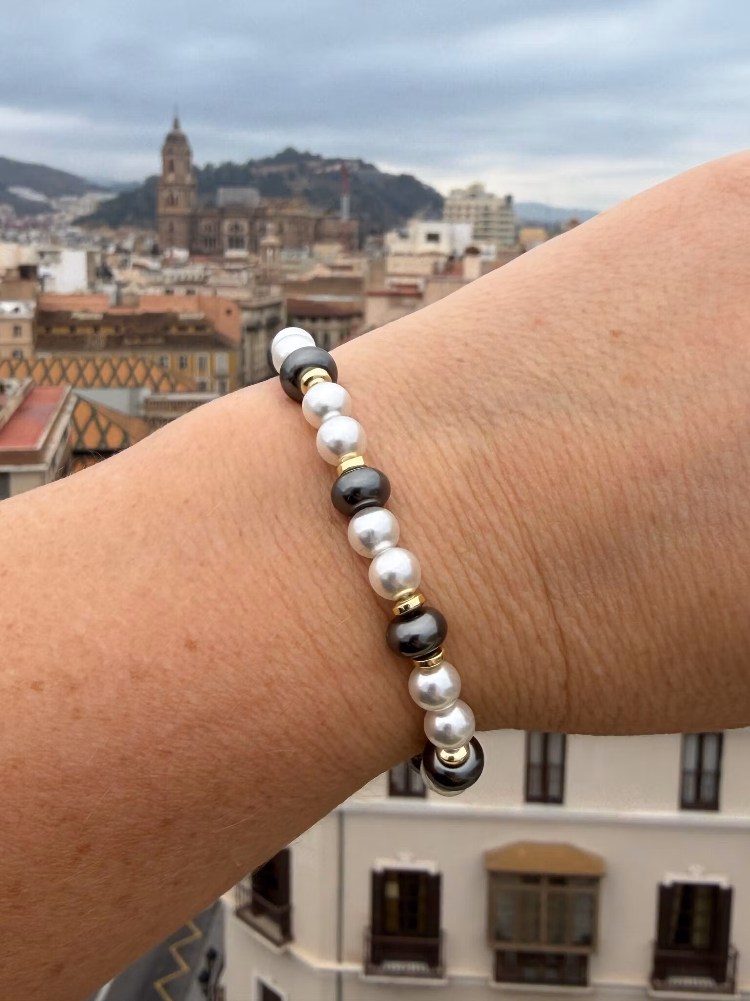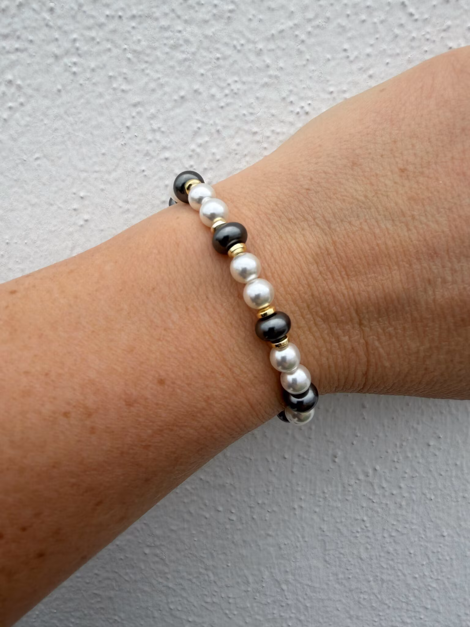 De elastiska armbanden jag skapar ska kännas bekväma, inte för tighta. Standardstorleken passar de flesta, men du kan välja en annan om du har smalare eller bredare handleder. Jag justerar då ditt armband genom att lägga till eller ta bort någon enstaka pärla. Viktigt för mig är att det känns rätt för dig.