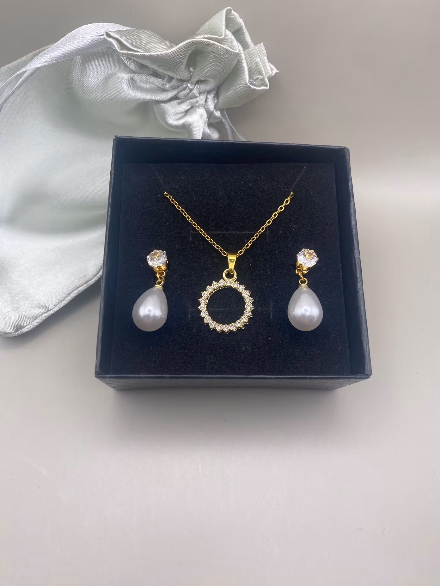 Vackert set med ett par örhängen och ett halsband. (ord.pris 198kr)