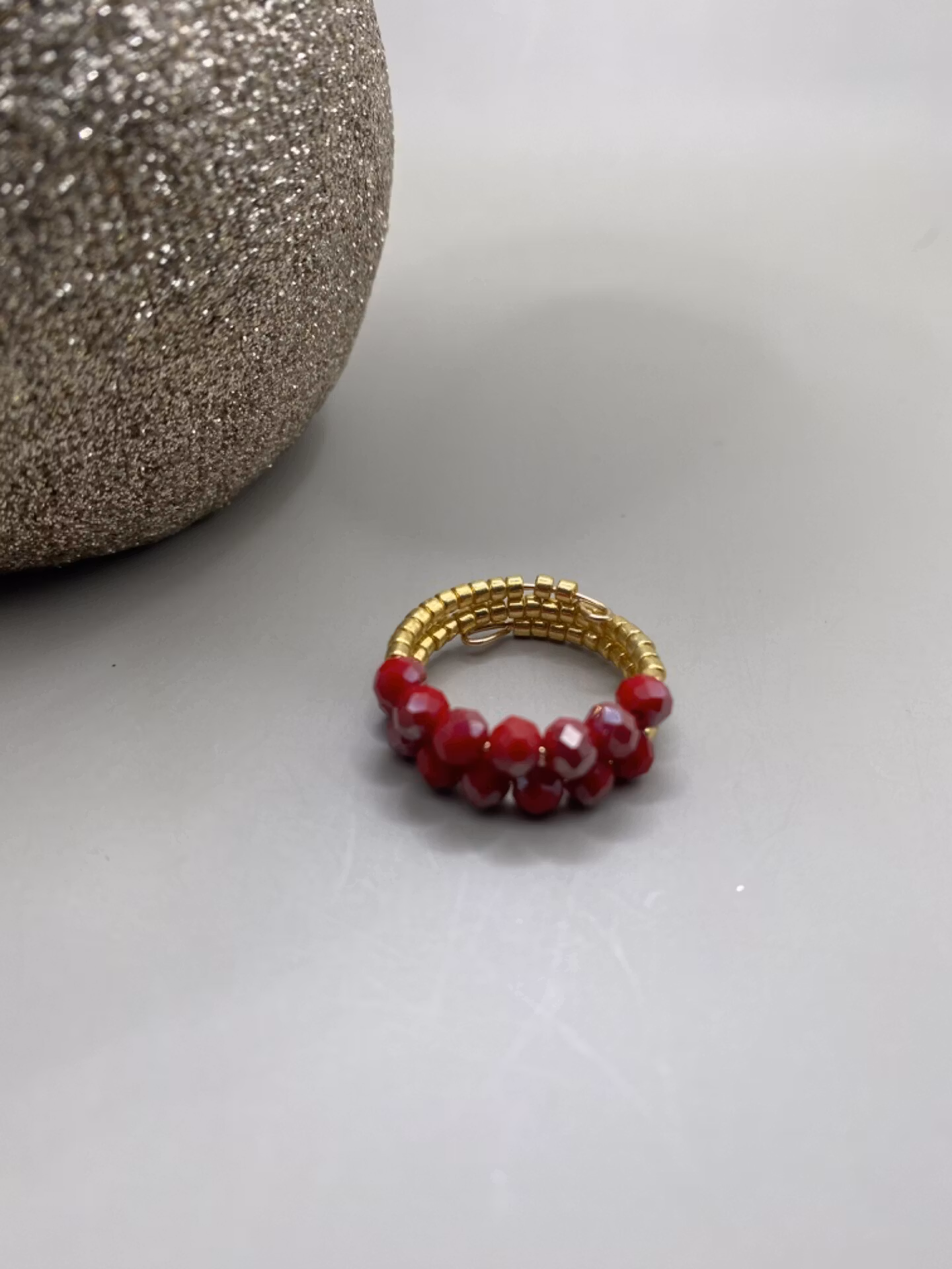 Elegant och fin ring i julens färger, rött och guld.