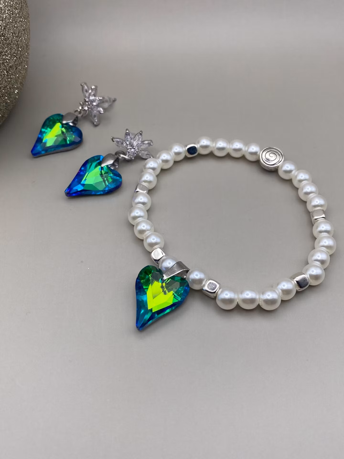 Handgjorda örhängen i tidlös design - perfekta för vardag och fest. Gröna örhängen dam, örhängen med gröna hjärtan och rhinestones