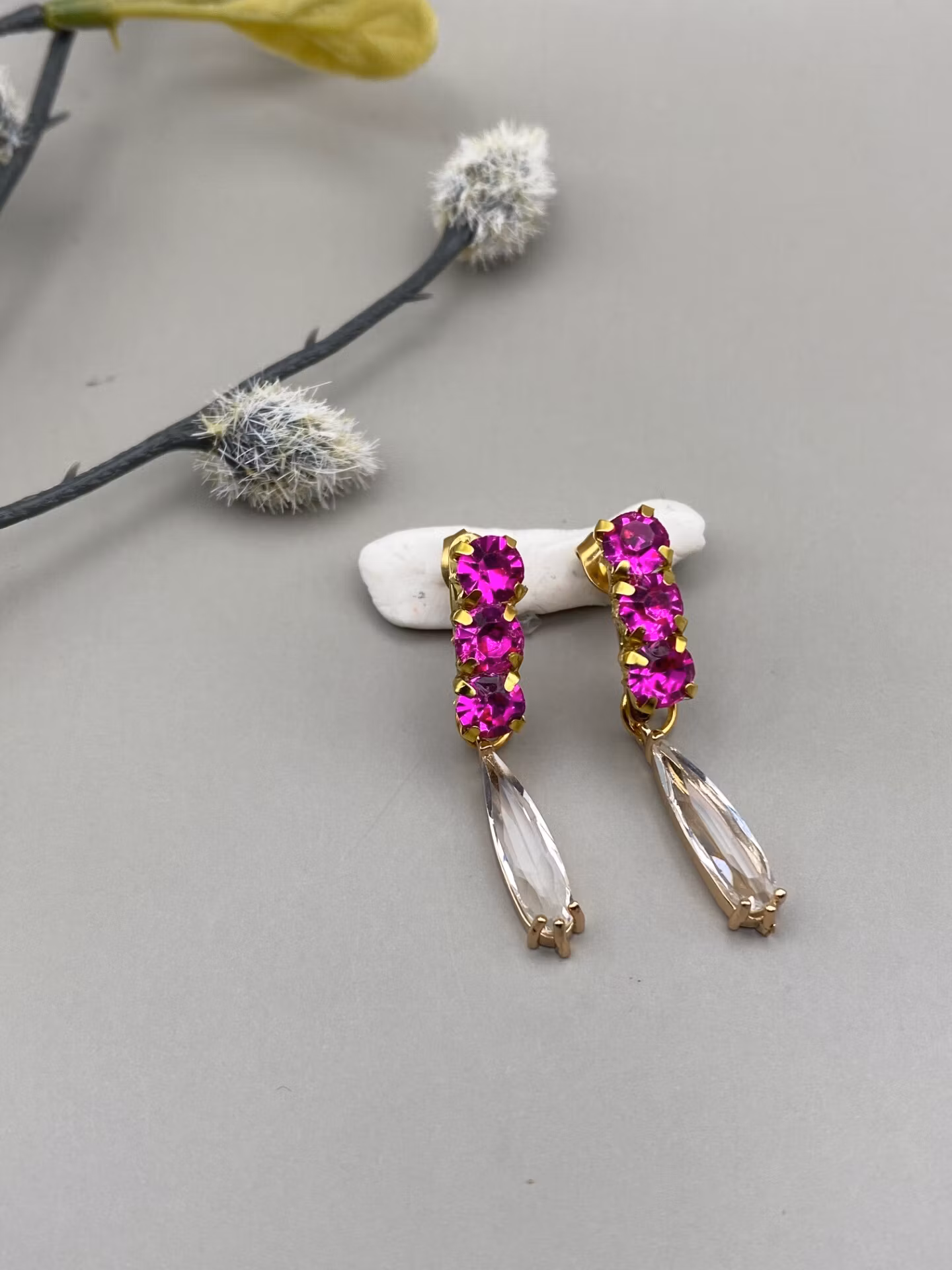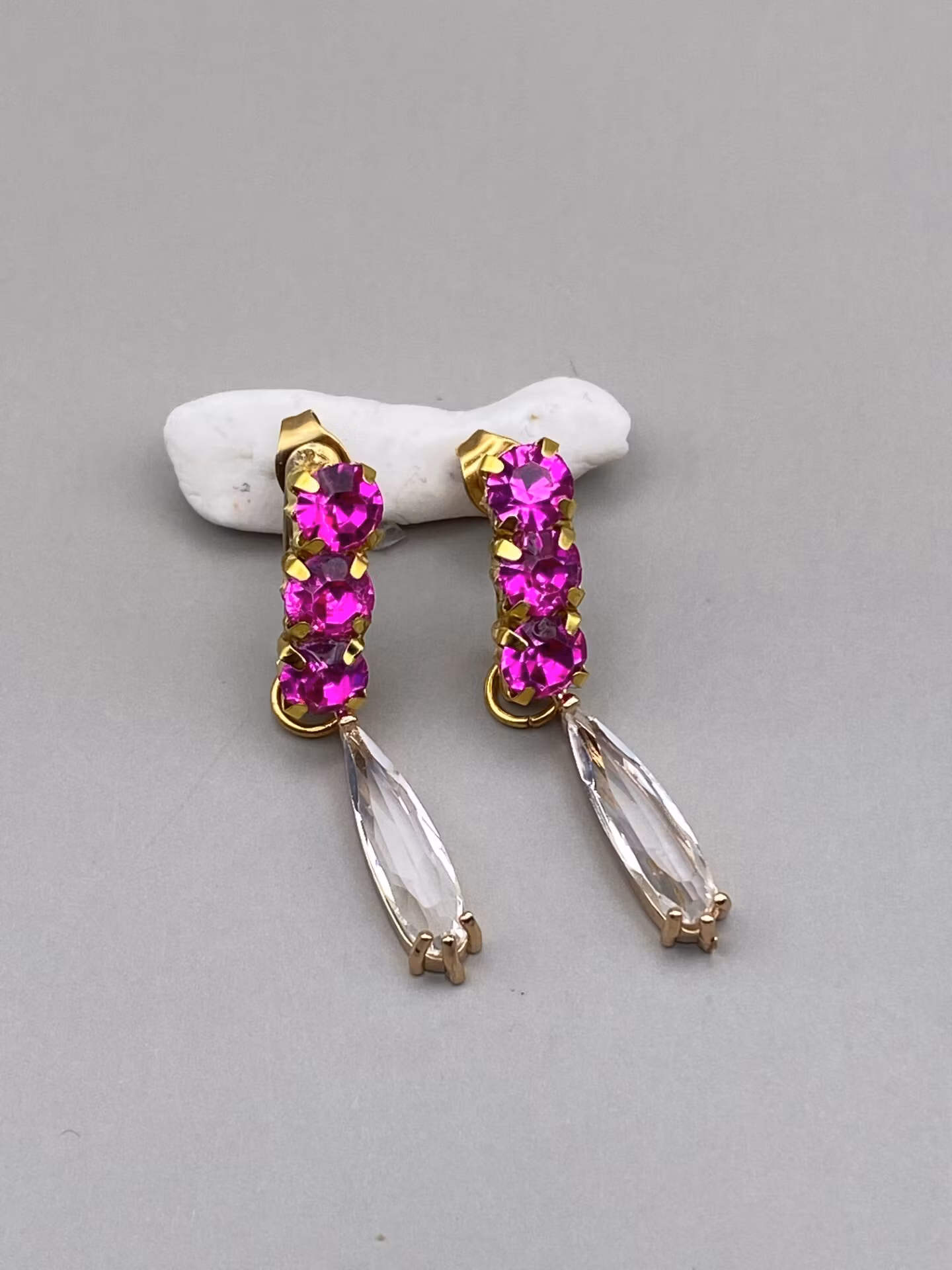 Fina lekfulla örhängen med rosa glaskristall strass och vackert hänge med glaskristall.