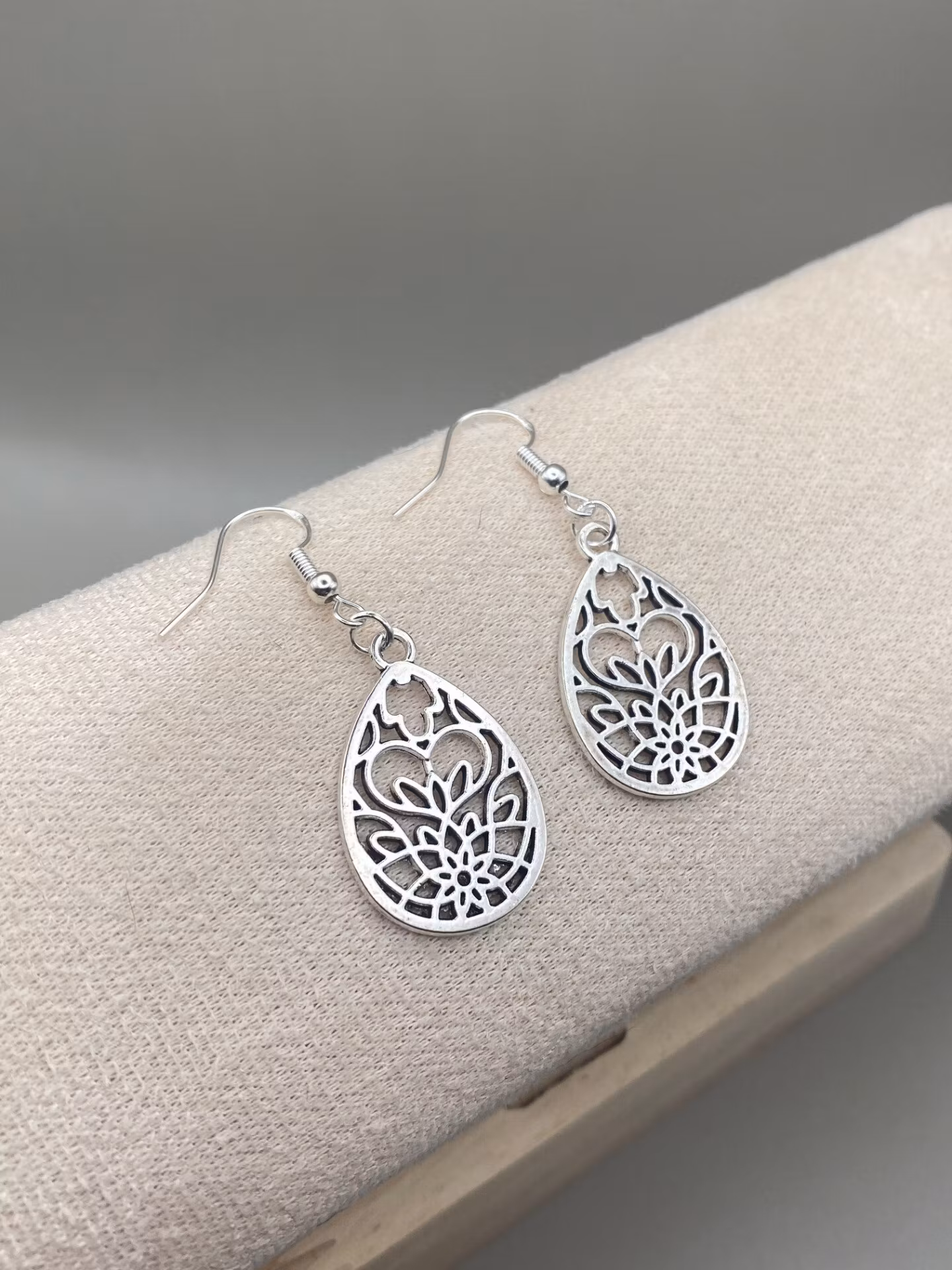 Fina örhängen i dekorativt droppformat hänge i rostfritt stål och öronkrok i silver 925.