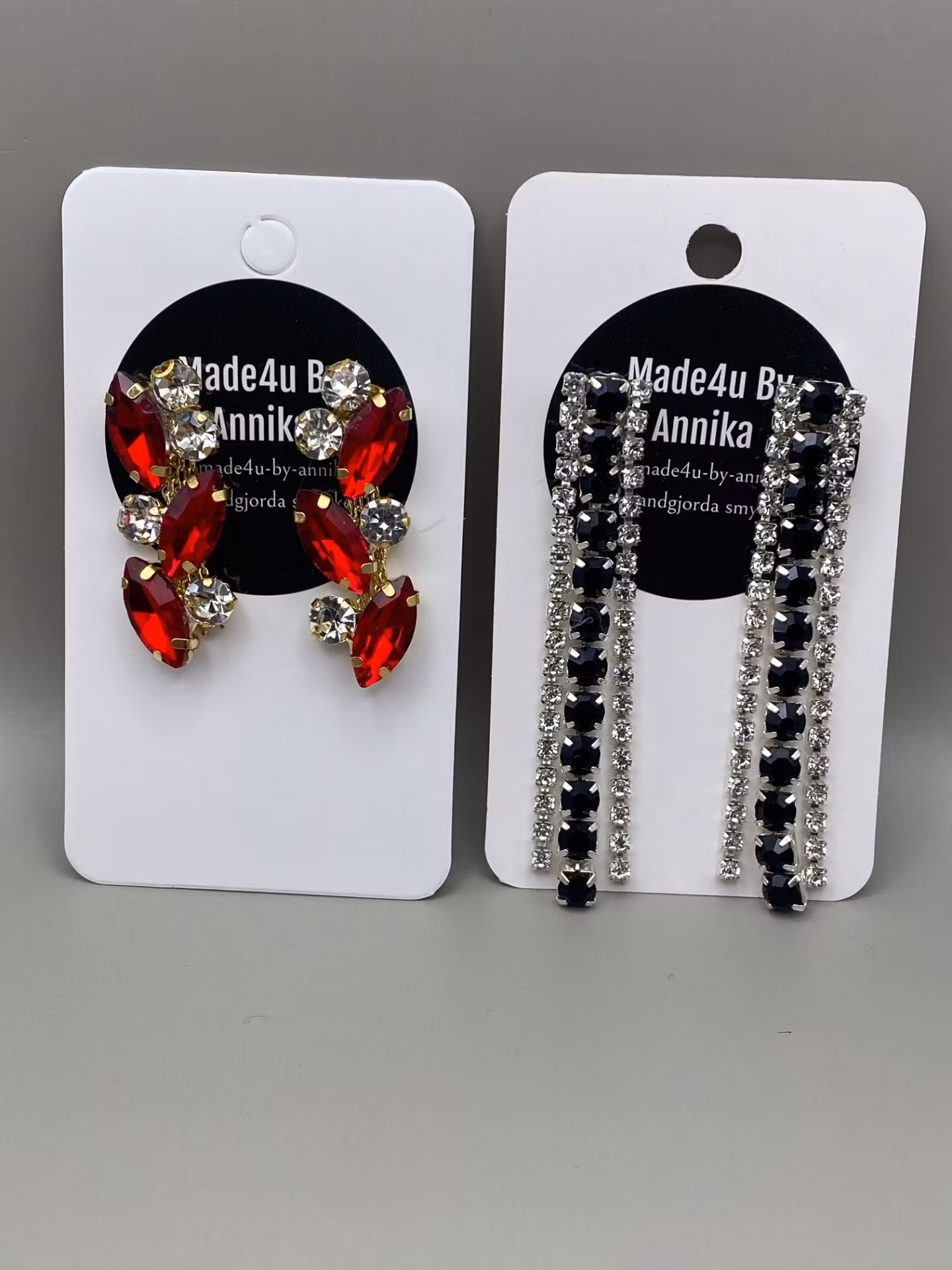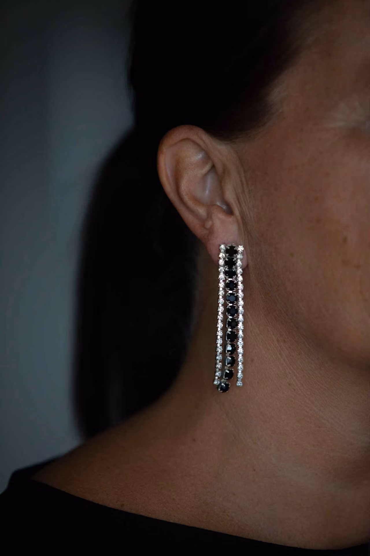 Vackra stora örhängen med varvat svart och vit-silver strass-stenar