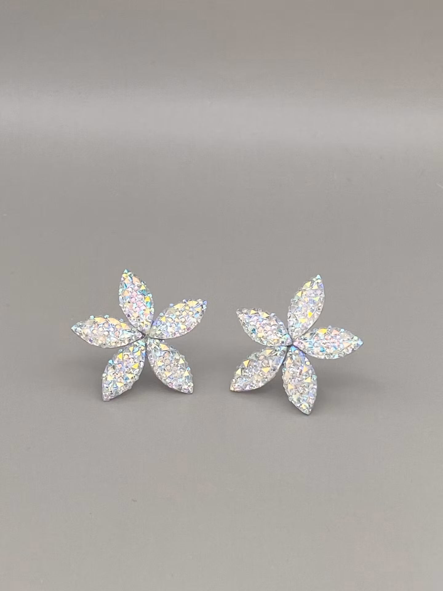 Lekfulla örhängen i flerfärgade silverglittriga tårformade blad format som en blomma