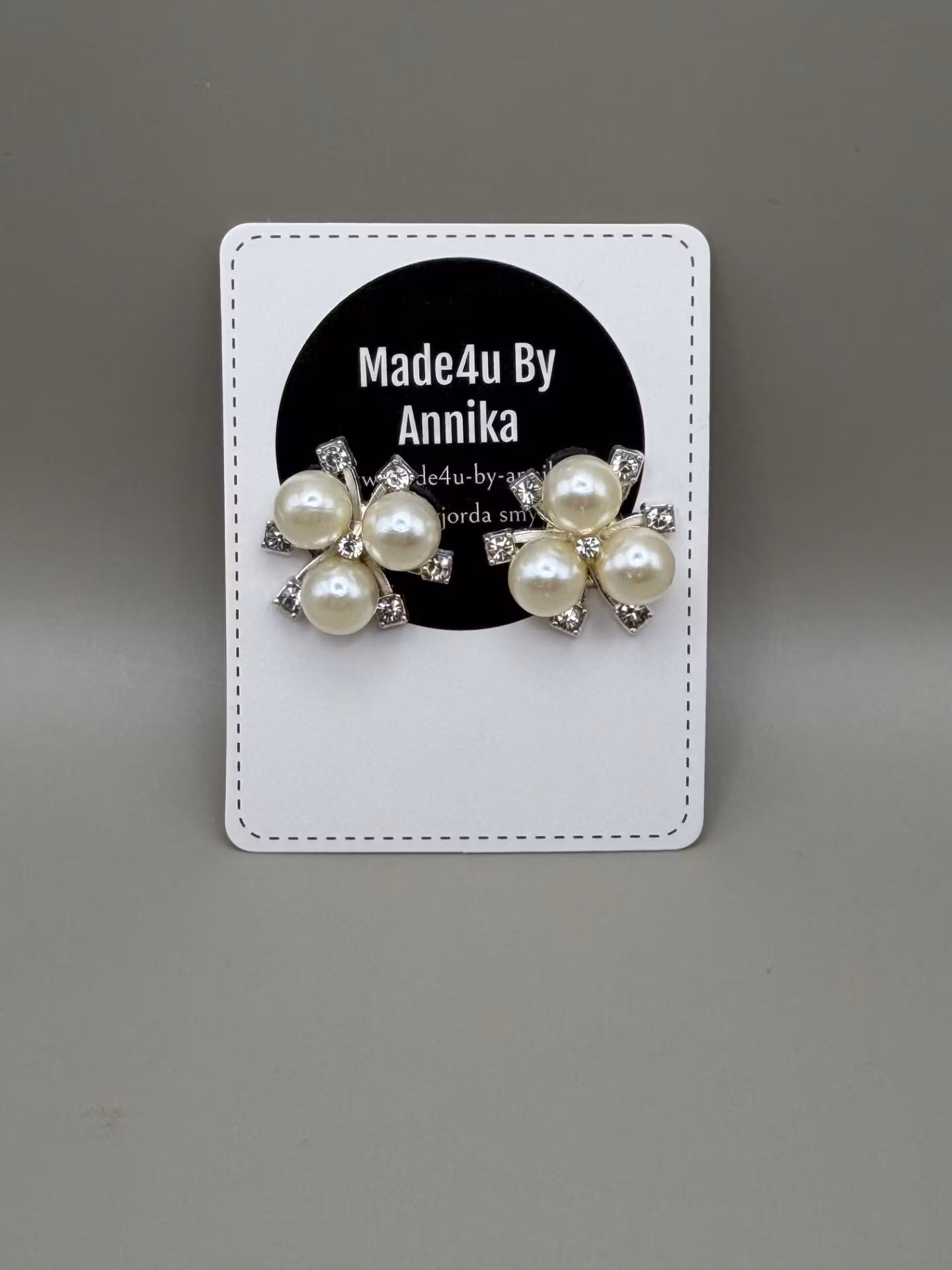 Vackra silverfärgade örhängen med tre benvita pärlor och strassdetaljer