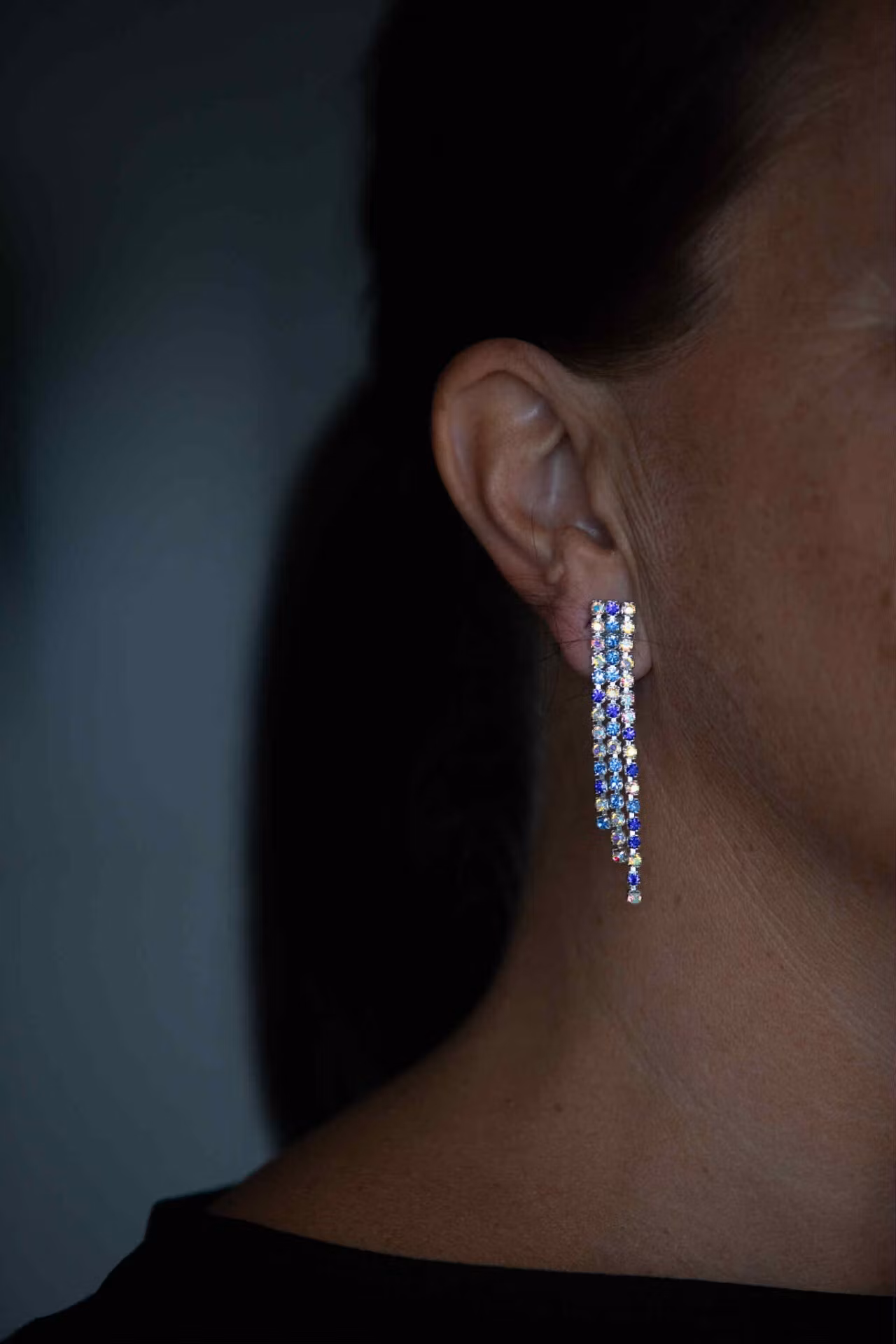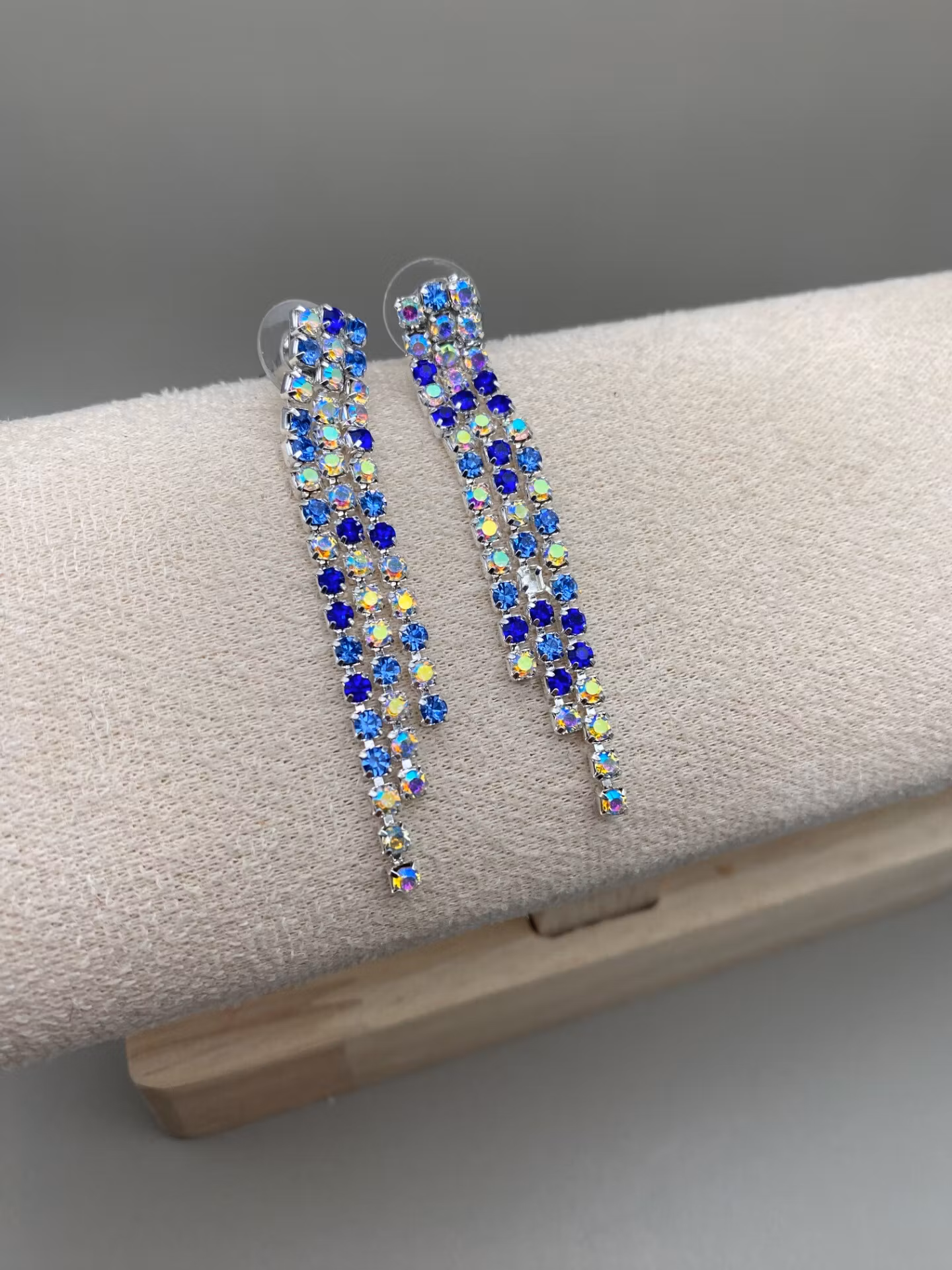 Vackra lekfulla färgglada strassörhängen i en härlig mix av blå nyanser.
