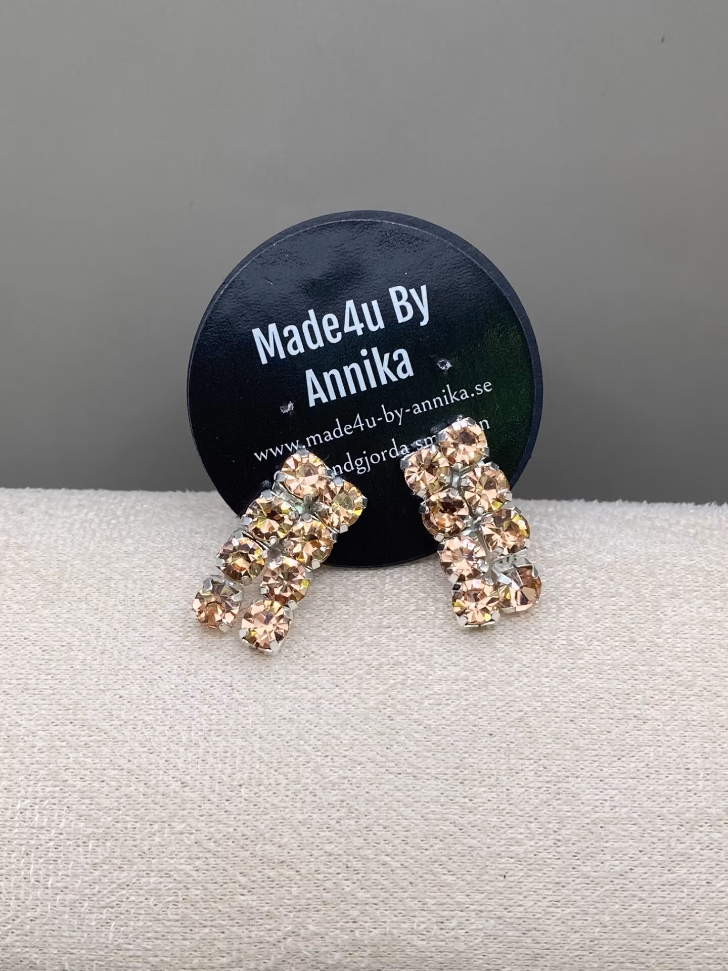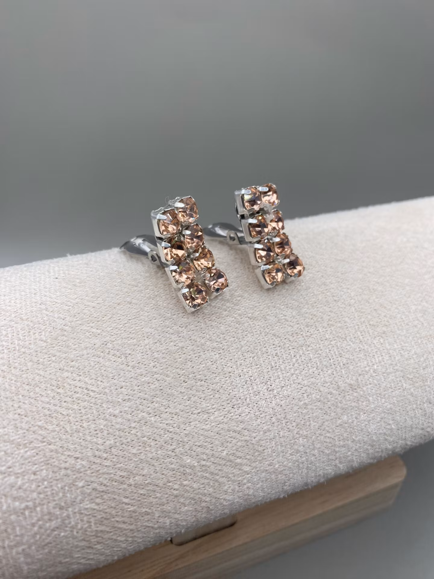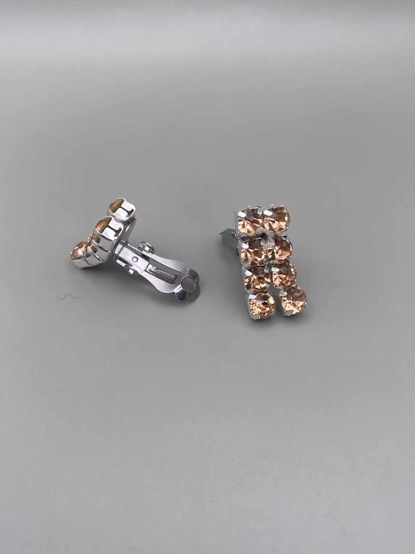 Vackra strassörhängen av två rader champagnefärgad strass. (Finns som både clips och stift)