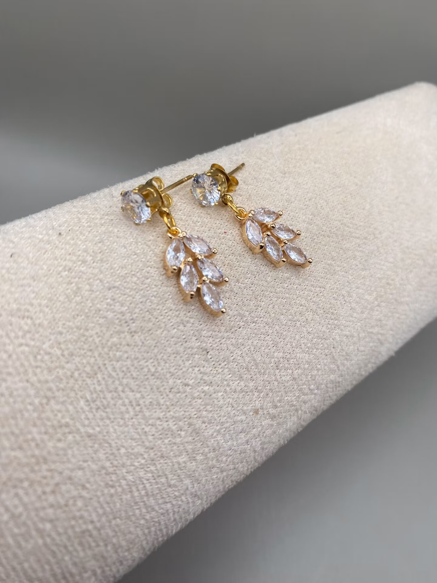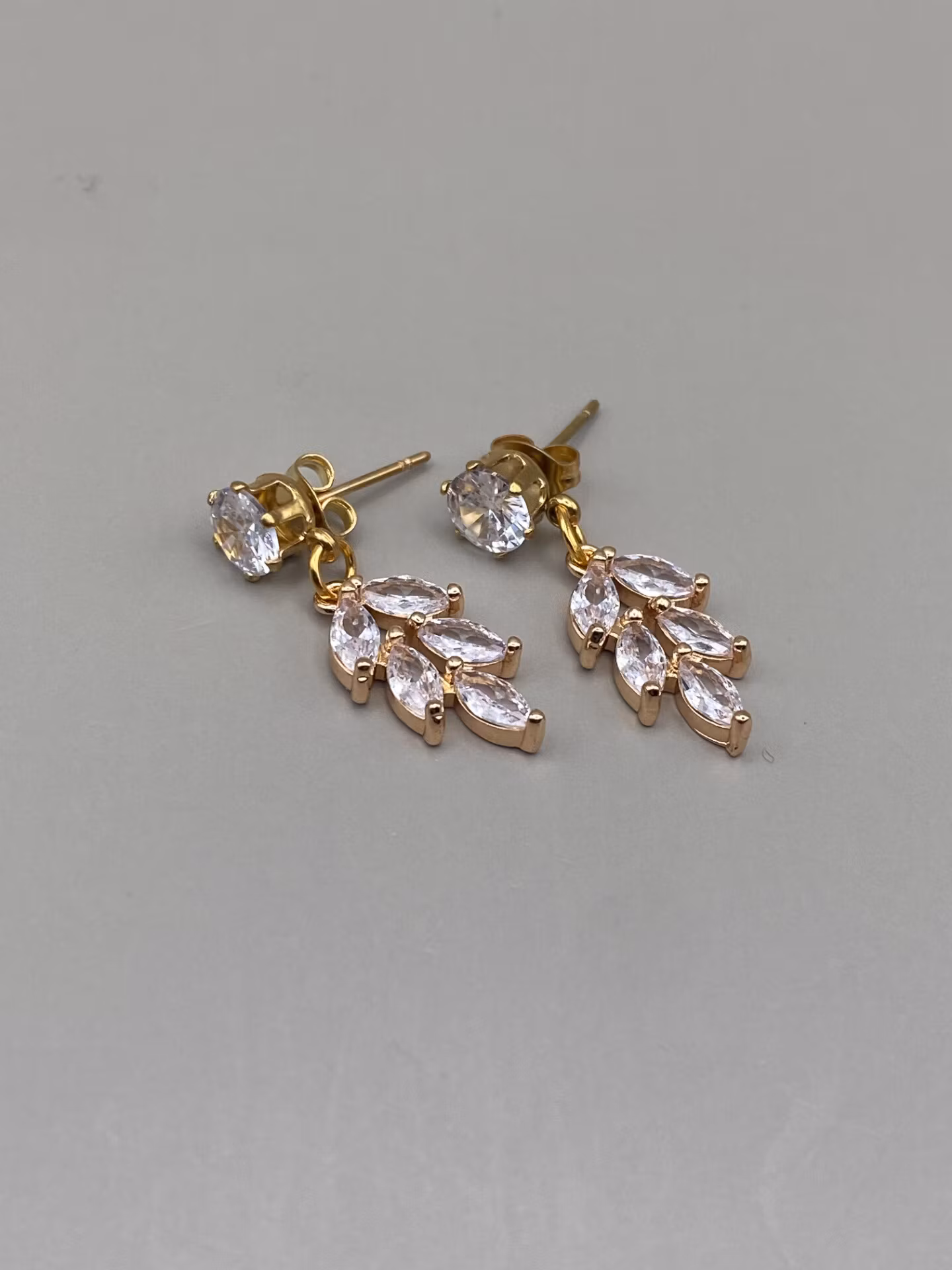 Vackra nätta örhängen med guldfärgad cubic zirconia och vacker lövformadberlock med cubic zirconia.