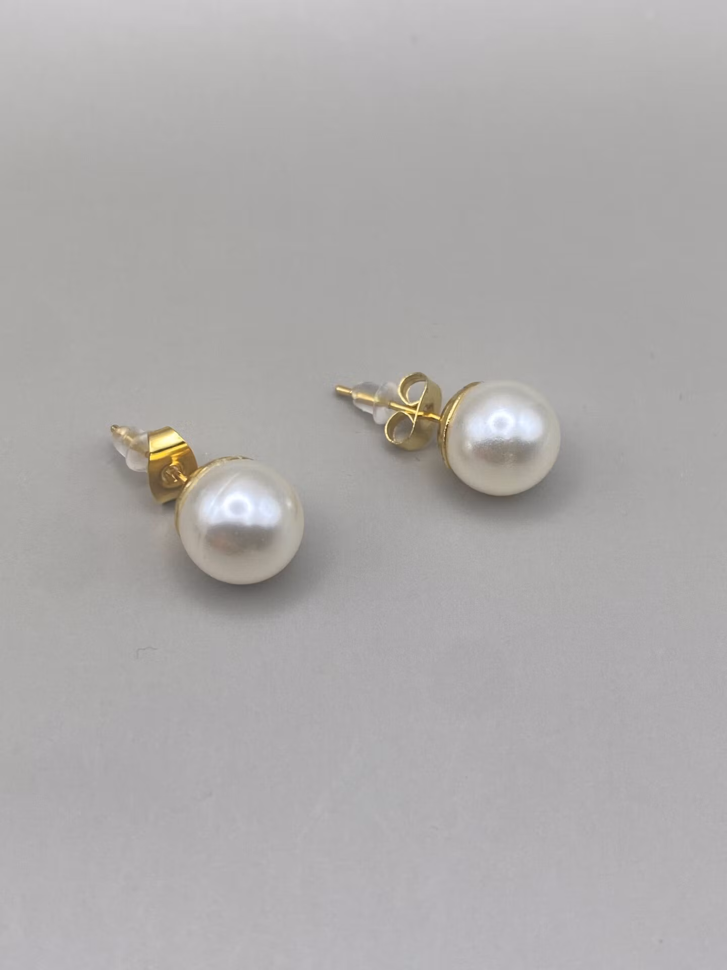 Vackra stilrena och klassiska örhängen med en högblank benvit pärla på guldfärgad grund.