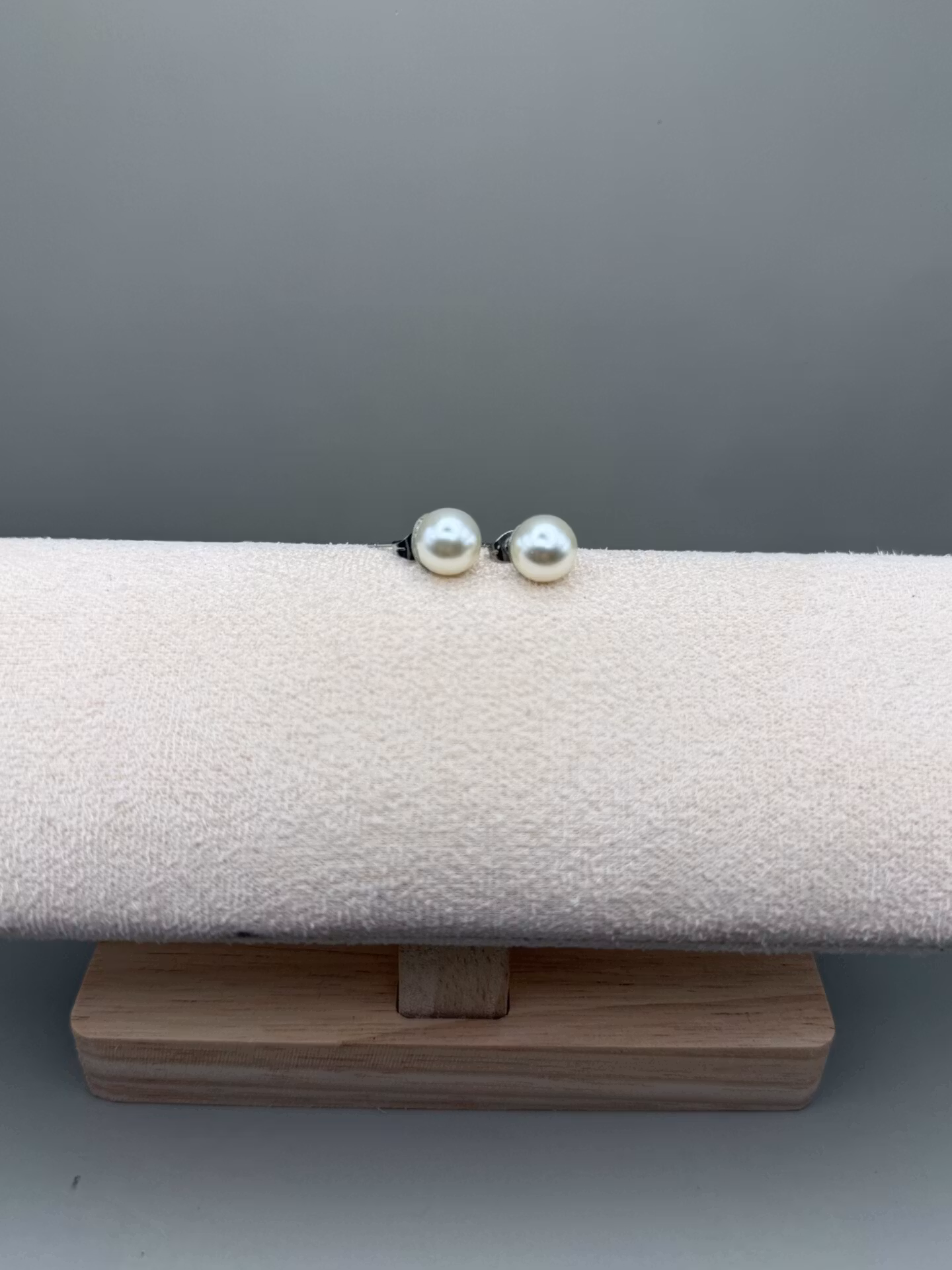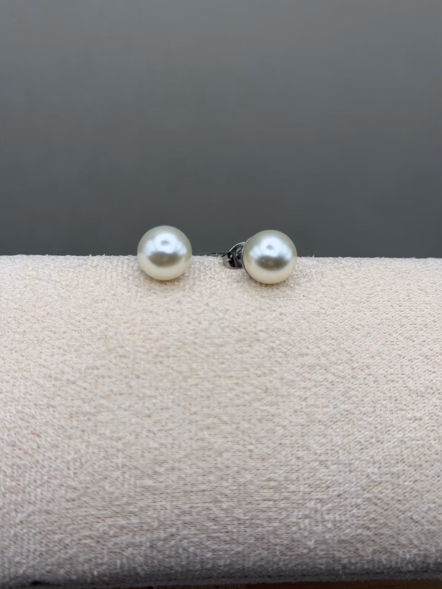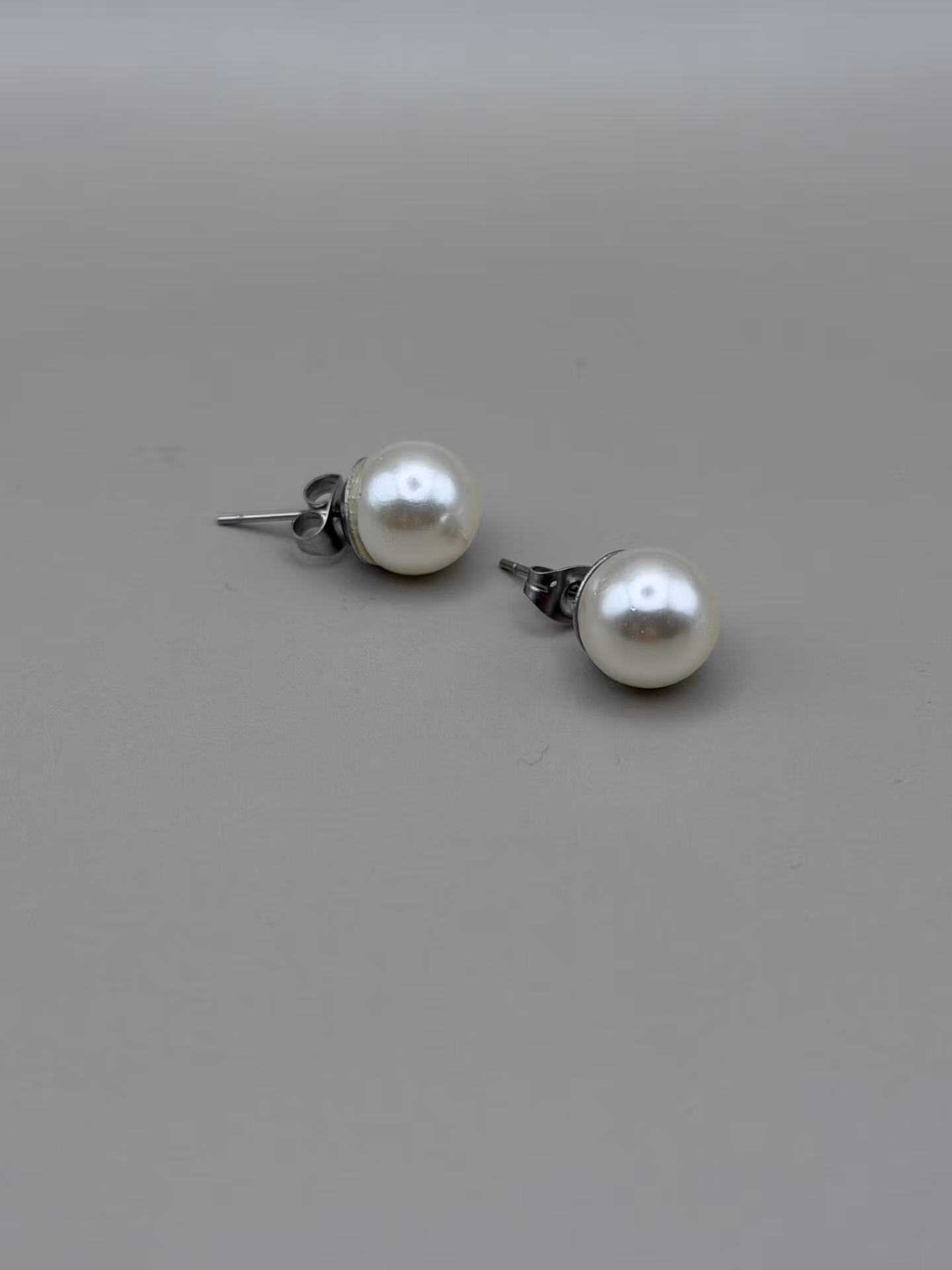 Vackra stilrena och klassiska örhängen med en högblank benvit pärla på silverfärgad grund.