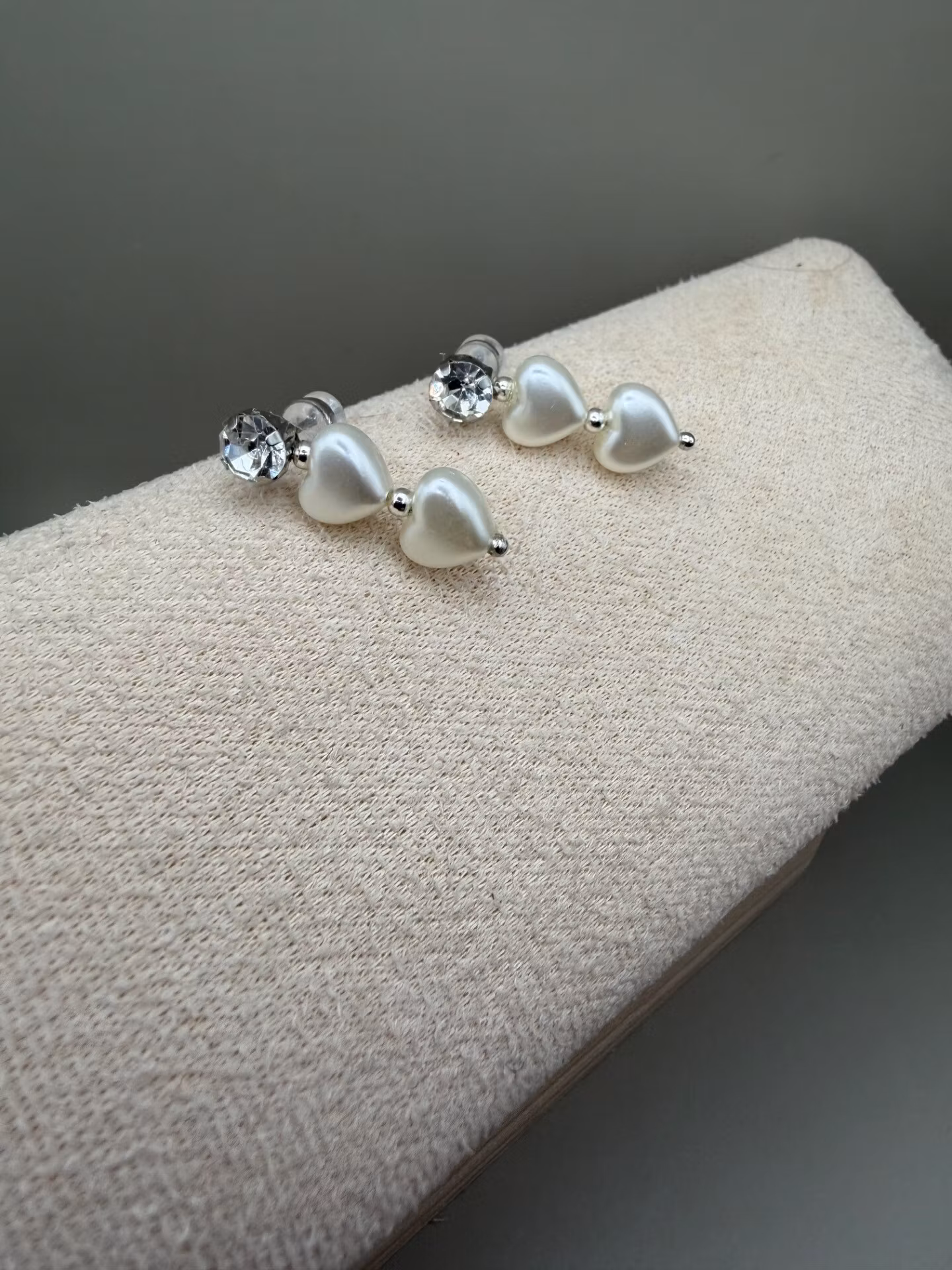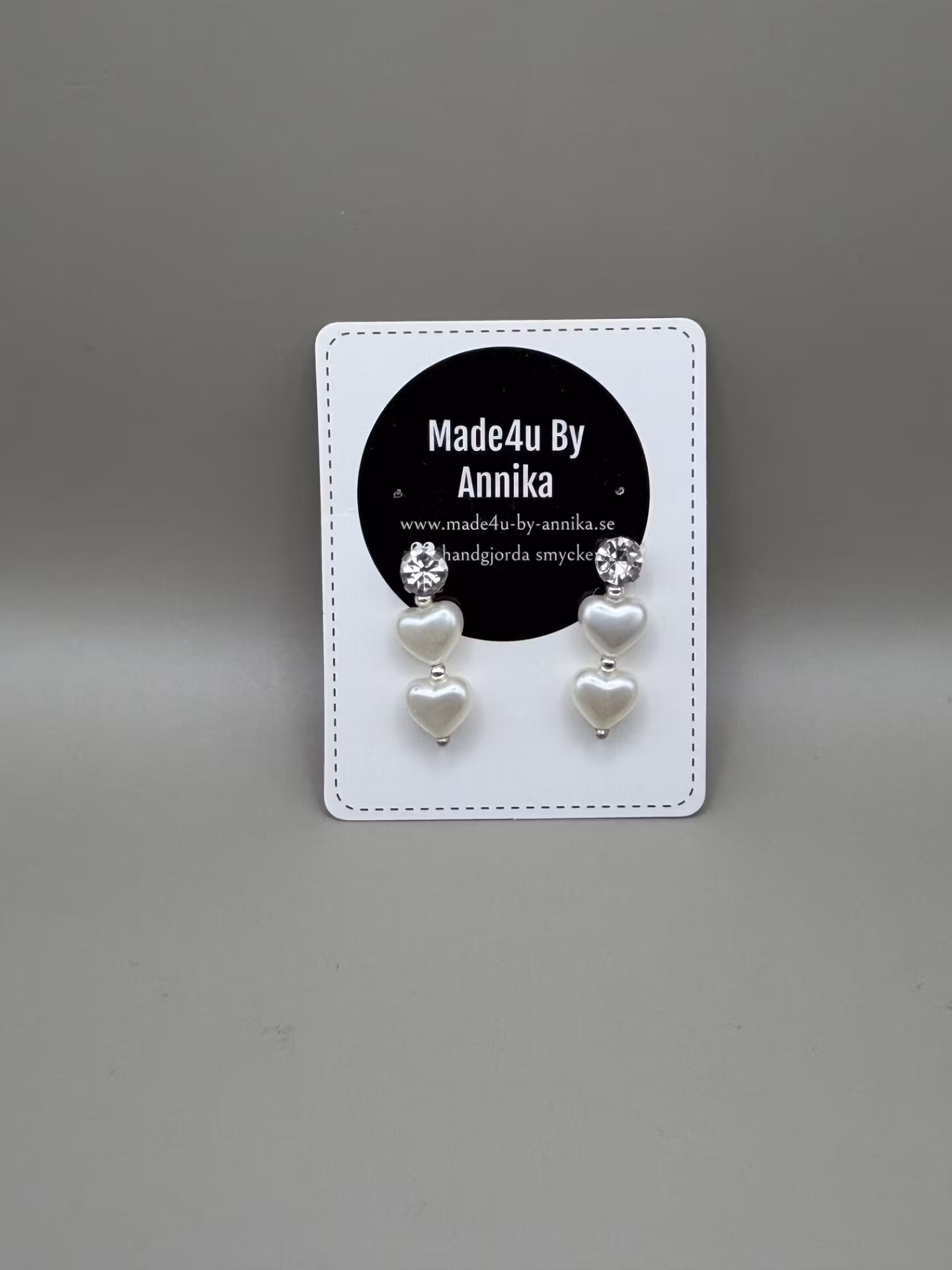 Söta och stilrena örhängen med vacker strass upptill och två små vita hjärtan nedtill