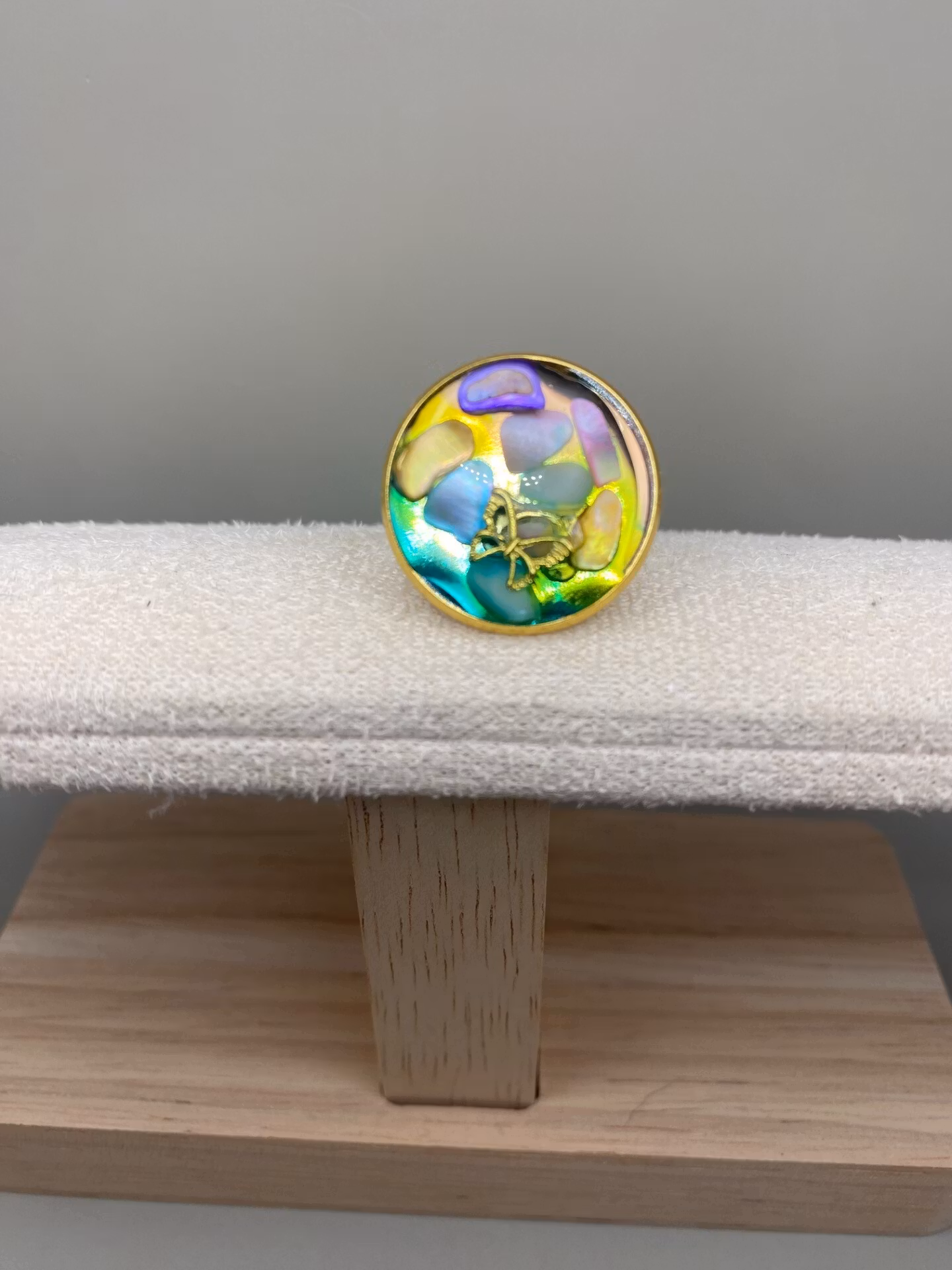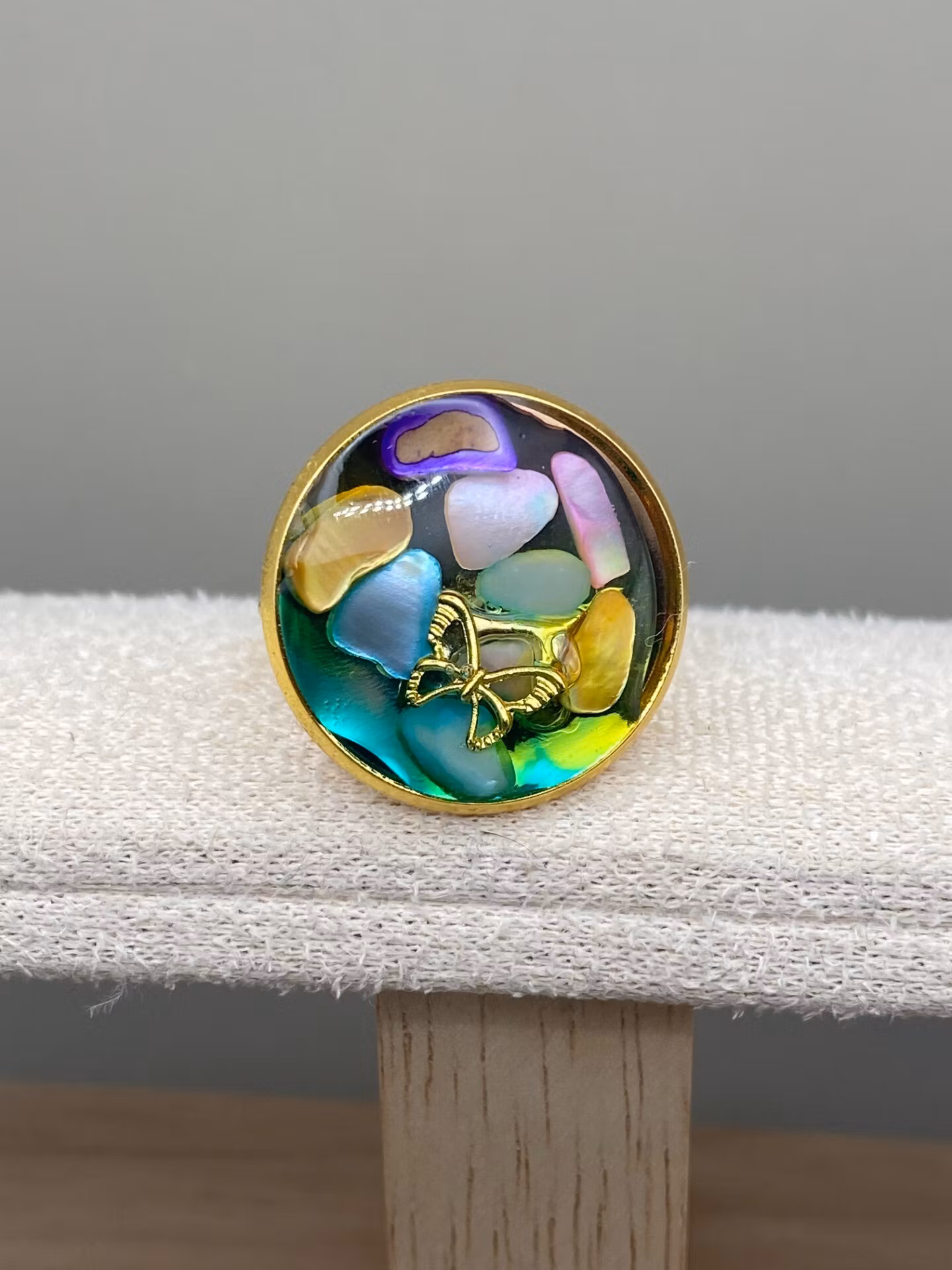 Lekfull ring med vaker berlock i härliga färger i kristallklar resin, gjuten för hand för att ge en unik och exklusiv finish.