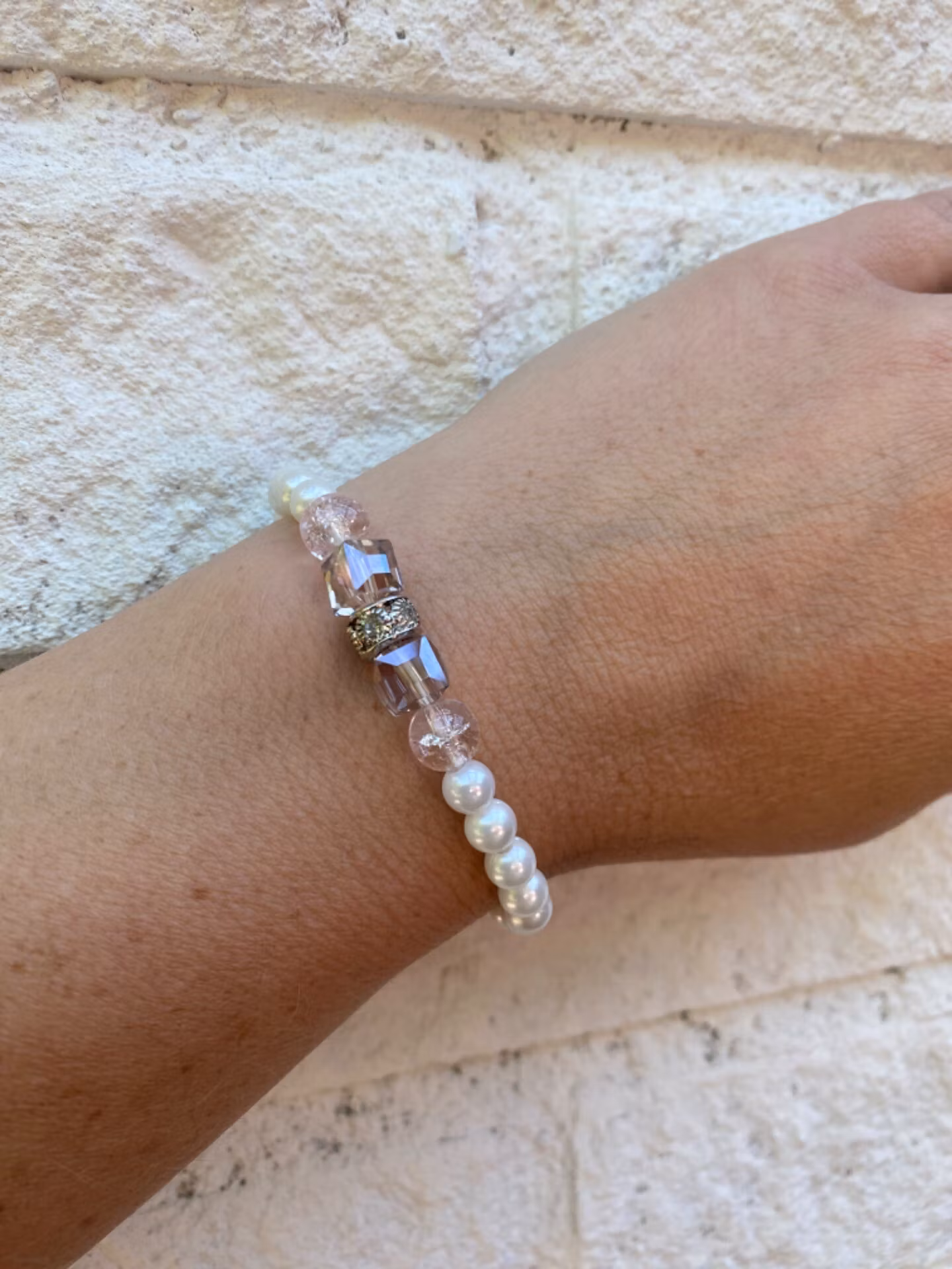 Vitt pärlarmband med glaspärlor och strassdetalj