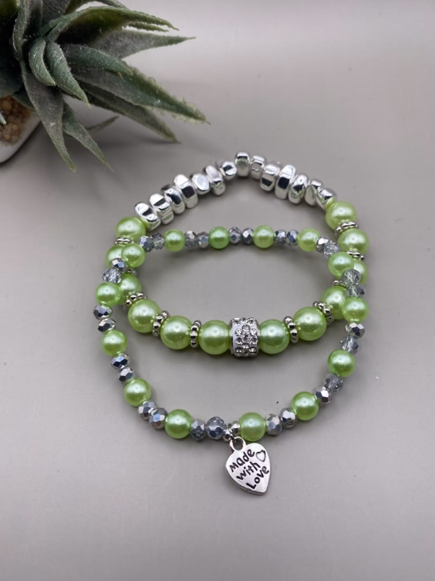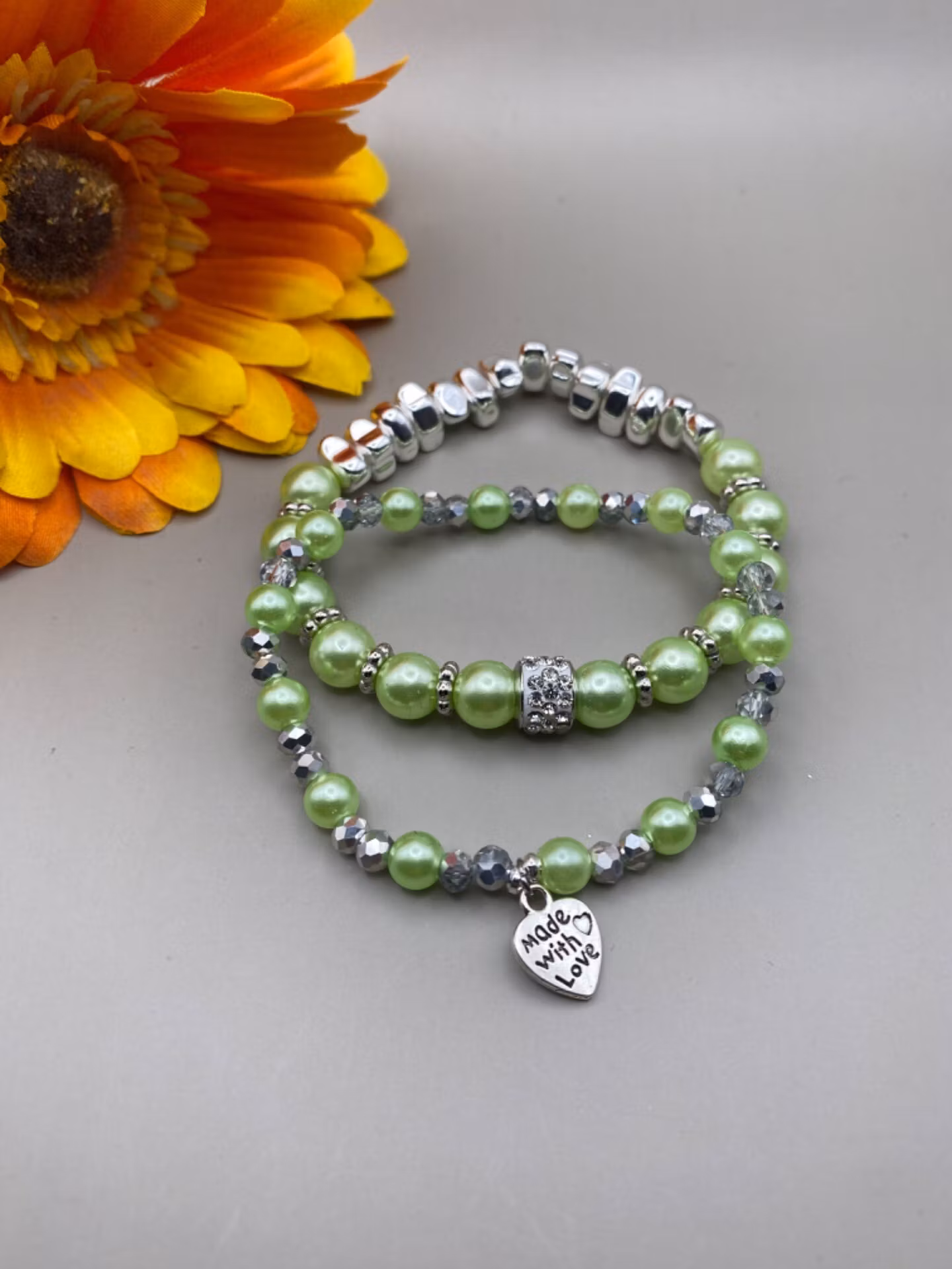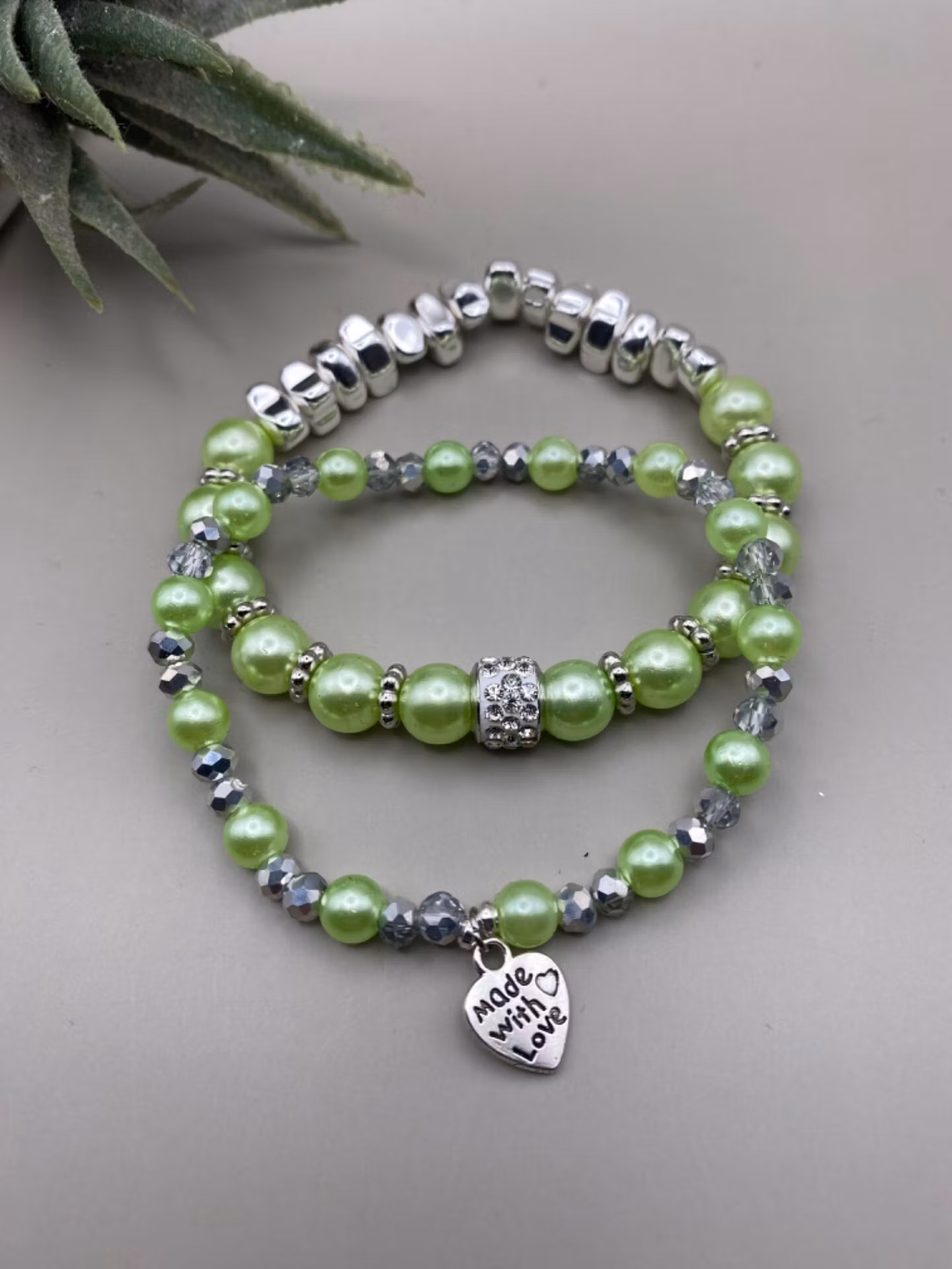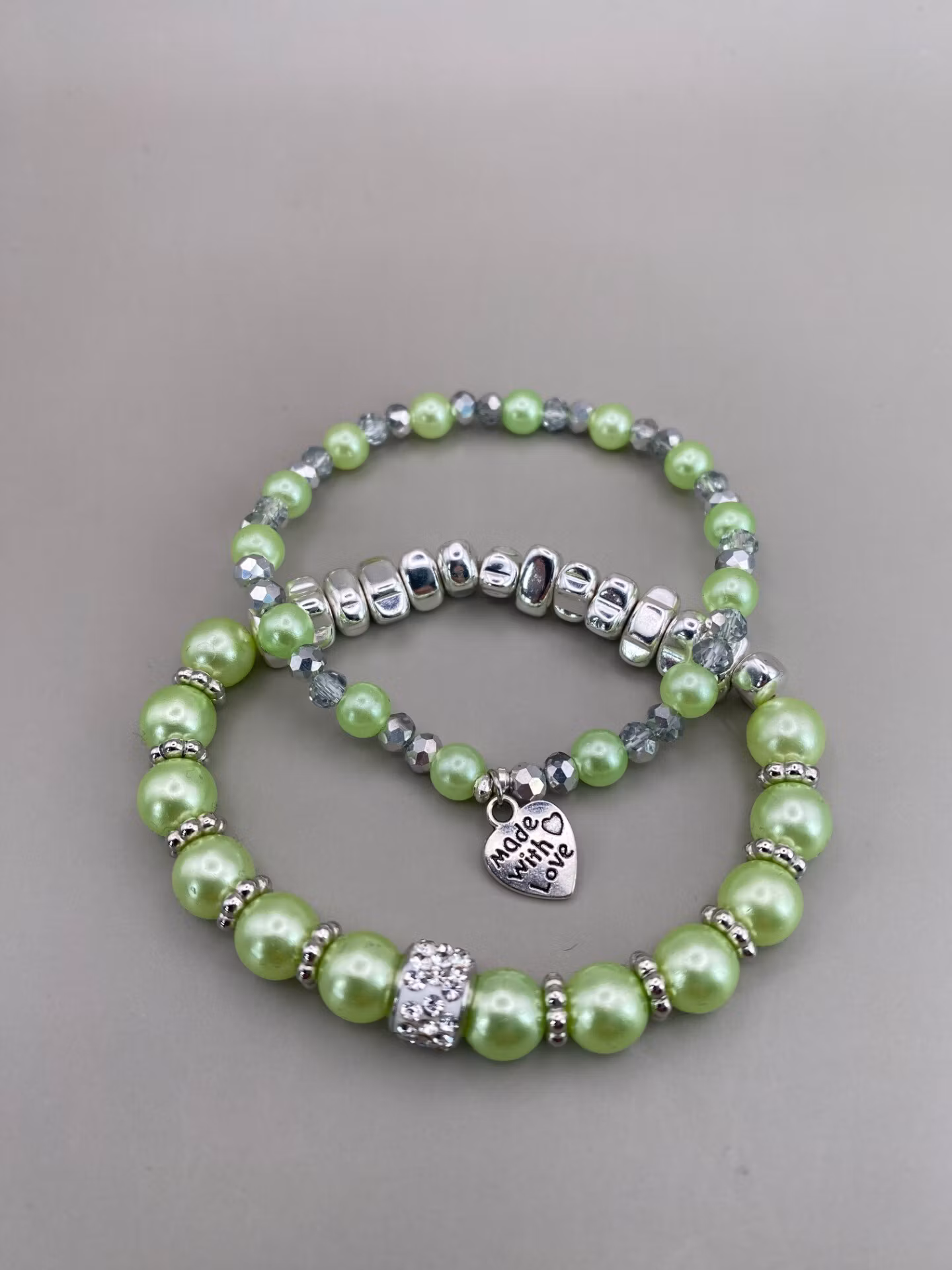 Settet består av Elegant no. 310 och Elegant no.311 som går att köpa separat för sig.Armband 1, Elegant no.311 Fint och elegant armband i limegrönt och silver.