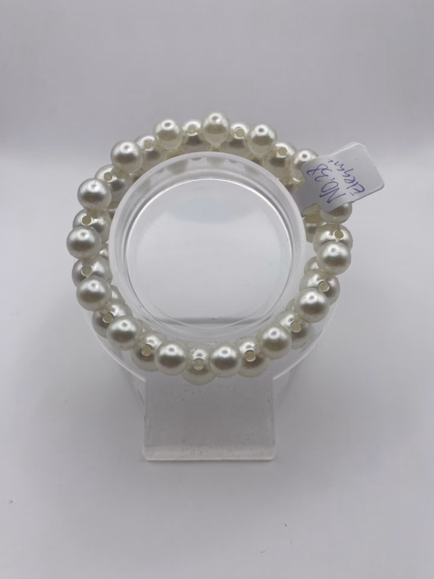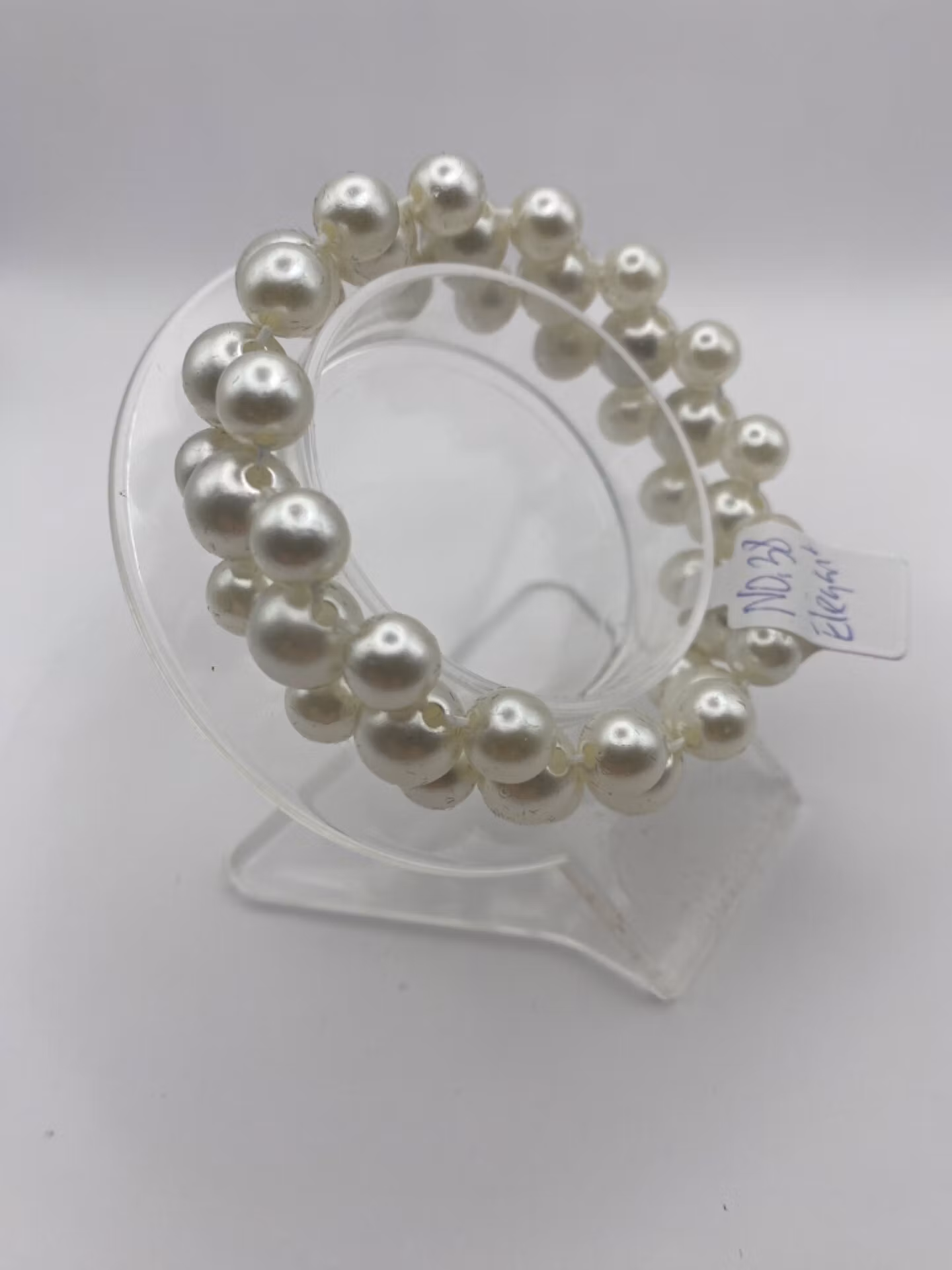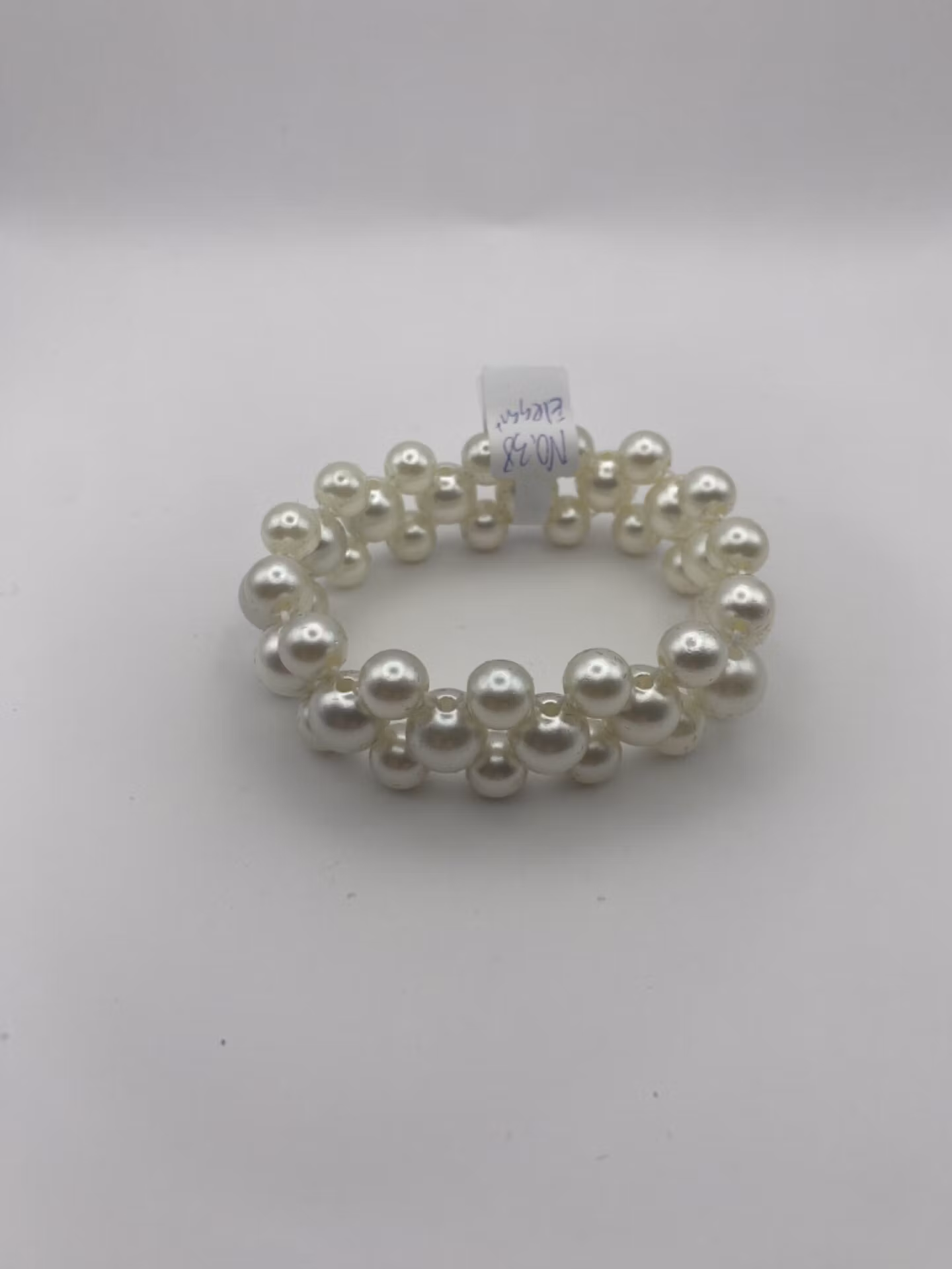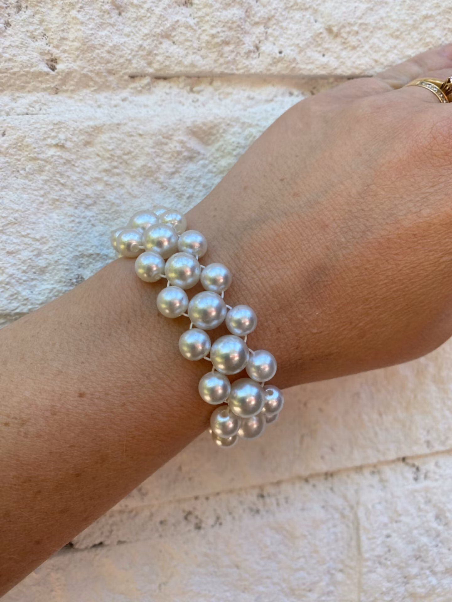 Armband med benvita pärlor, fint treradigt mönster. Perfekt till avslutning, bröllop eller bara till vardags