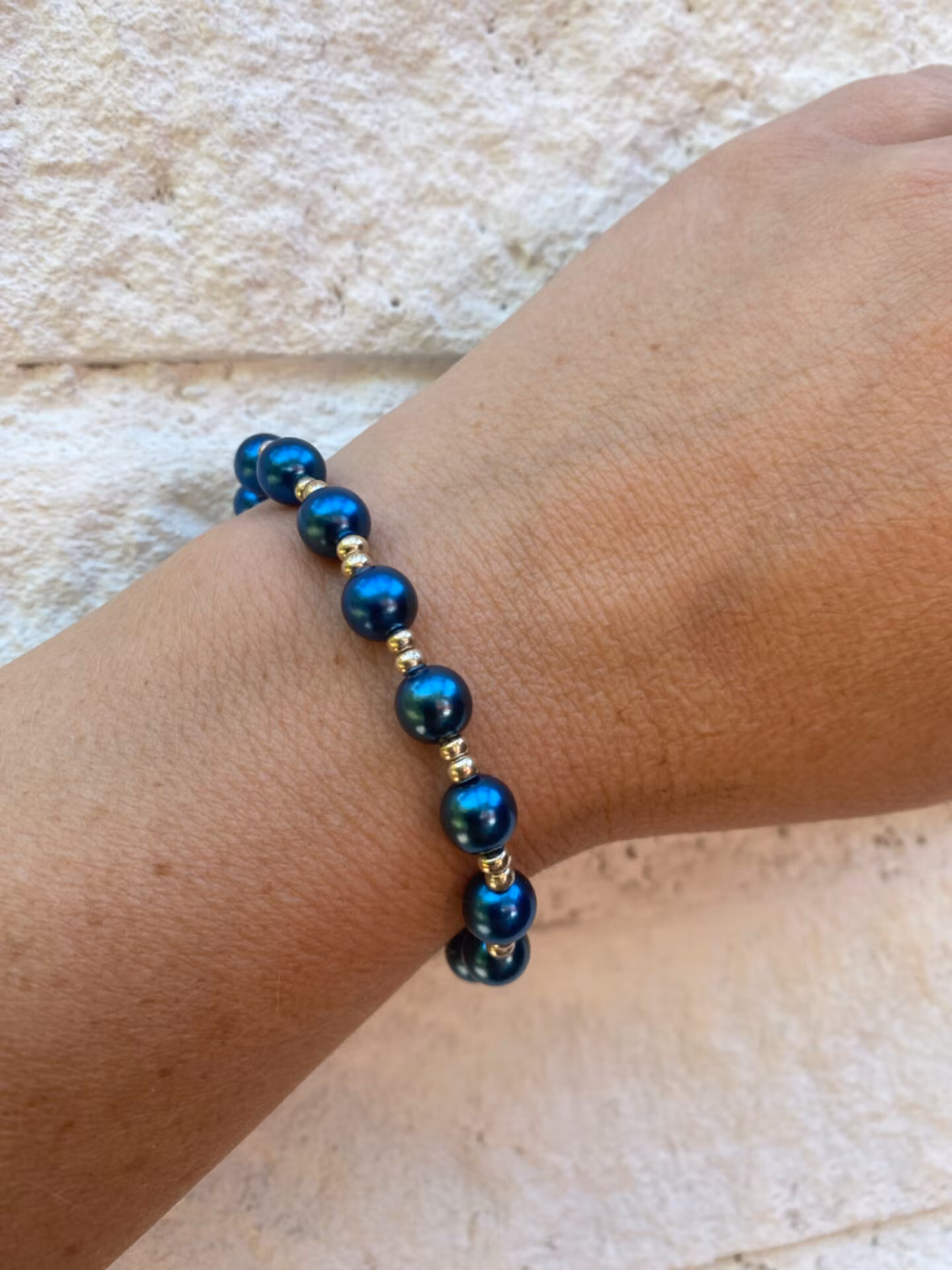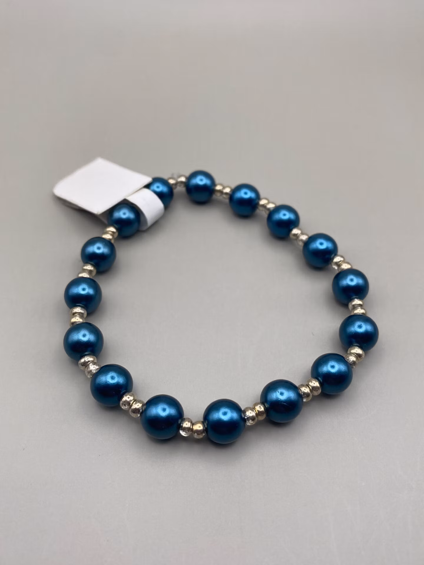Armband i snyggt koboltblå pärlor, varvat med silverfärgade pärlor
