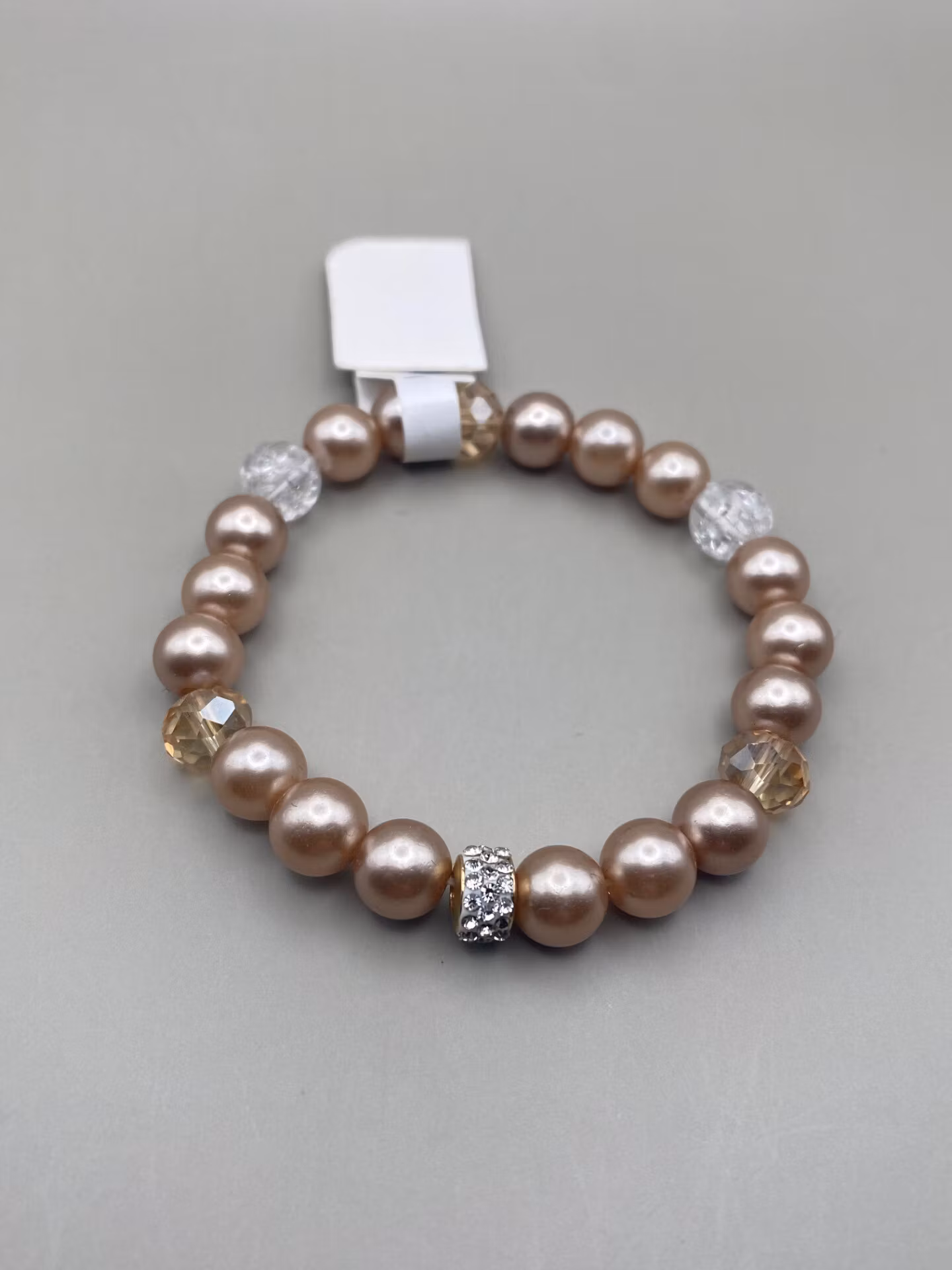 Armband i champagnefärgade pärlor med glaspärlor och strassdetalj