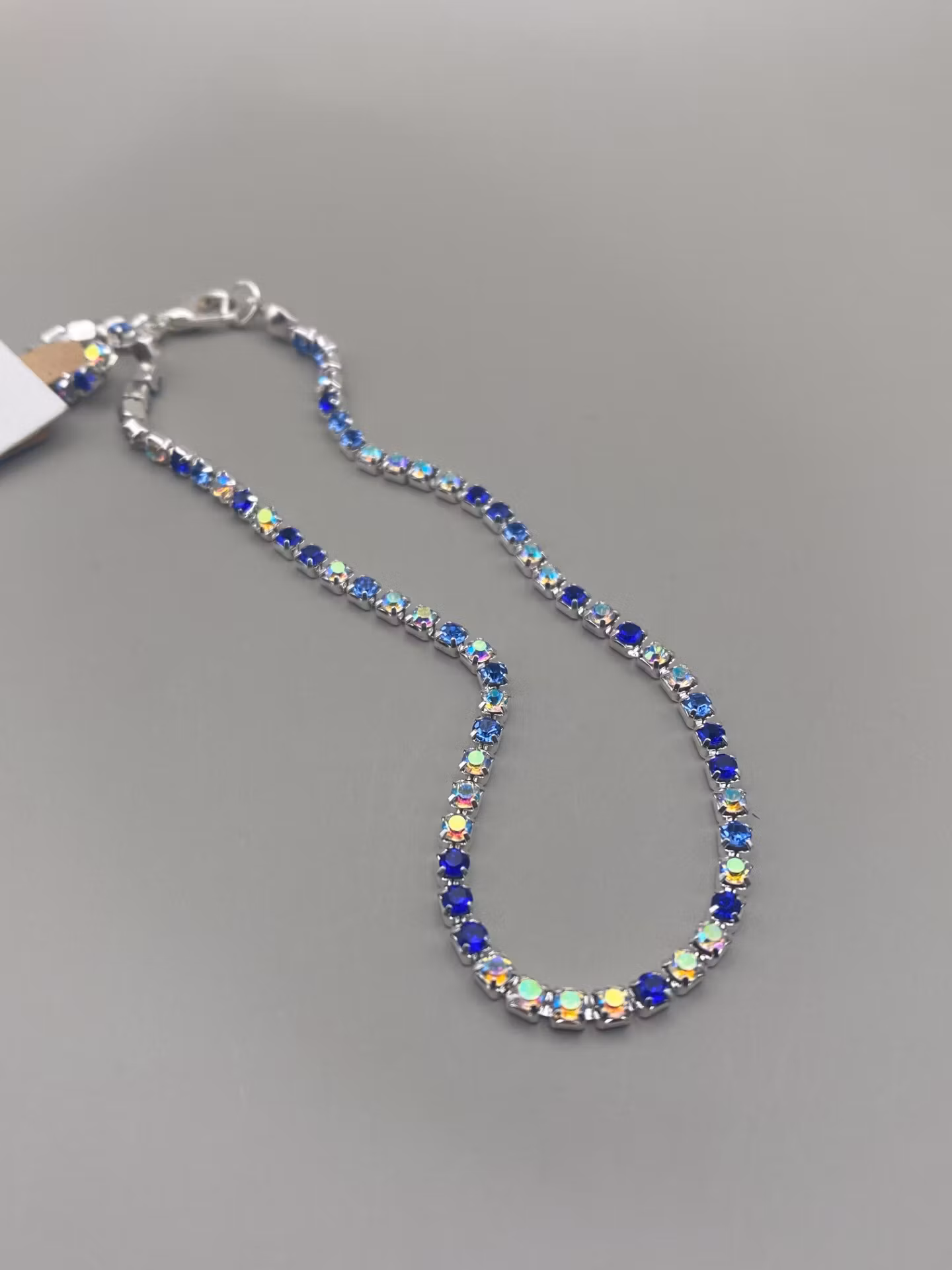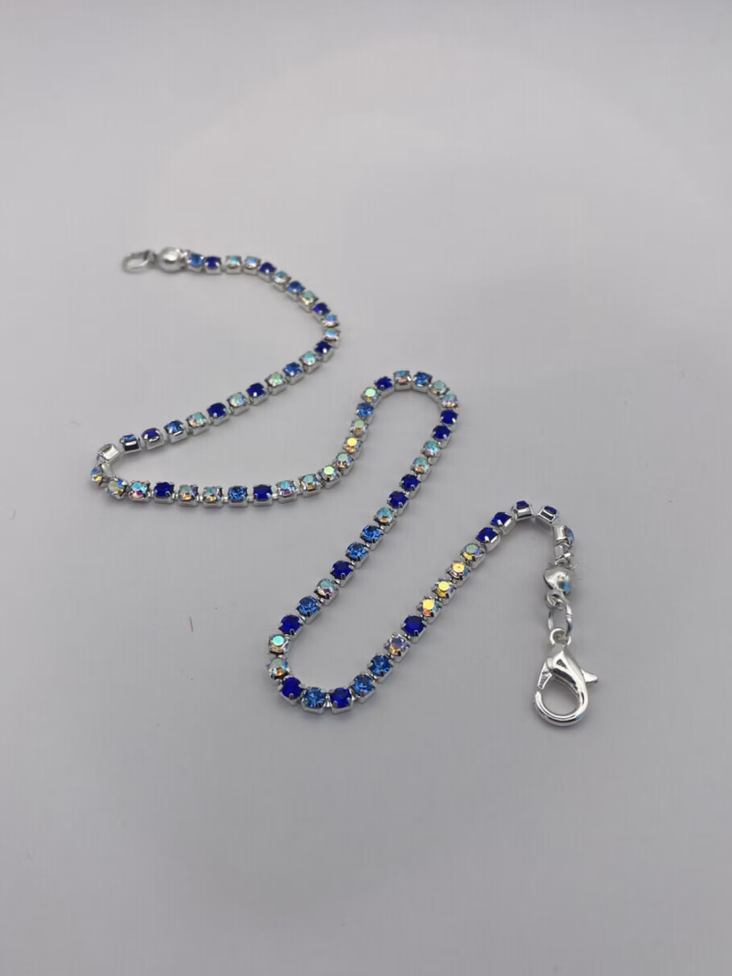 Snygg fotlänk i ”sparkling” strass, fin mix av blå nyanser