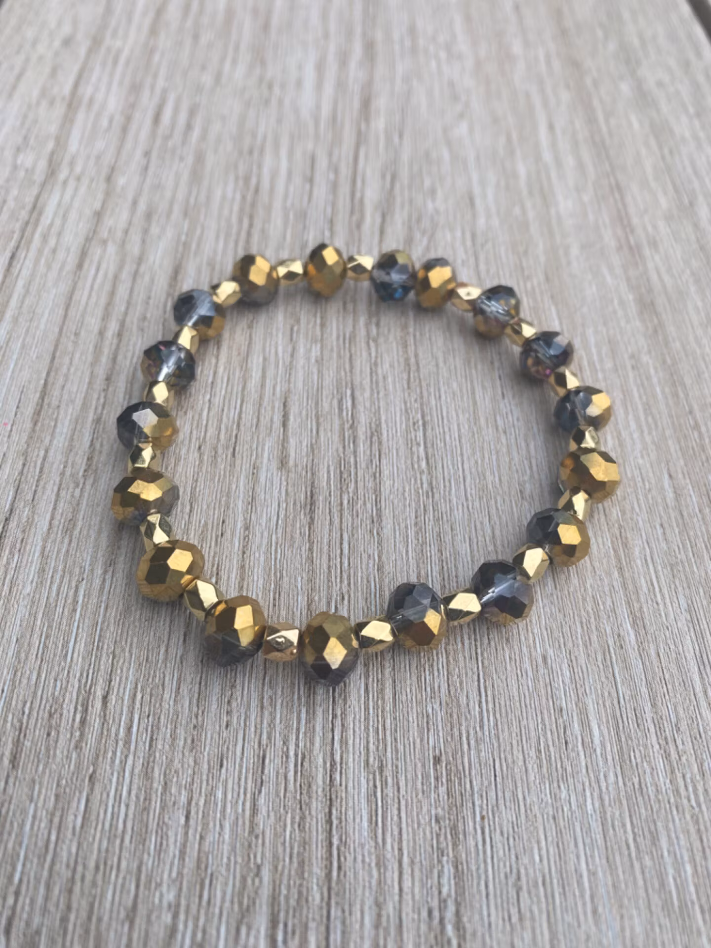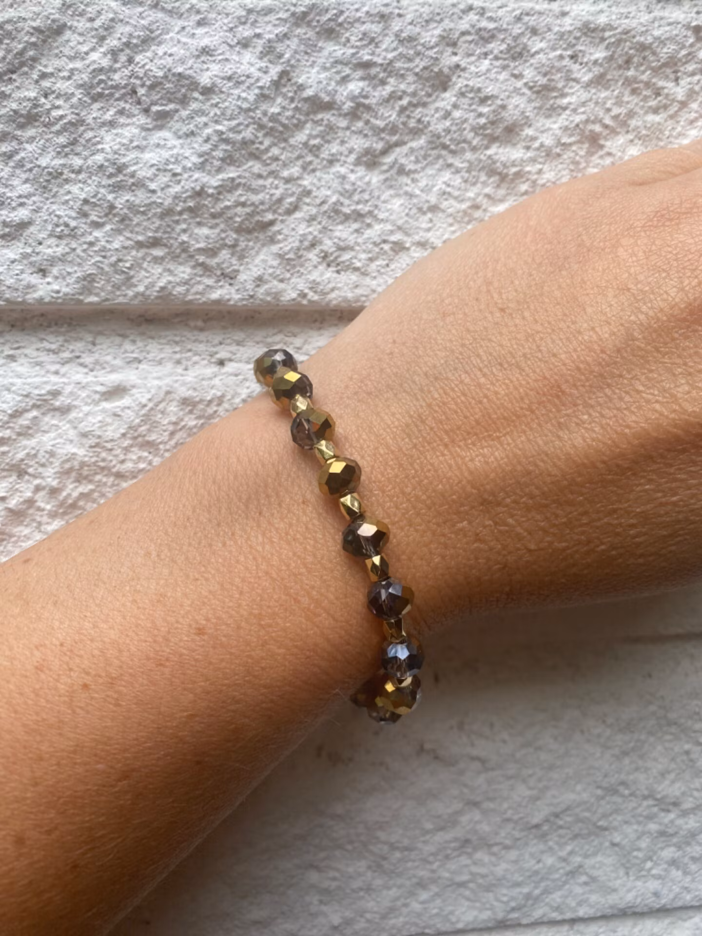 Vackert armband i mörkare guldfärgade glaspärlor varvat med guldfärgade pärlor. Skimrar och glänser vackert på armbenPärlor 6mm, 4mmVisas produkten "Tillfälligt