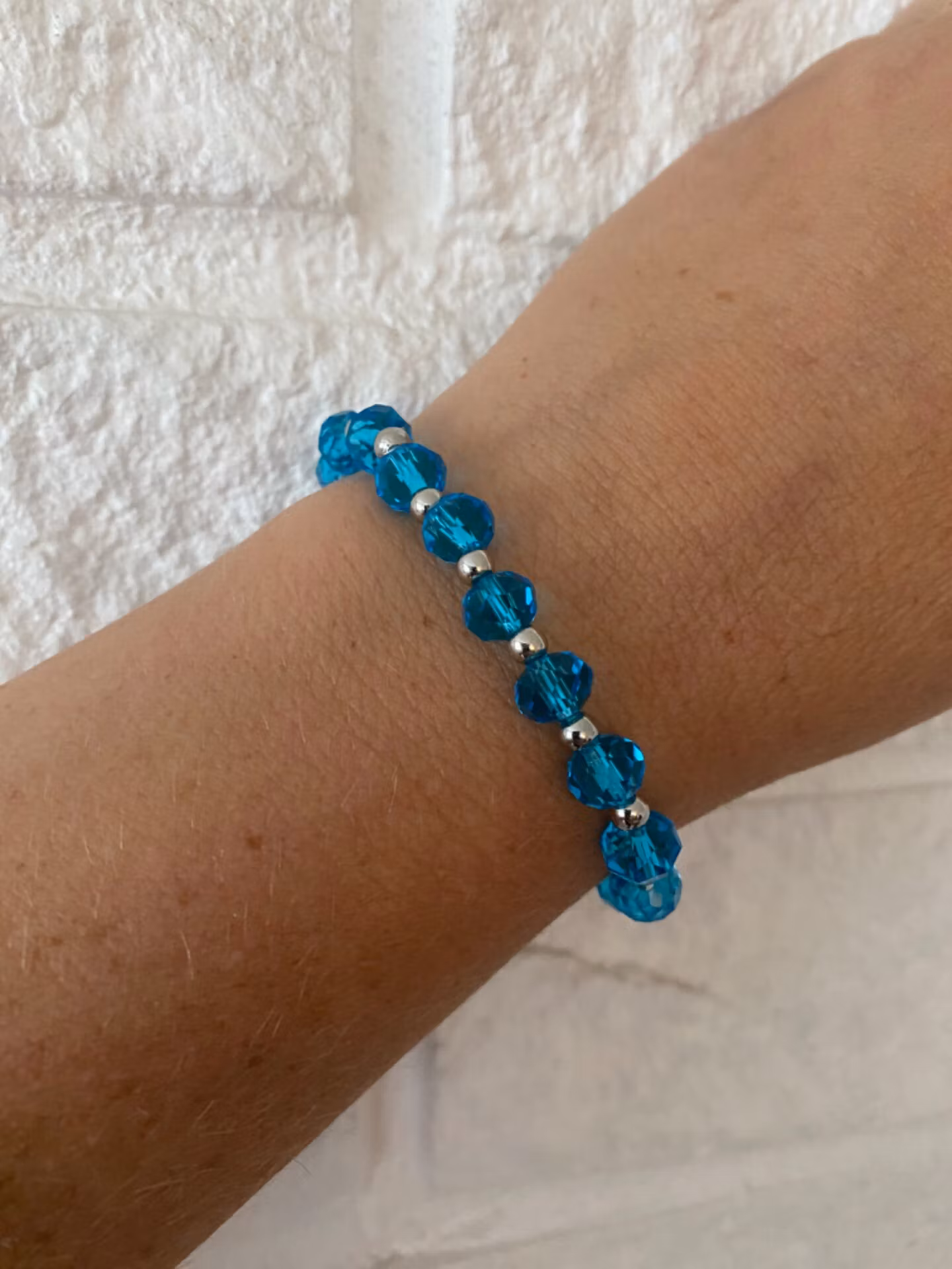Armband i lyxigt turkosa glaspärlor varvat med silverfärgade små pärlorPärlor 8mmVisas produkten "Tillfälligt slut" efter att du lagt den i din kundkorg, betyde