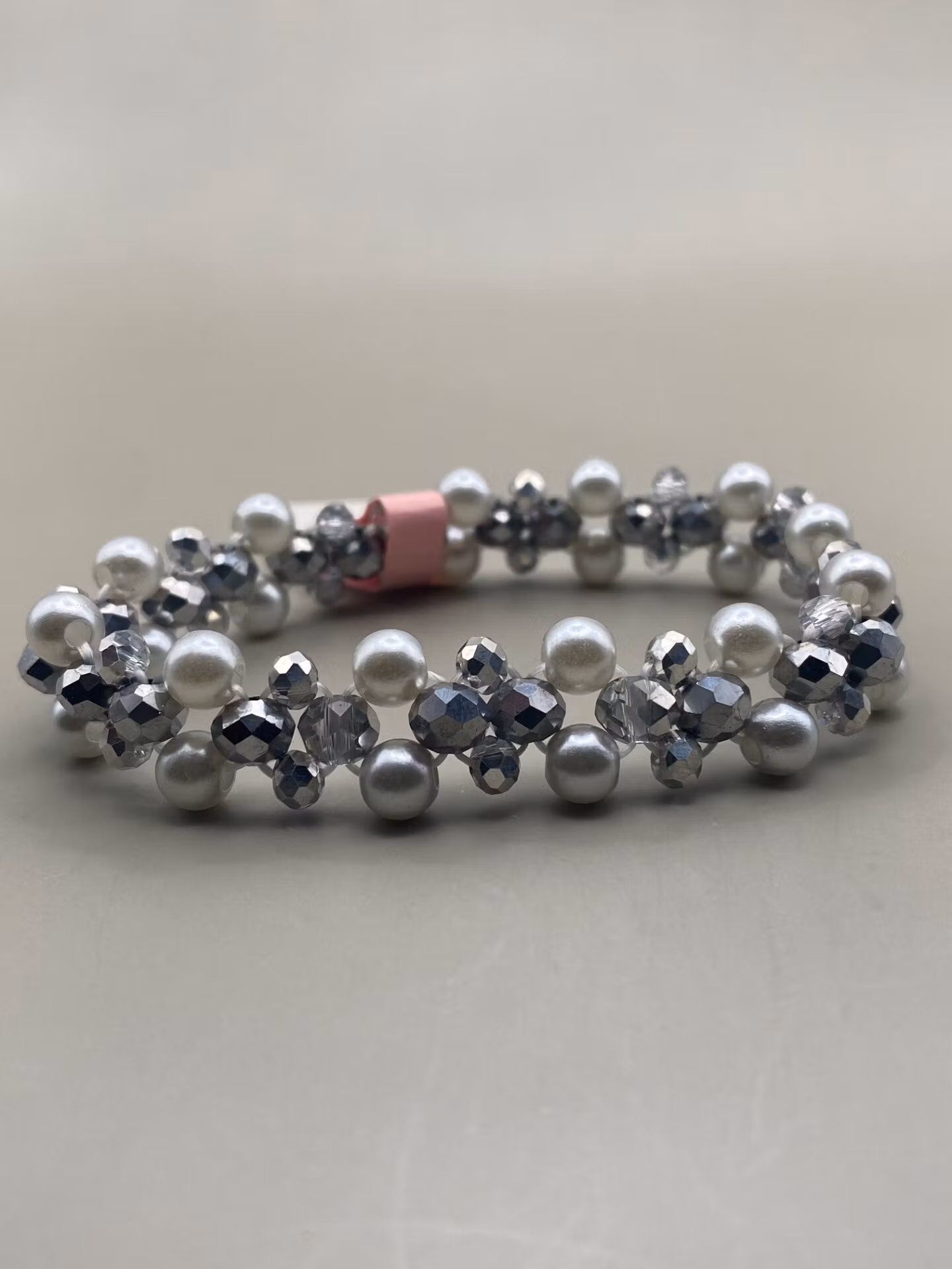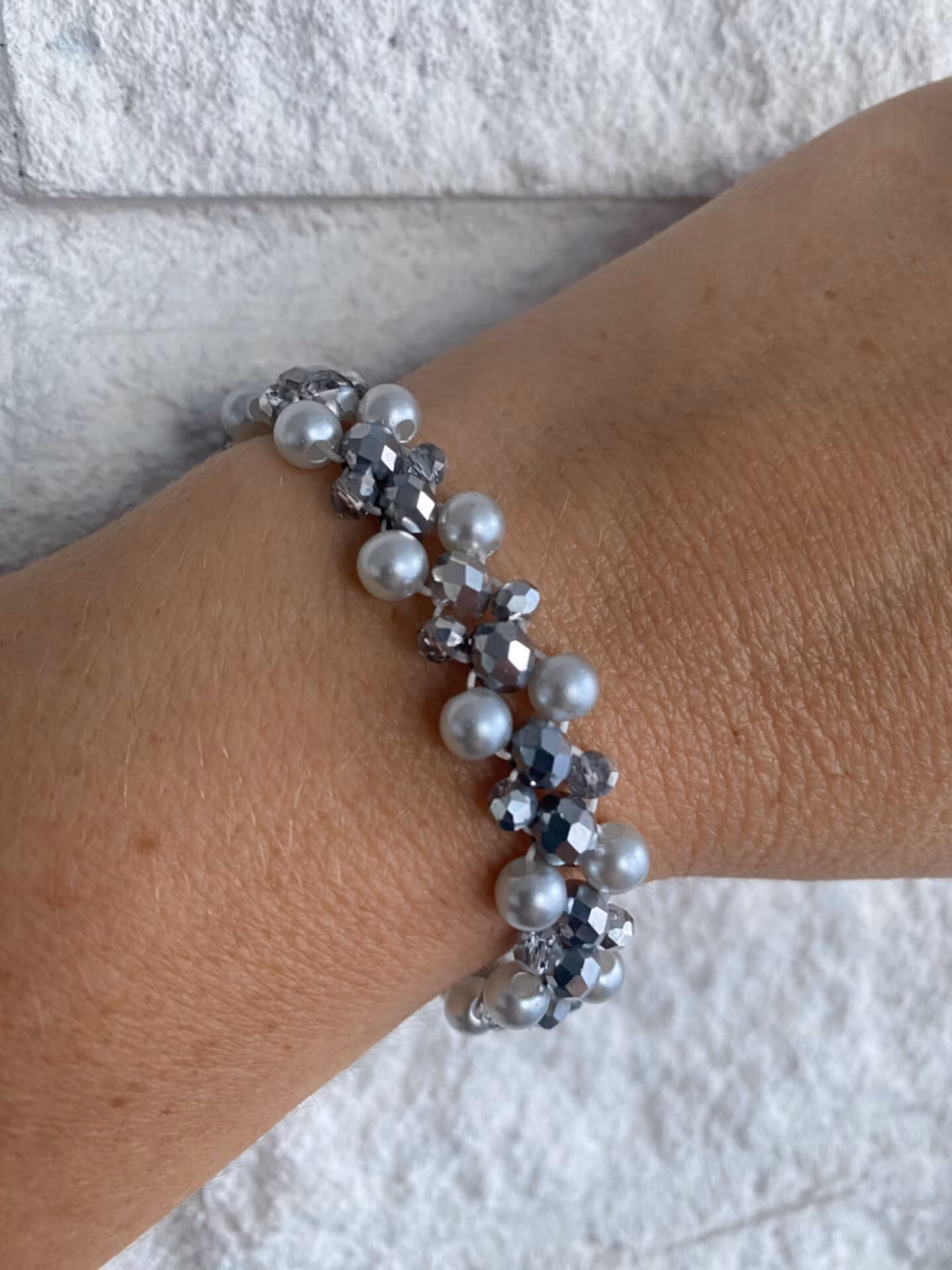Stiligt brett armband i vackert mönster av silvergrå glaspärlor. Skimrar otroligt vackert på armenPärlor 6mm, 4mmVisas produkten "Tillfälligt slut" efter att du