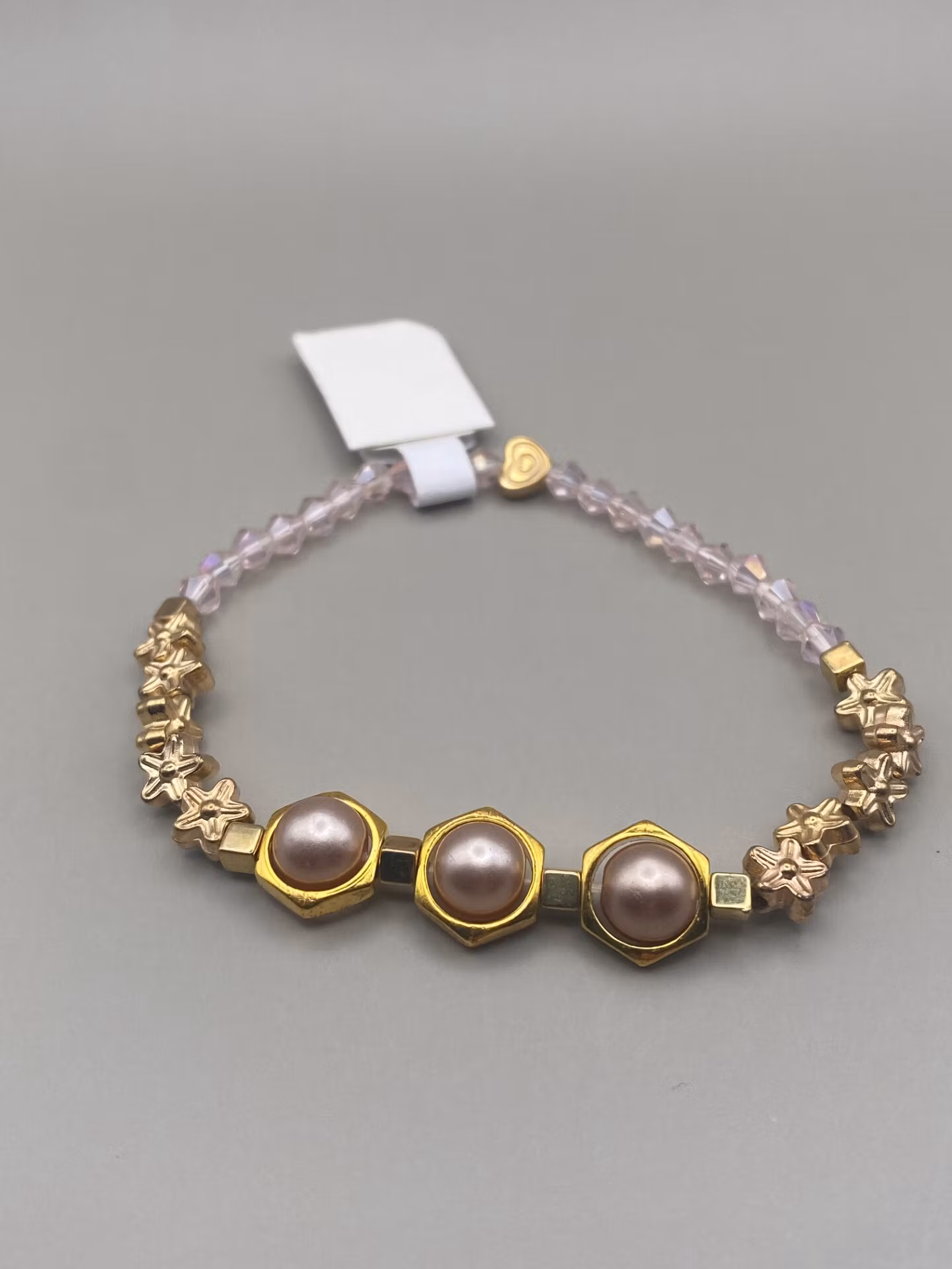 Armband med guldfärgade detaljer bla stjärnor och champagnefärgade pärlor