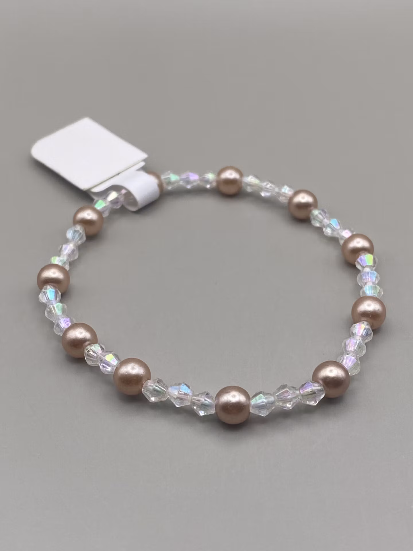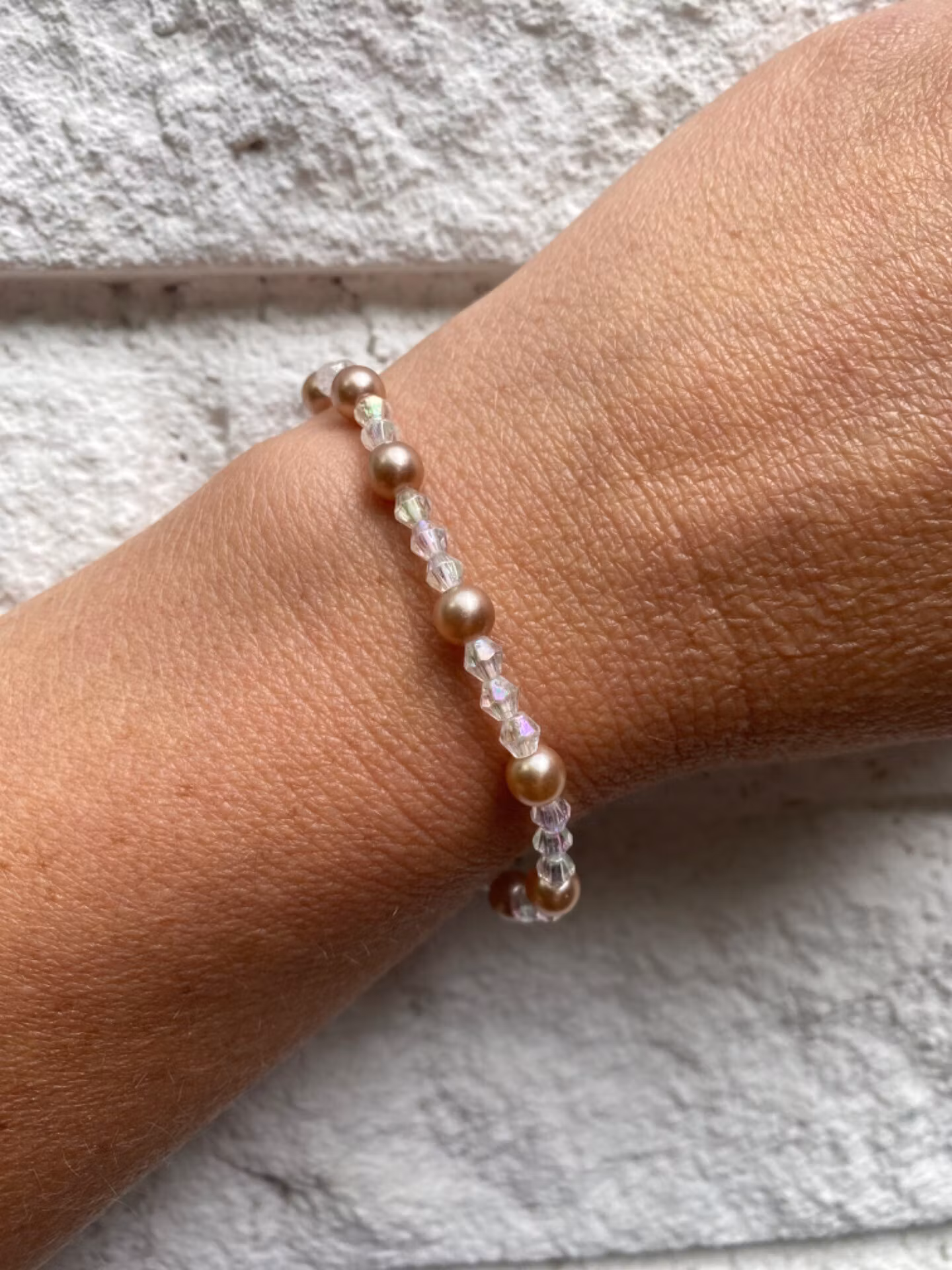 Armband av mindre silvergrå pärlor varvat med små vita genomskinliga glaspärlorPärlor 4mm, 6mm