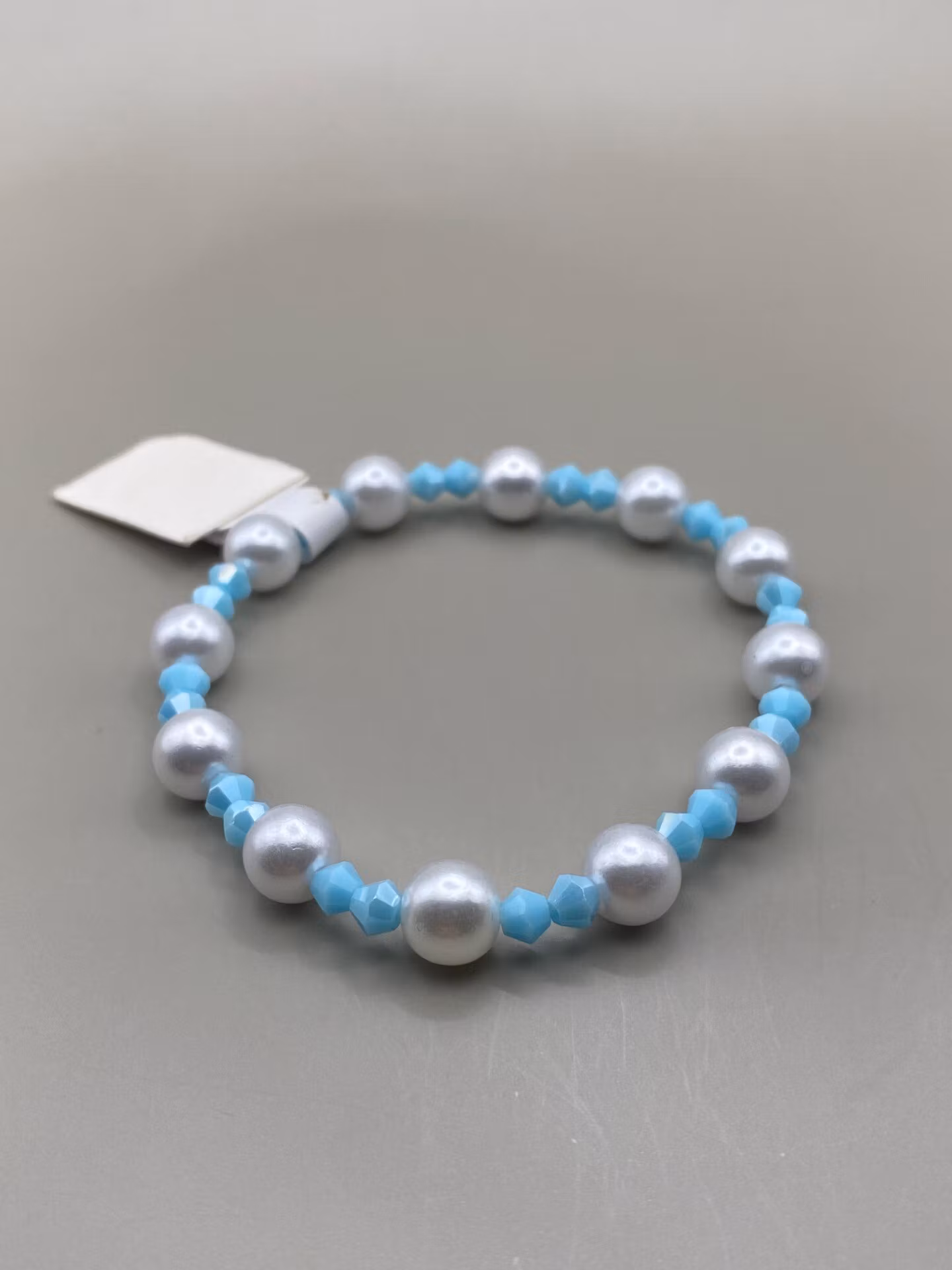 Armband i fint mönster av vita pärlor varvat med små turkosfärgade glaspärlorPärlor 8mm, 4mmVisas produkten "Tillfälligt slut" efter att du lagt den i din kundk