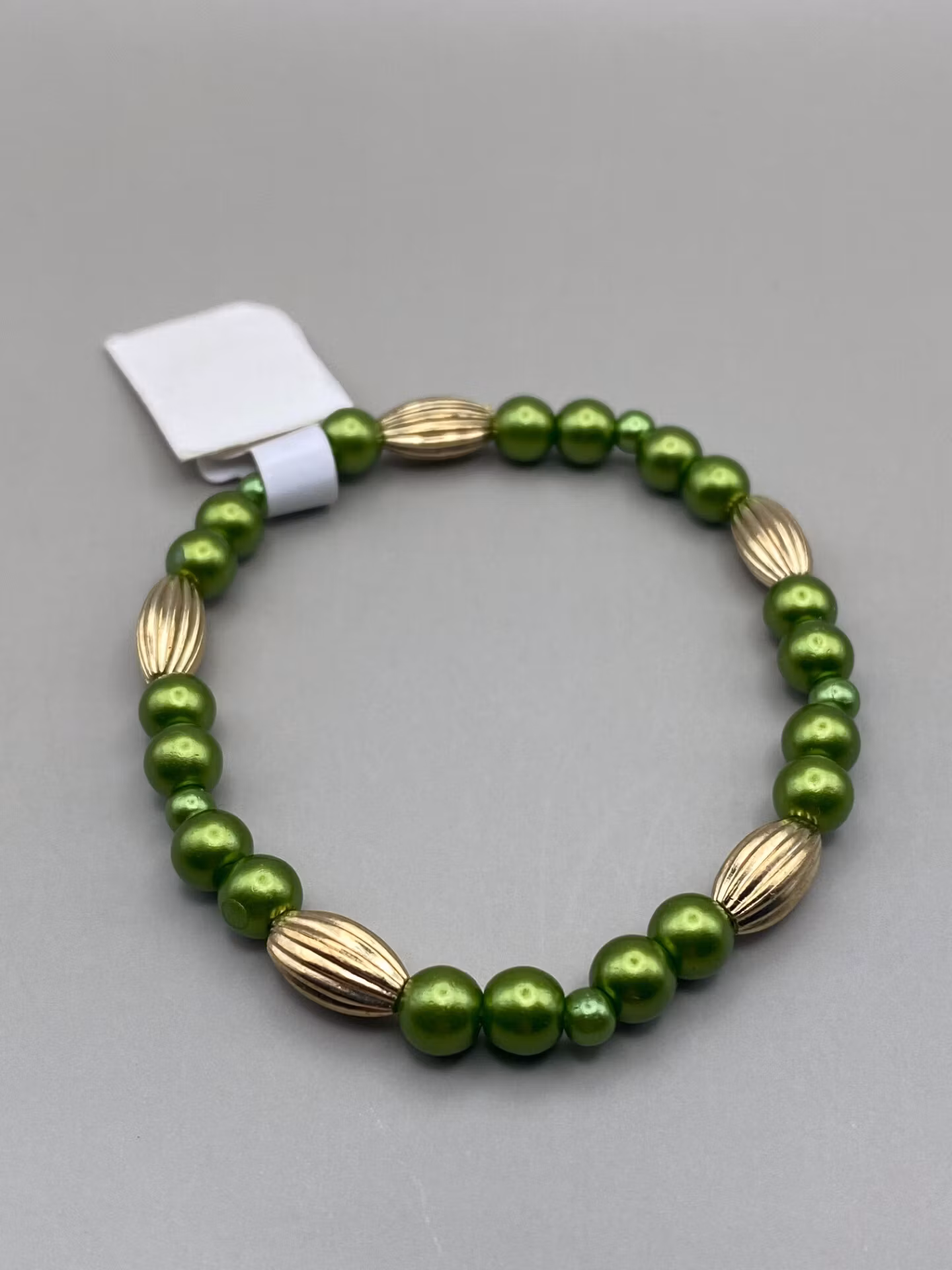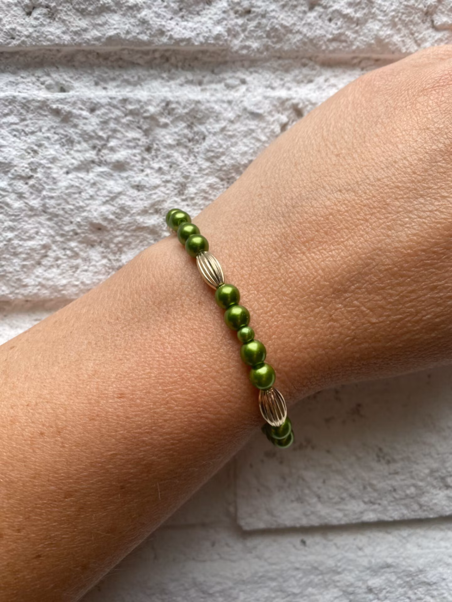 Armband i härligt gröna pärlor varvat med större guldfärgade mönstrade pärlorPärlor 6mmVisas produkten "Tillfälligt slut" efter att du lagt den i din kundkorg,