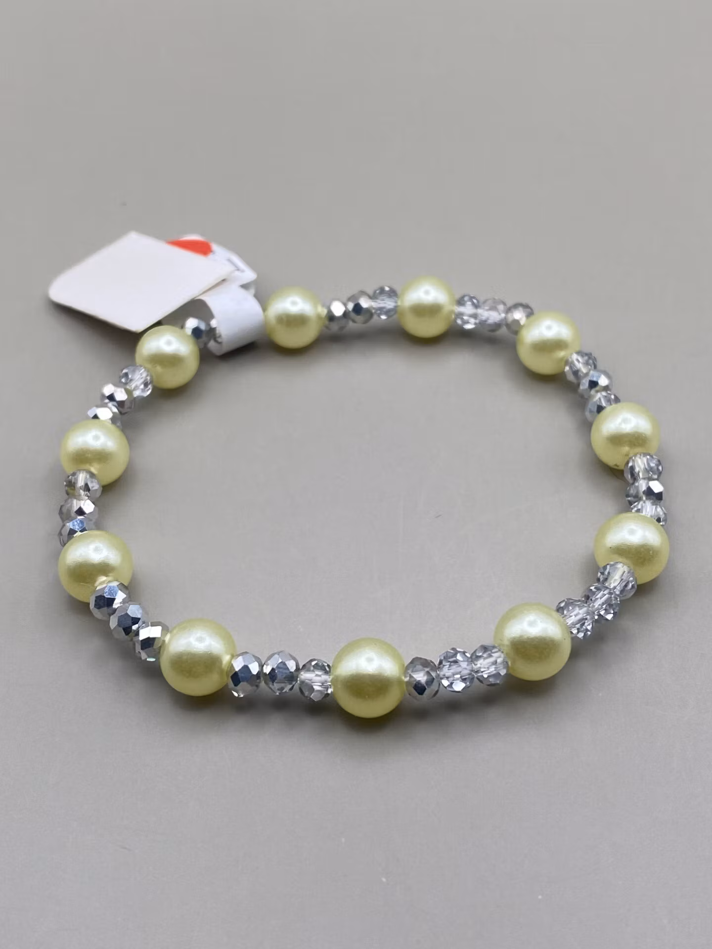 Fint armband i fint mönster av ljusgula pärlor och små silverfärgade glaspärlor.Pärlor 8mm, 4mmVisas produkten "Tillfälligt slut" efter att du lagt den i din ku