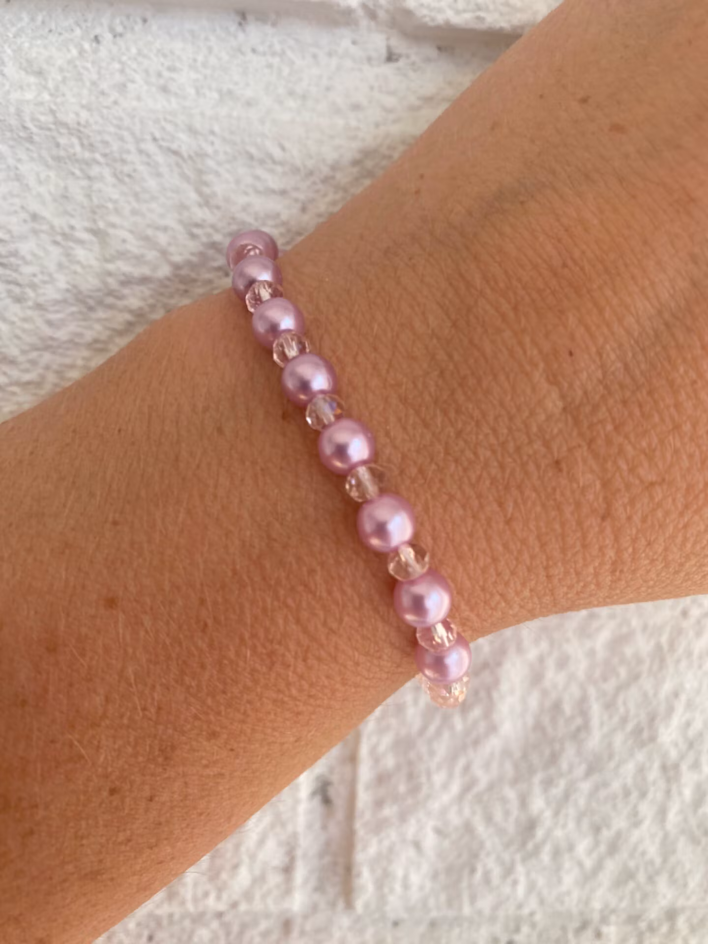 Fint lila pärlarmband i lila mindre pärlor varvat med små rosa glaspärlor i blickfånget. Små rosa glaspärlor runt om. Passar bra i kombo med Elegant no.221Pärlo