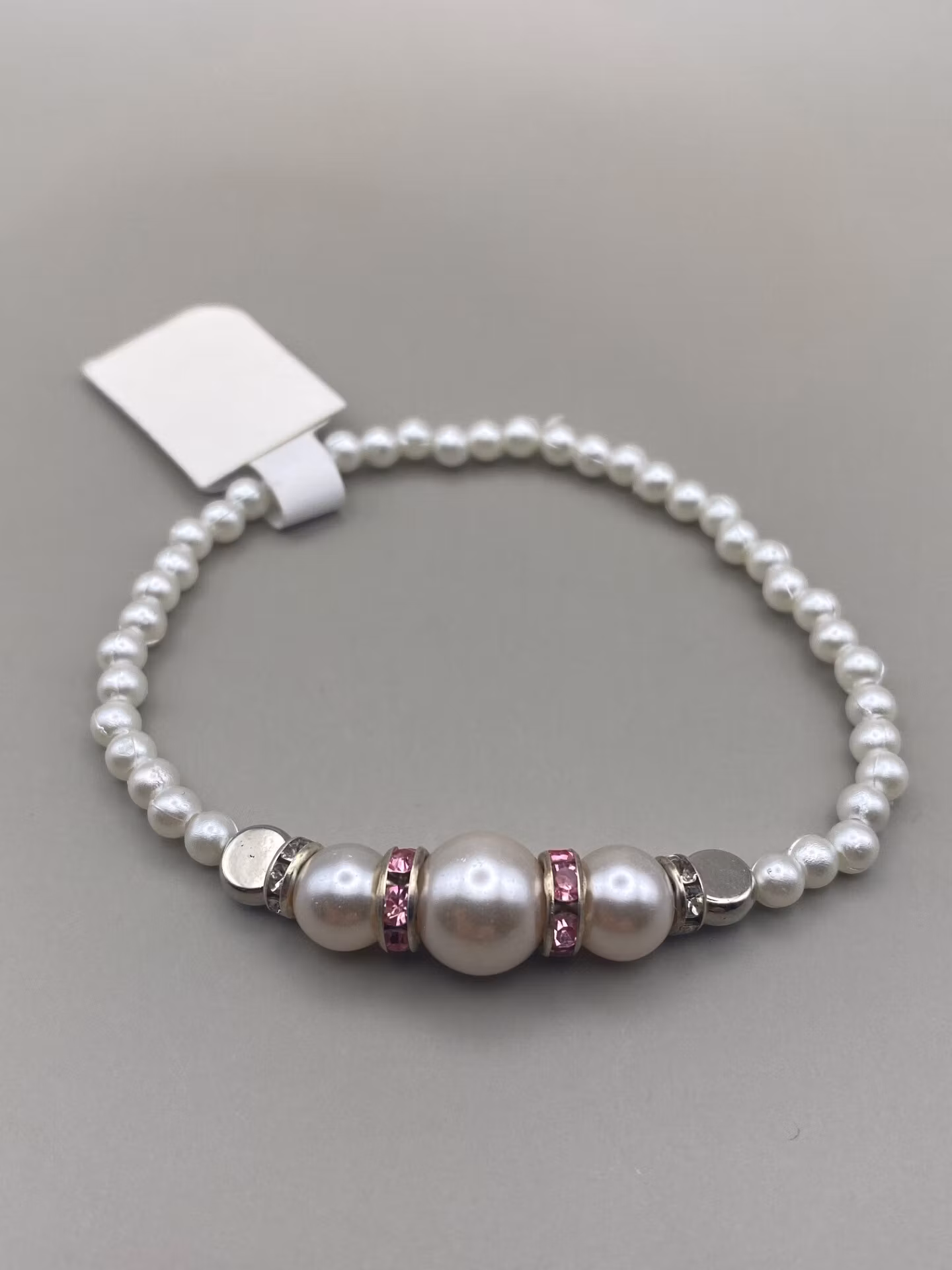 Ljusrosa pärlor med rosa strassdetaljer och vita mindre pärlor
